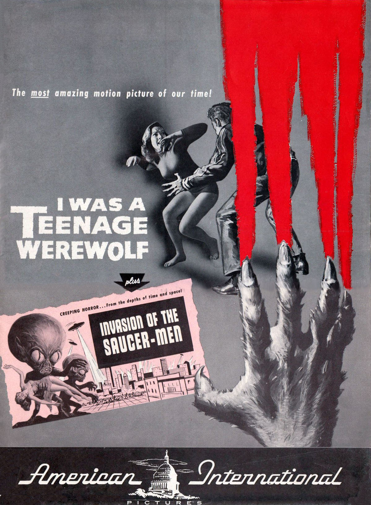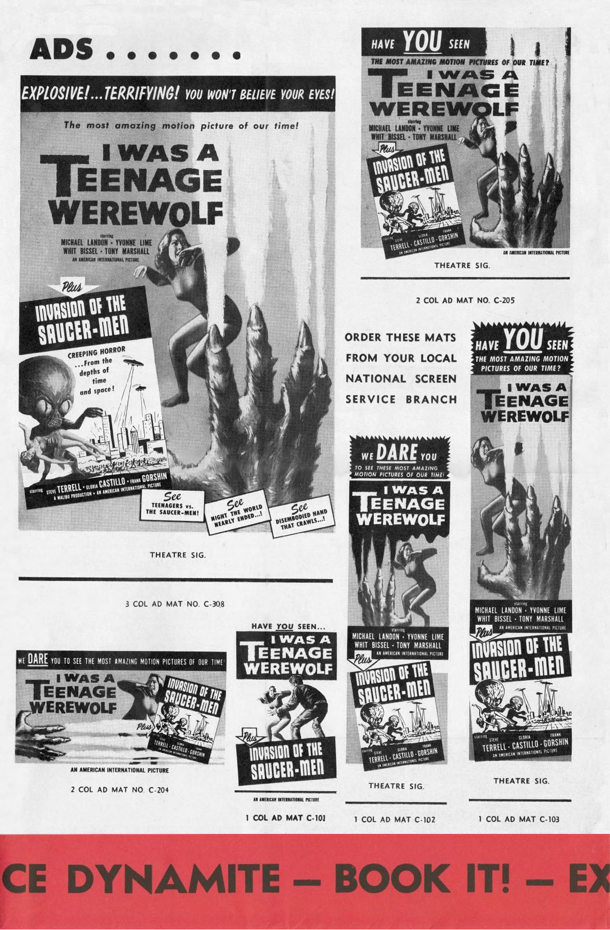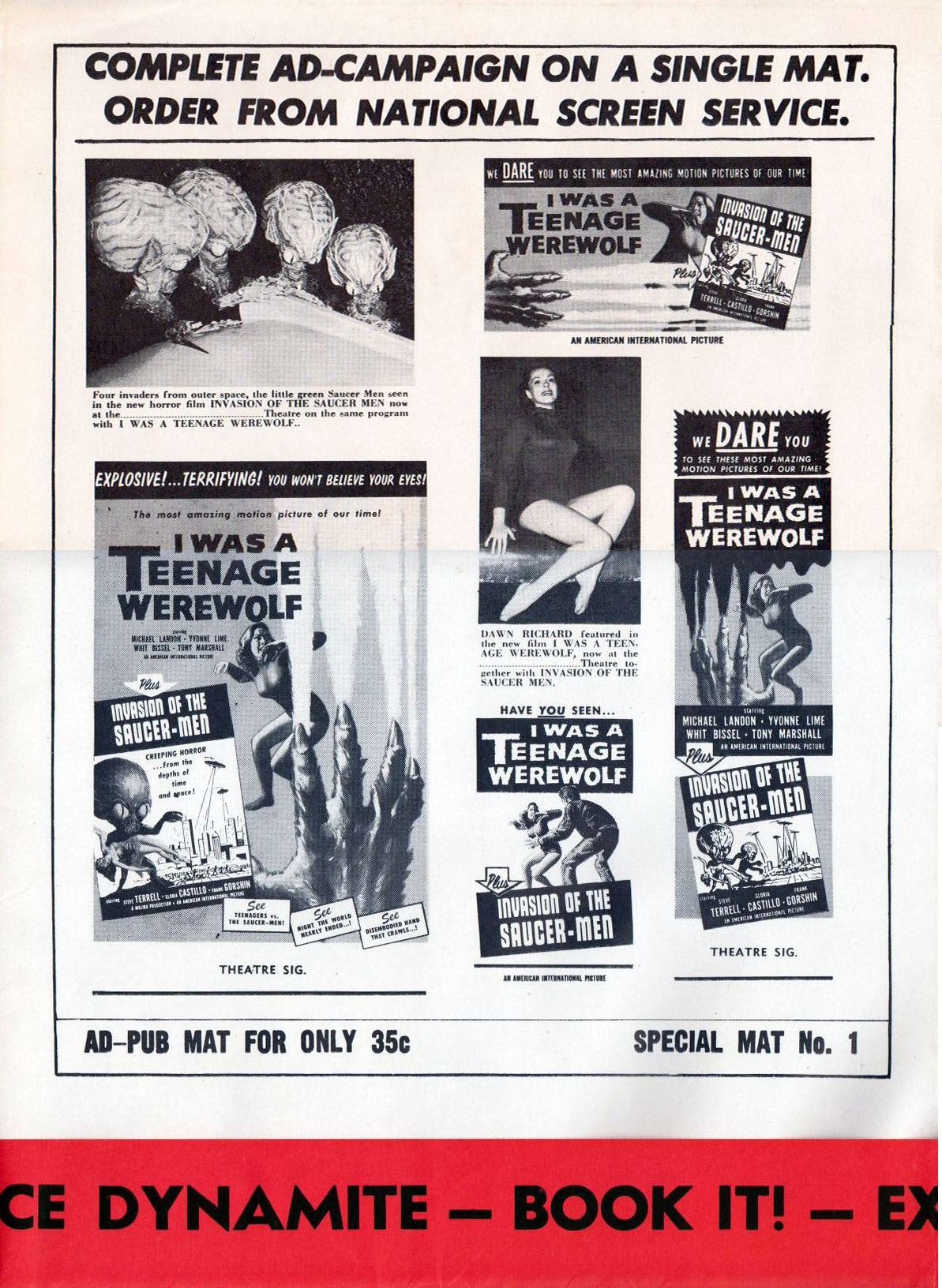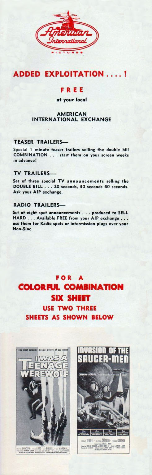 Double Bill Pressbook: I Was a Teenage Werewolf And Invasion of the Saucer-Men Leave a Comment / Pressbooks (Horror, Sci Fi, Fantasy) / By JM Cozzoli From Tony Rivers comes this double bill, folder-styled, pressbook for I Was a Teenage Werewolf and Invasion of the Saucer-Men. Fantastic poster artwork and "Hollywood's new teenage stars" helps promote both movies to the drive-in crowd. Like this:Like Loading... Share this post Facebook Twitter Pinterest Linkedin
