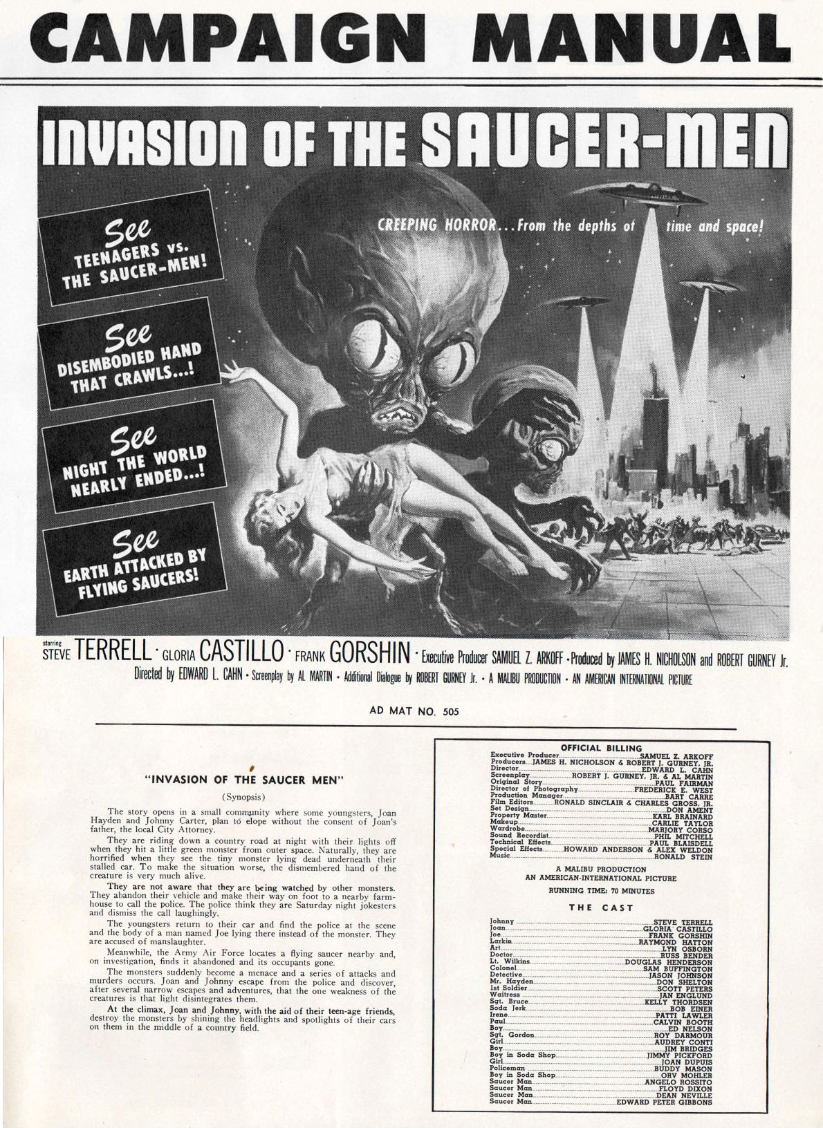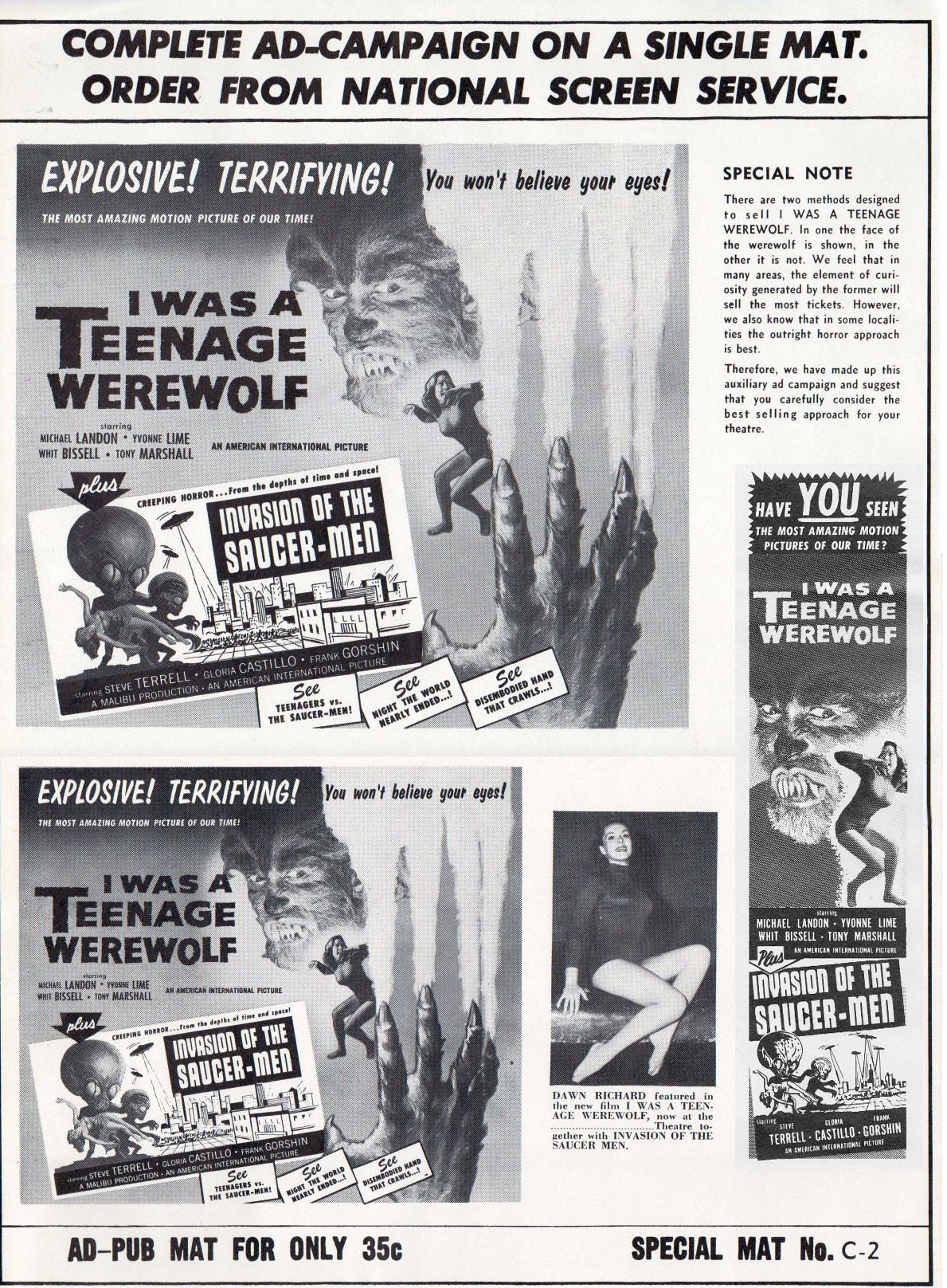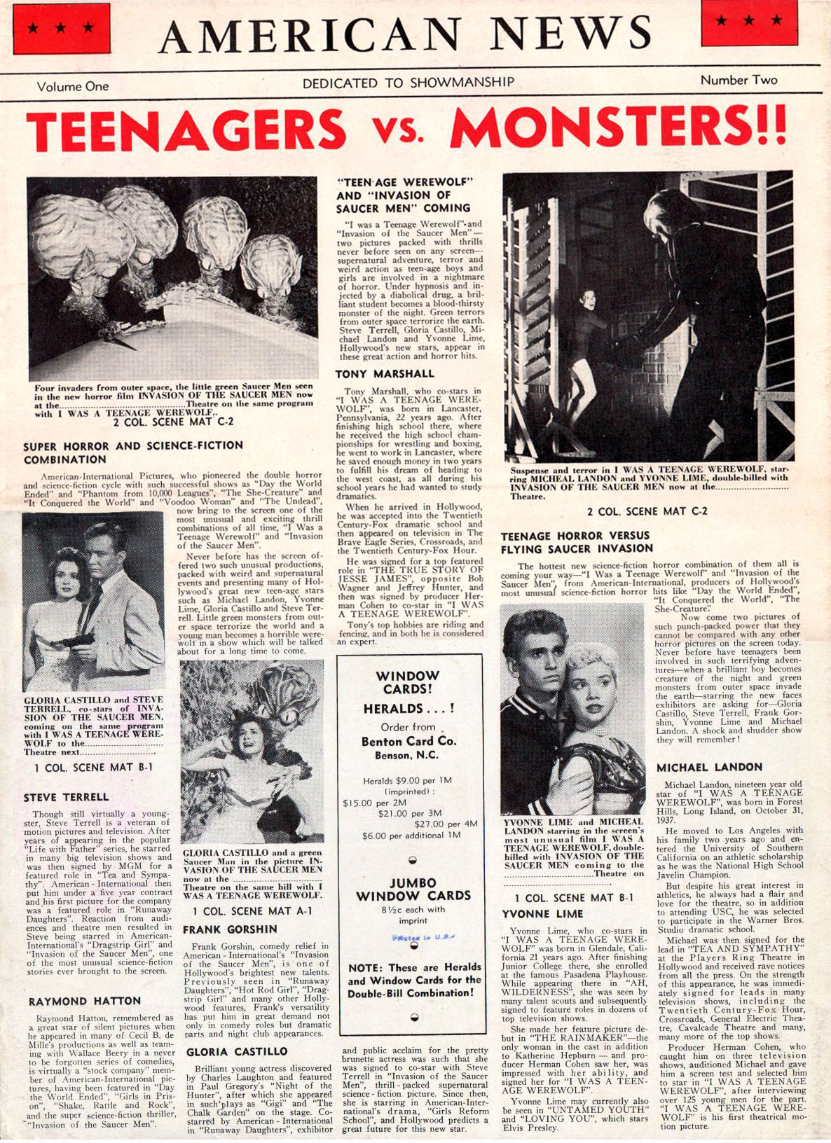Double Bill Pressbook: I Was a Teenage Werewolf And Invasion of the Saucer-Men Leave a Comment / Pressbooks (Horror, Sci Fi, Fantasy) / By JM Cozzoli From Tony Rivers comes this double bill, folder-styled, pressbook for I Was a Teenage Werewolf and Invasion of the Saucer-Men. Fantastic poster artwork and "Hollywood's new teenage stars" helps promote both movies to the drive-in crowd. Like this:Like Loading... Share this post Facebook Twitter Pinterest Linkedin