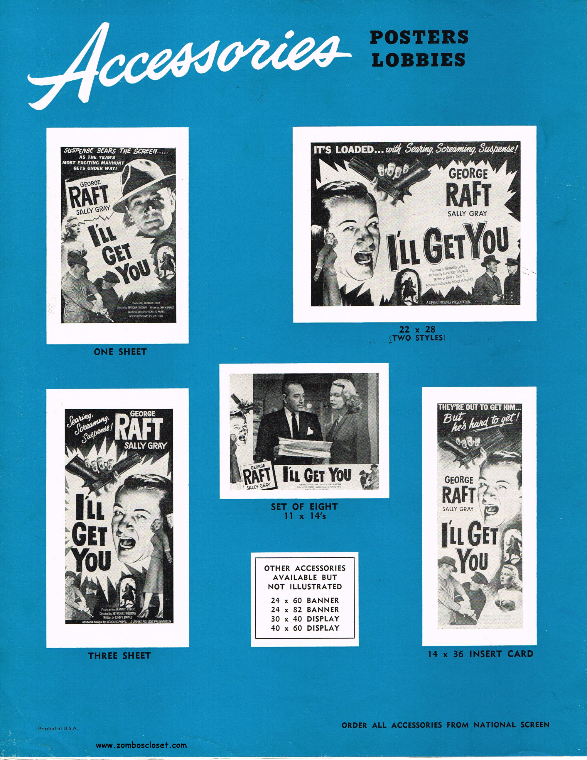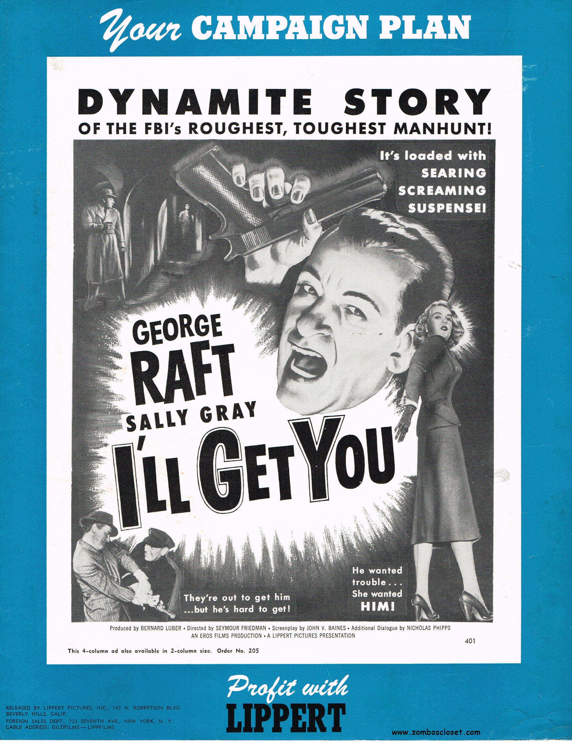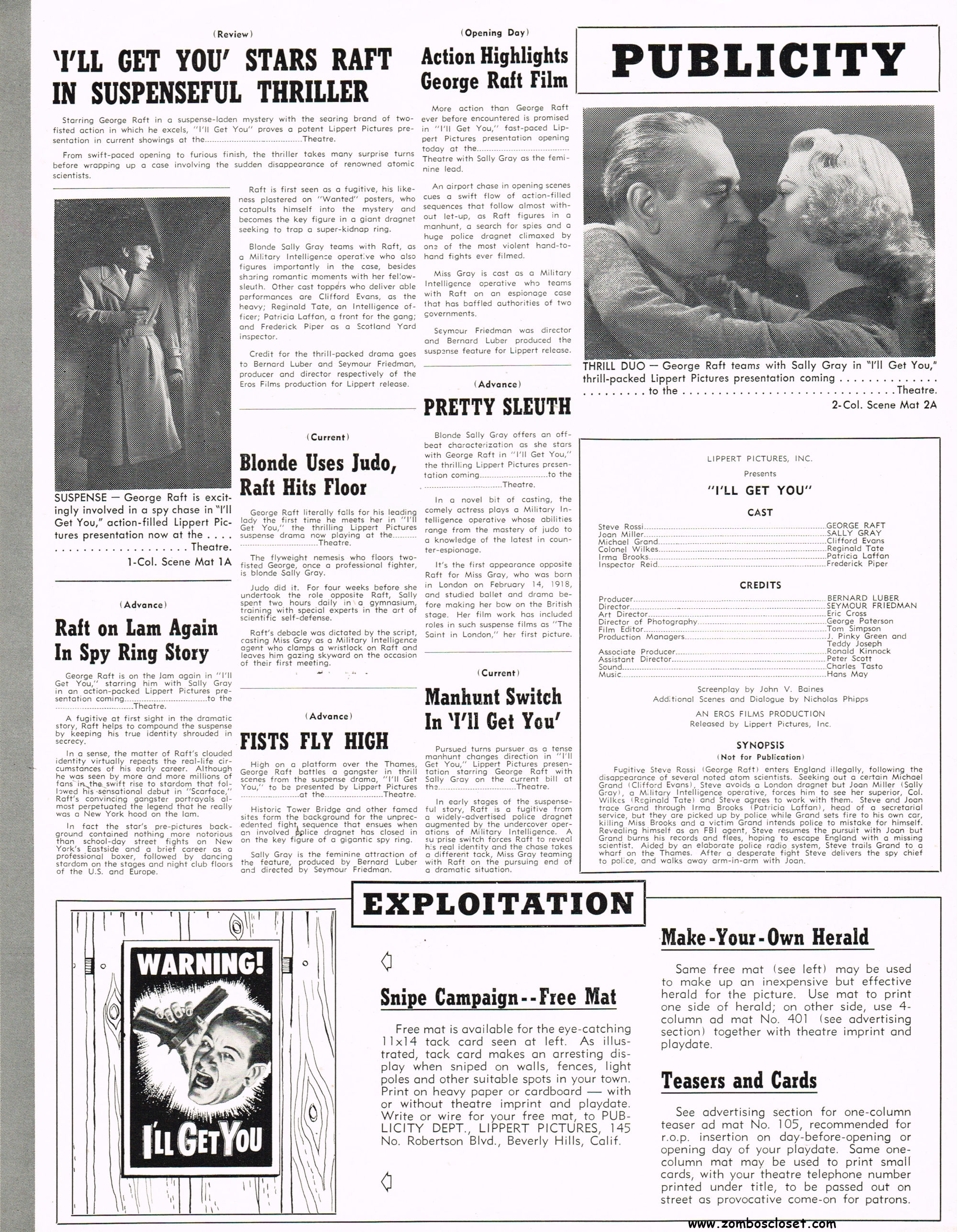 Here's the British pressbook for I'll Get You for This. I was never a big George Raft fan, but you can tell by the poster art how they played off his onscreen persona as a tough guy with a nasty temper. Wikipedia says that Peter Lorre was supposed to appear in the movie but his role was played by someone else. That's a shame. I'm a big fan of Peter Lorre. I'll watch Peter Lorre in anything.