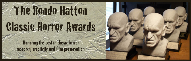 Once again, classic horror is celebrated with the likeness of that ugly, but lovable, bald guy — with the huge, misshapen, head and massive hands. Rondo "The Creeper" Hatton thrilled me as he tried to twist Basil Rathbone's Sherlock Holmes into a pretzel in Pearl of Death, and chilled me as he murdered off a bunch of annoying critics in House of Horrors. His unmistakable visage graces the Classic Horror Awards, affectionately known as the Rondos, which are given in recognition of notable achievements in the classic horror genre. Chief instigator of the Rondos is David Colton. I locked him in Zombos' closet until he agreed to talk about the award that everyone in classic horror craves.