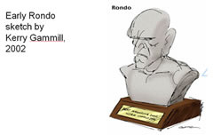 Still, it was all just fanboy talk until Kerry Gammill, a brilliant artist who once drew Superman, and is one of the genre's top illustrators, sent me a sketch of what a Rondo statuette could actually look like, based on the giant bust of Hatton used in Universal's House of Horrors in 1946. Once I saw the sketch, I said yes, of course.