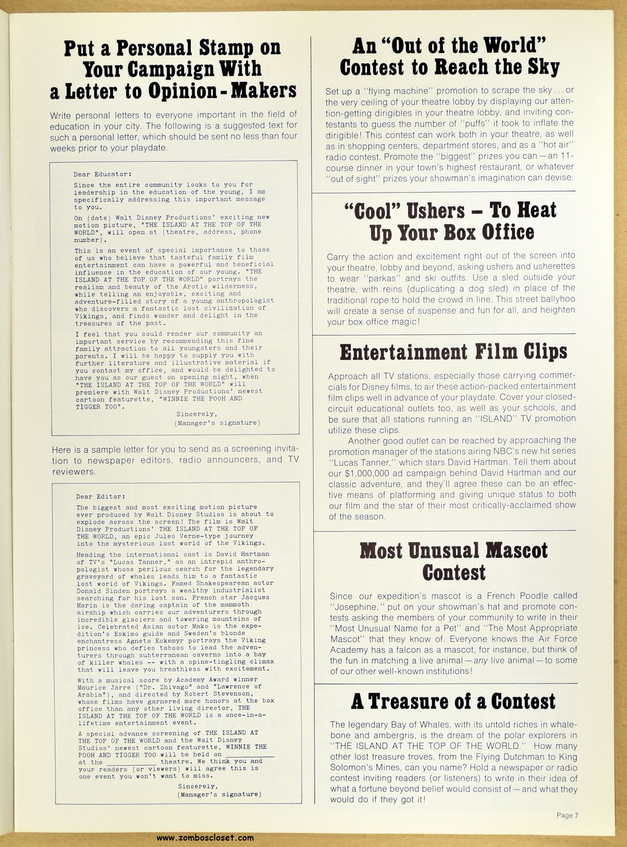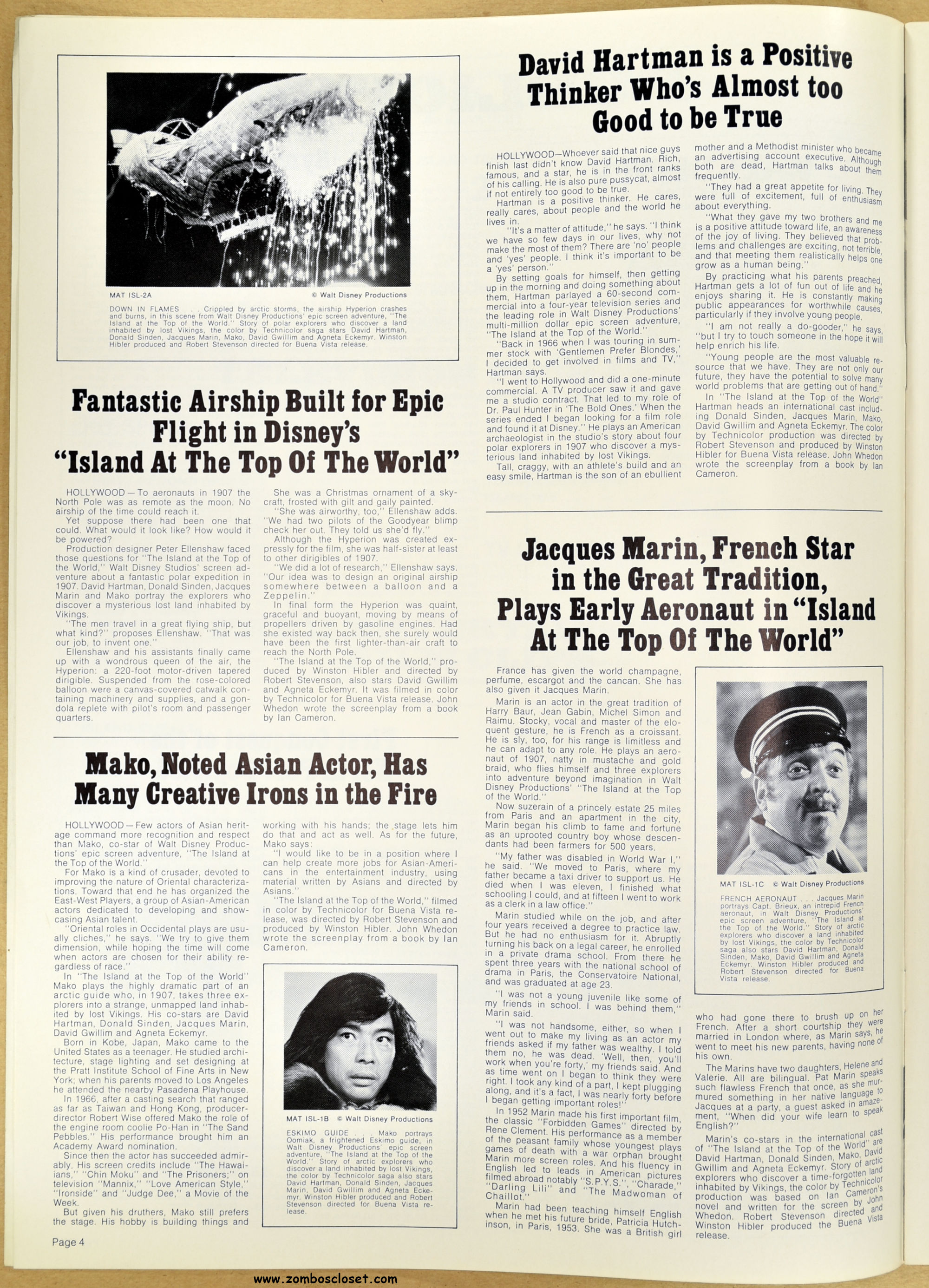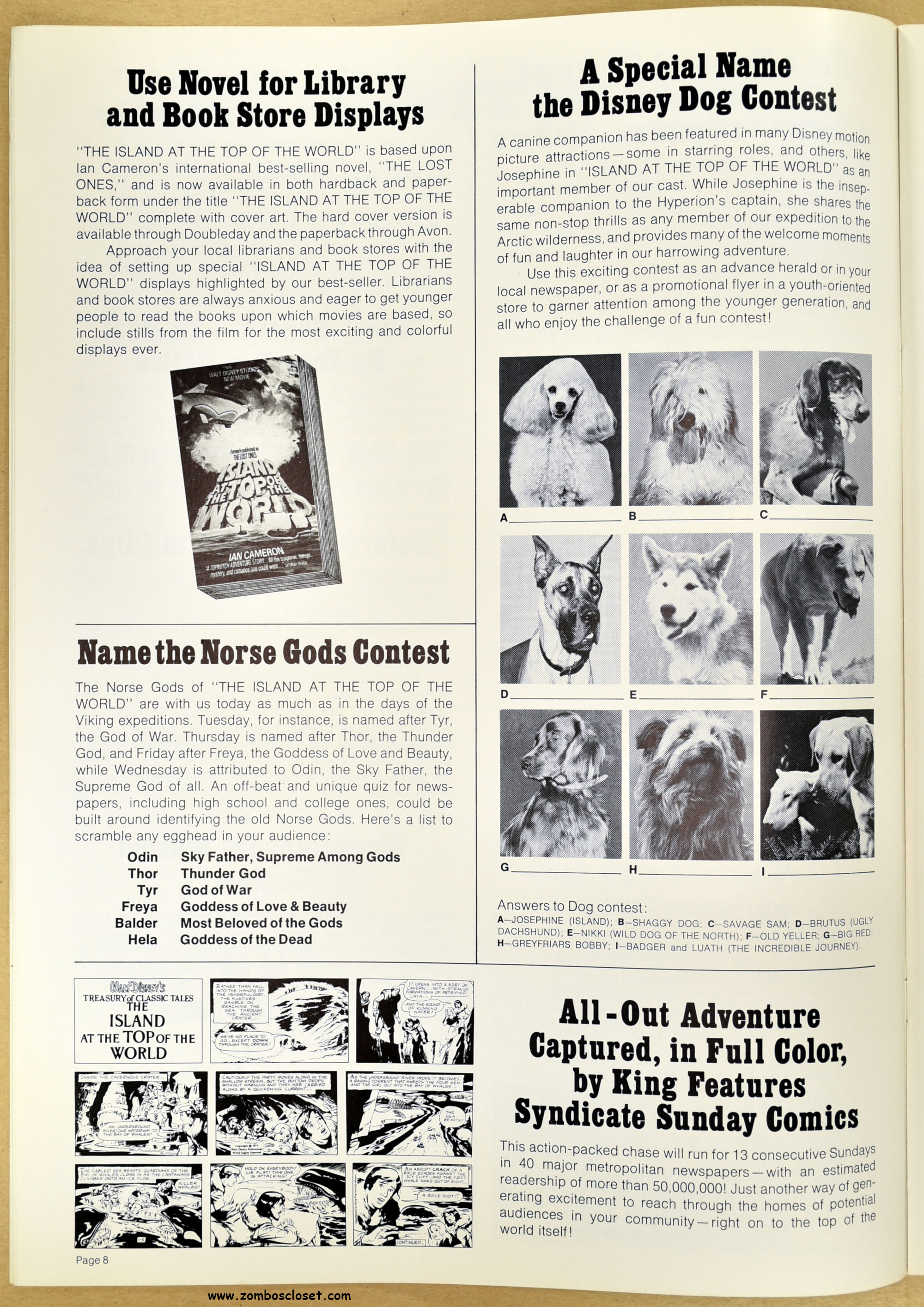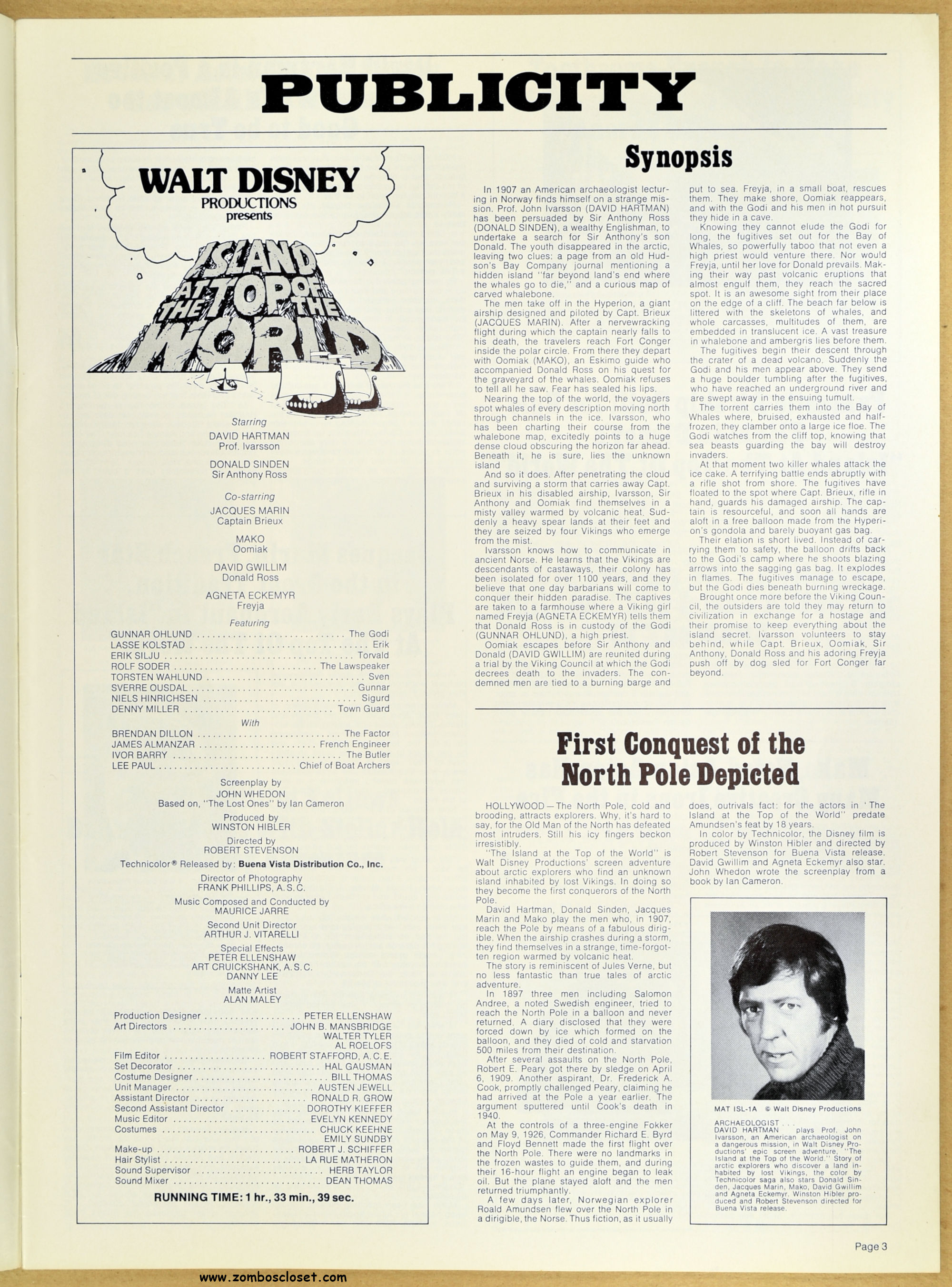 A lost viking civilization in the Arctic provides the theme for this fantasy film with David Hartman. Winnie the Pooh and Tigger Too was the other part of the double bill theater showing. Some critics at the time liked Winnie and Tigger more than Hartman. Island’s pressbook, as usual, throws everything into promotion. Did you know that toothsome means attractive? Agneta Eckemyr is described as “toothsome enough to make a mummy drool.” As usual with many pressbooks, female actors were often treated as mostly eye-candy fluff and glamour objects.