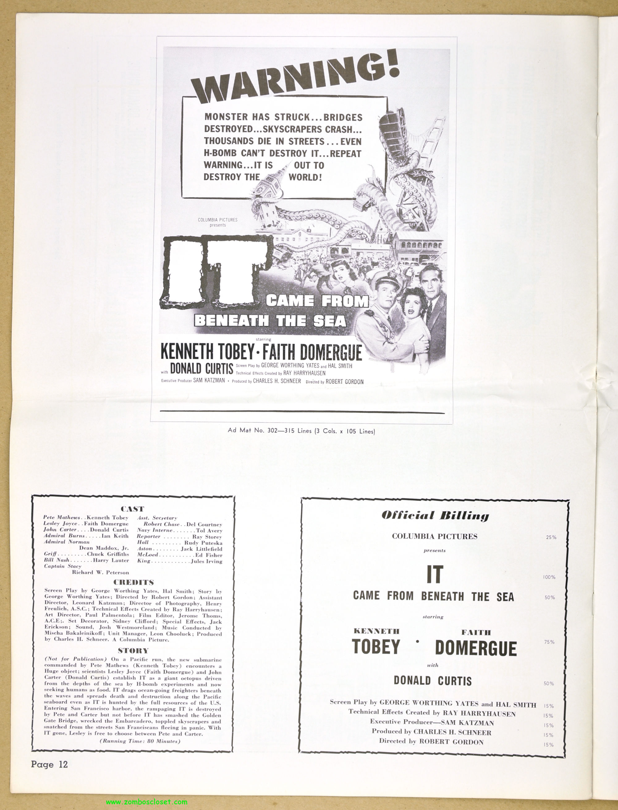 Comic reader version: Download It Came From Beneath the Sea Pressbook