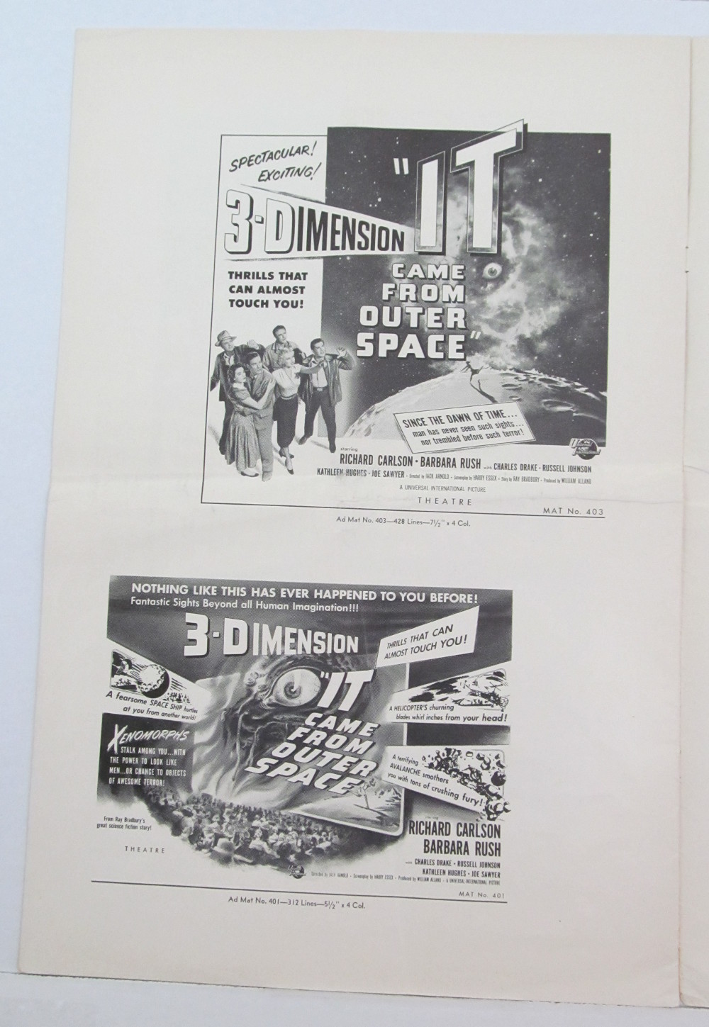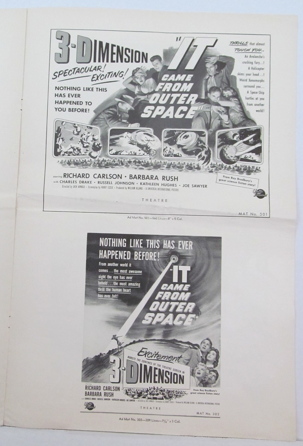 2 thoughts on “Movie Pressbook: It Came From Outer Space <br>(Part 2)”