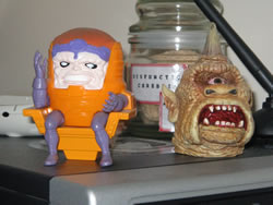 Here are Modoc, the brainy headed one, and Cyclops from Ray Harryhausen’s The Seventh Voyage of Sinbad. I’ve got the rest of him somewhere on my desk. At least I think so.