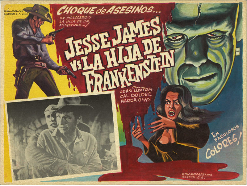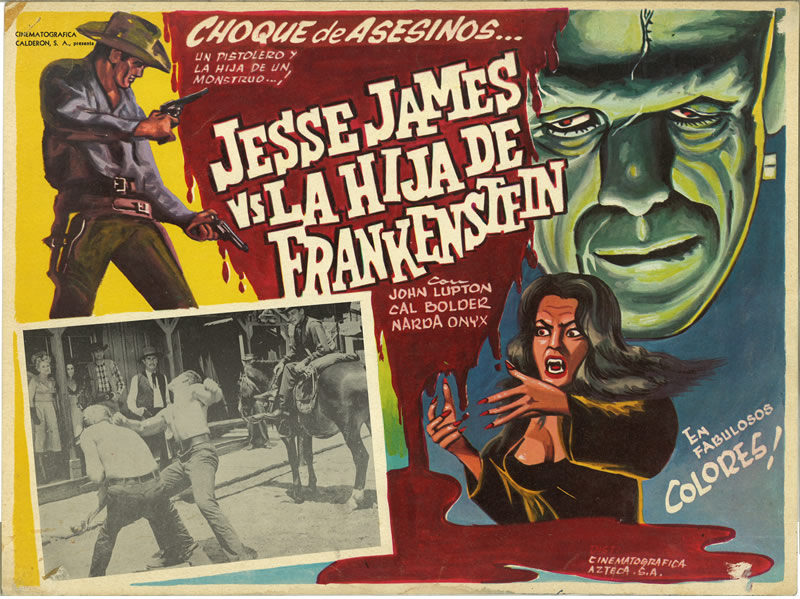 Mexican Lobby Card: Jesse James Meets Frankenstein’s Daughter Leave a Comment / Azteca/Mexican Lobby Cards / By JM Cozzoli The lobby card is colorful, especially with an emotive Boris Karloff Frankenstein's Monster face staring at you. Like this:Like Loading... Share this post Facebook Twitter Pinterest Linkedin