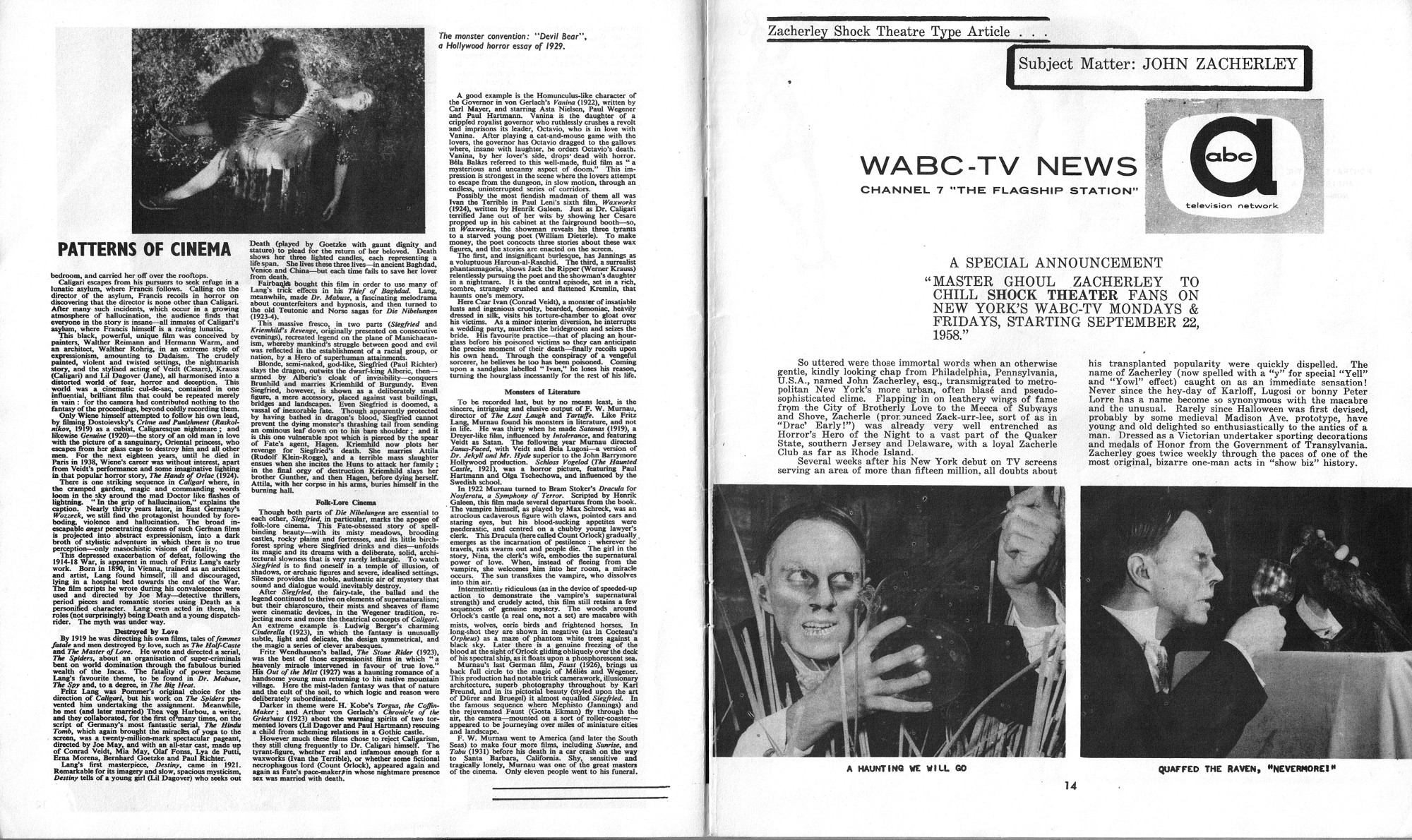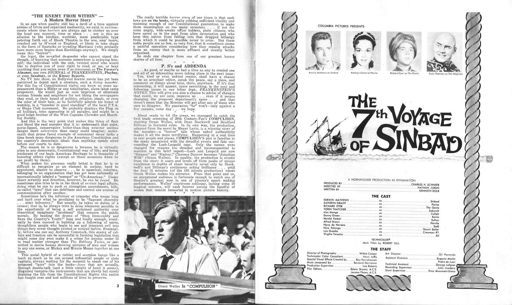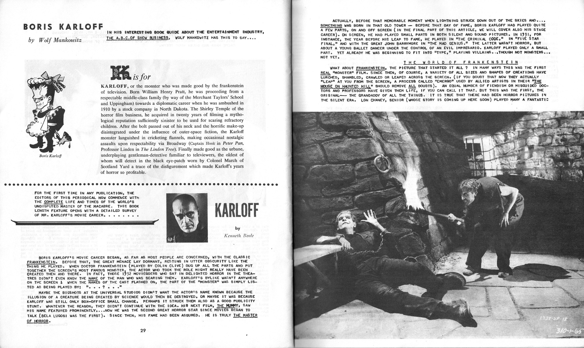 Rough layout start to a wonderful pro-zine would turn into a key monsterkid magazine for its time. In this issue, Boris Karloff and Zacherley get the love, and good articles discuss the horror and fantasy scene. I always confused the back cover for the front cover, but I keep wondering why go with the front cover when Zacherley was more of a draw. Perhaps to allow room for the titles? Still, seeing Zacherley on the cover would have made me buy this puppy back then. Just sayin'. Here's the comic book reader version:  Download Journal of Frankenstein Issue 1. (This copy of the magazine courtesy of Professor Kinema, long time contributor to FZC).
