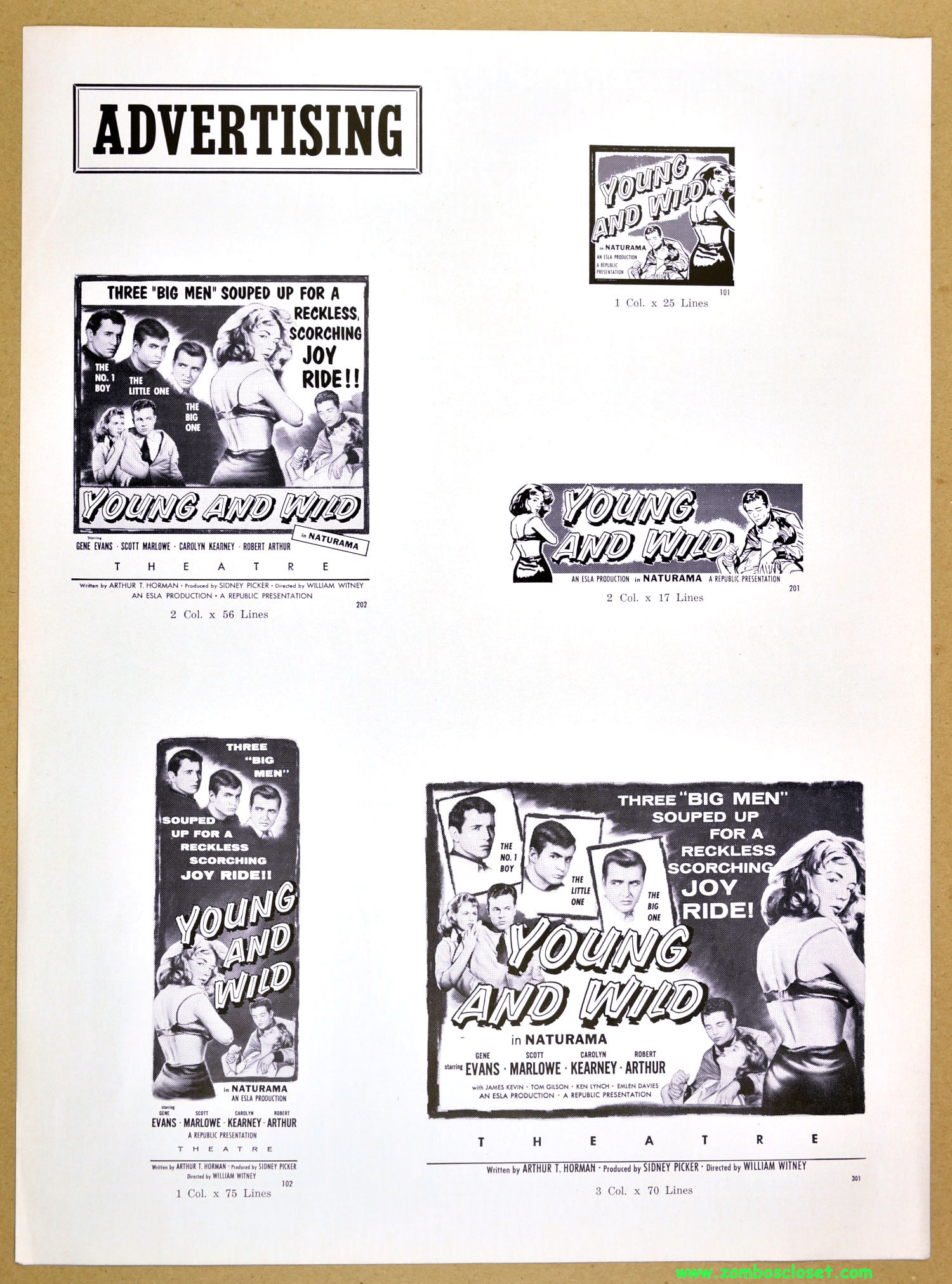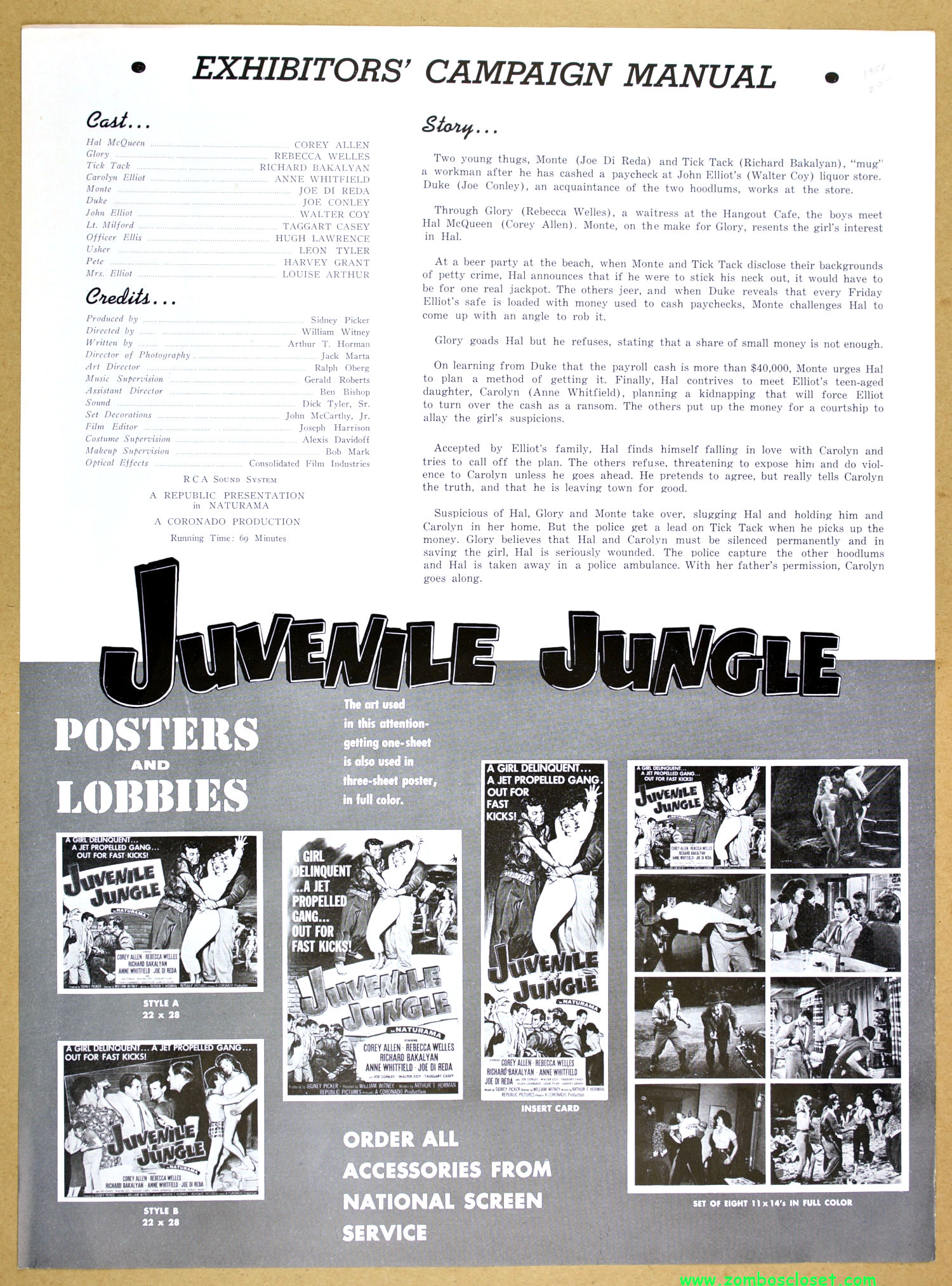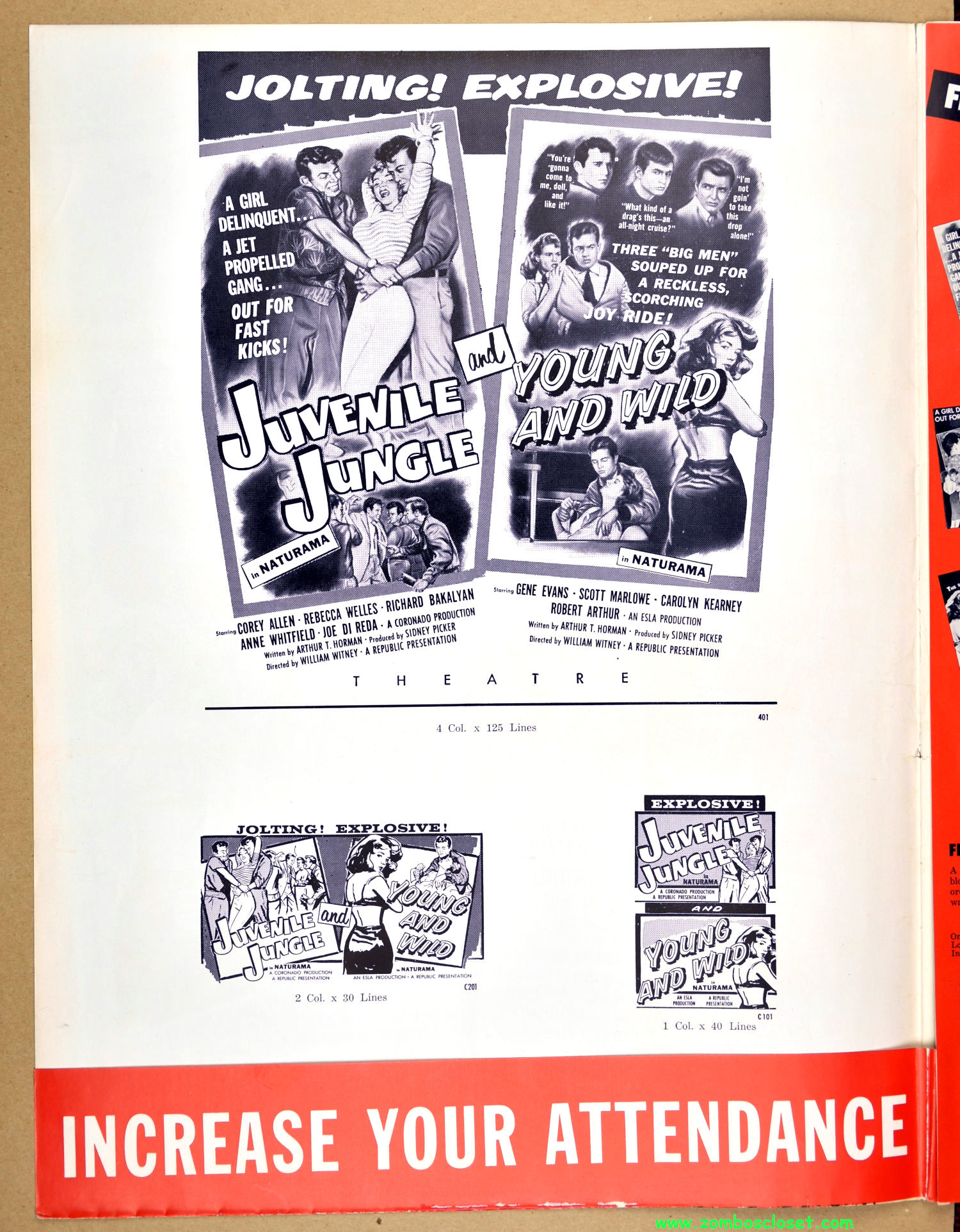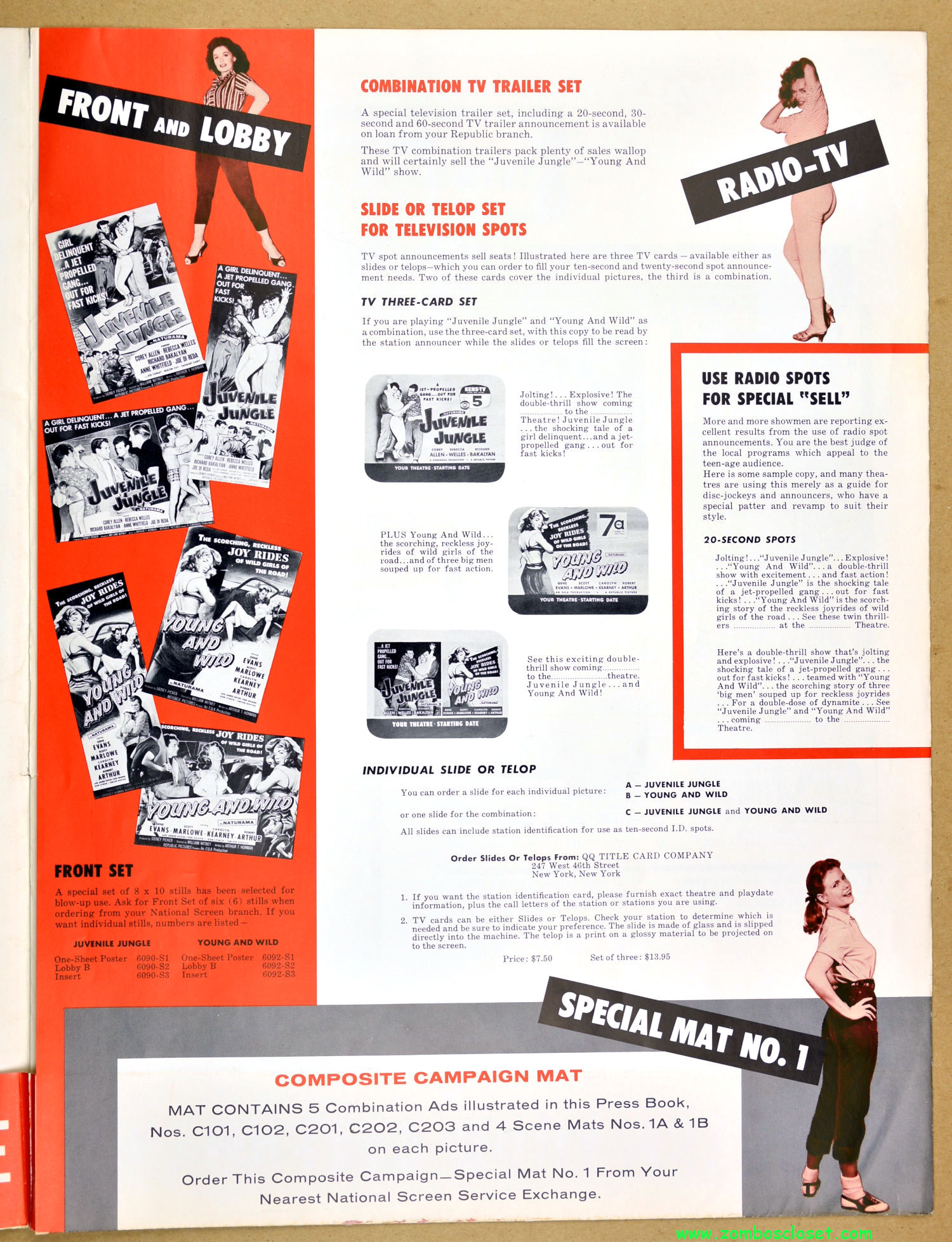 Quite a bit of promotion for two teenager and crime movies from Republic Pictures, that’s for sure. I have a fondness for these fold-out pressbooks with sleeves to hold the promotional sheets (see Brain from Planet Arous and How to Make a Monster).