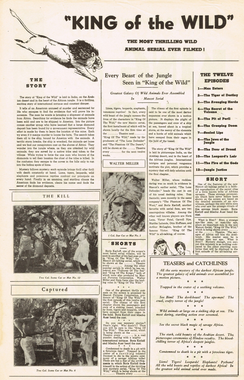 Comic book reader version: Download King of the Wild 1931 Pressbook