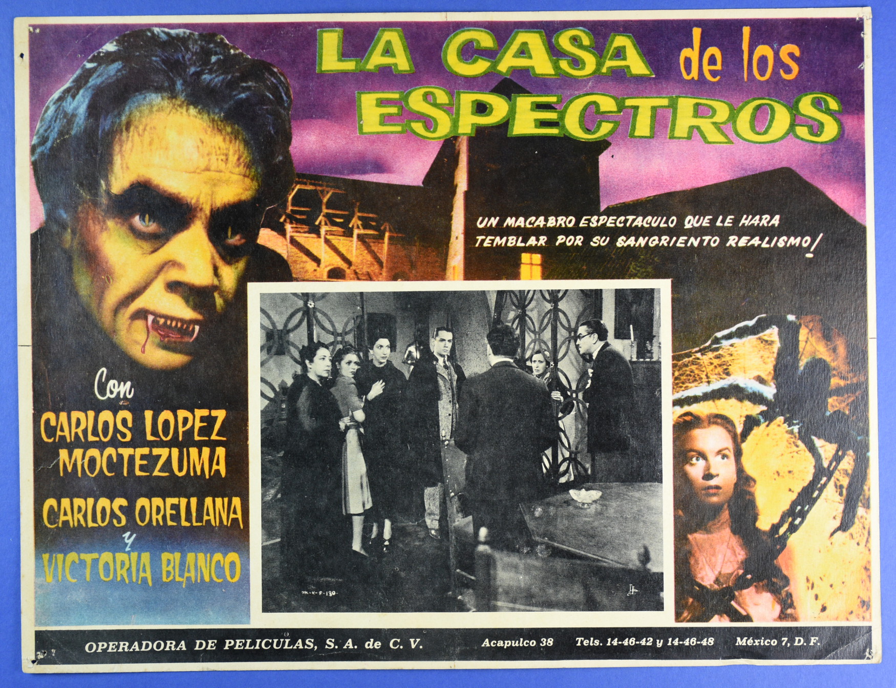 La Casa De Los Espectros Mexican Lobby Card Leave a Comment / Azteca/Mexican Lobby Cards / By JM Cozzoli Nicely spooky Mexican lobby card for La Casa De Los Espectros, even if the inset scene cuts into the background illustration unevenly.Like this:Like Loading... Share this post Facebook Twitter Pinterest Linkedin