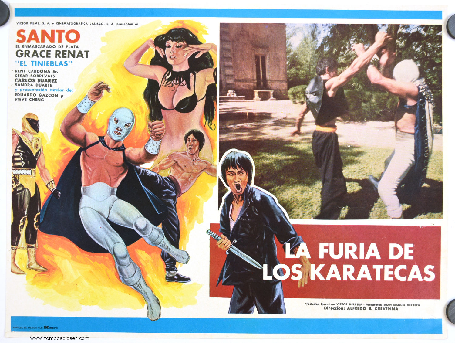 La Furia De Los Karatekas (1982) Mexican Lobby Card Leave a Comment / Azteca/Mexican Lobby Cards / By JM Cozzoli A colorful and sexy Mexican lobby card for La Furia De Los Karatecas provides eye appeal. The pose for Santo is reminiscent of other lobbies, so perhaps some repurposing of artwork was used to cut costs.Like this:Like Loading... Share this post Facebook Twitter Pinterest Linkedin