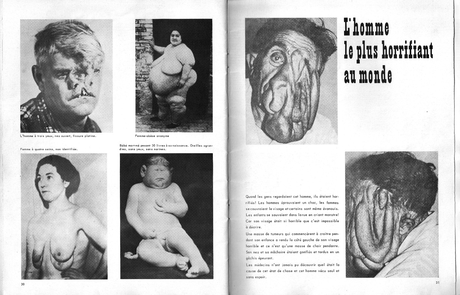 Les Monstres Leave a Comment / Freaks/Geeks / By JM Cozzoli Even though this booklet is in French, the pictures are all you need. Fascinating, frightening, mesmerizing: Les Monstres, Une Collection Extraordinaire Et Unique D'etres Humains Bizarres.Like this:Like Loading... Share this post Facebook Twitter Pinterest Linkedin