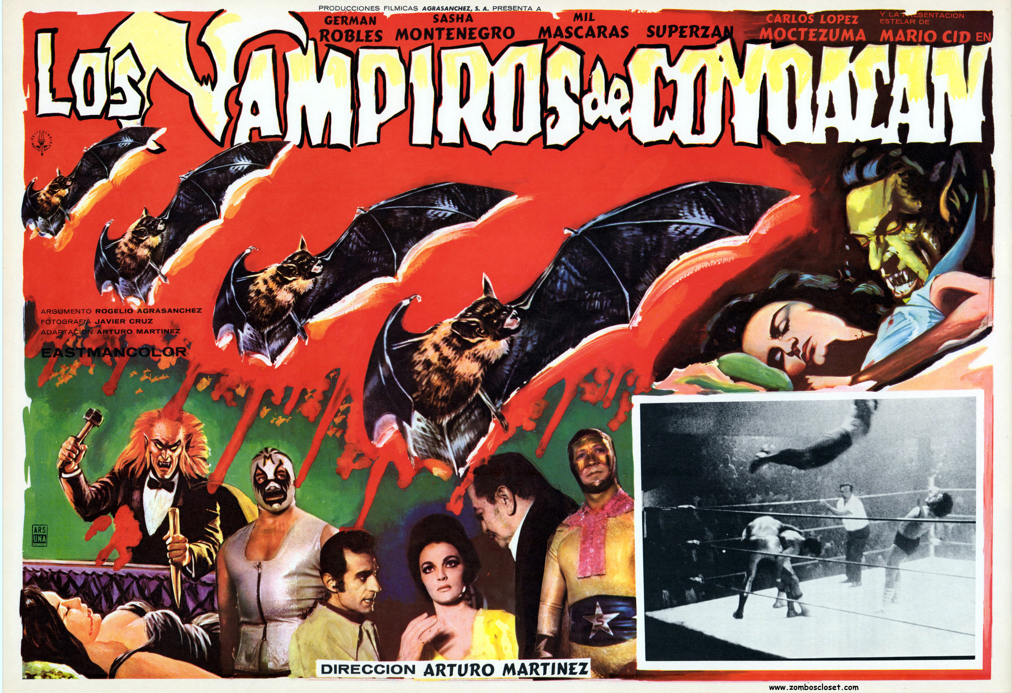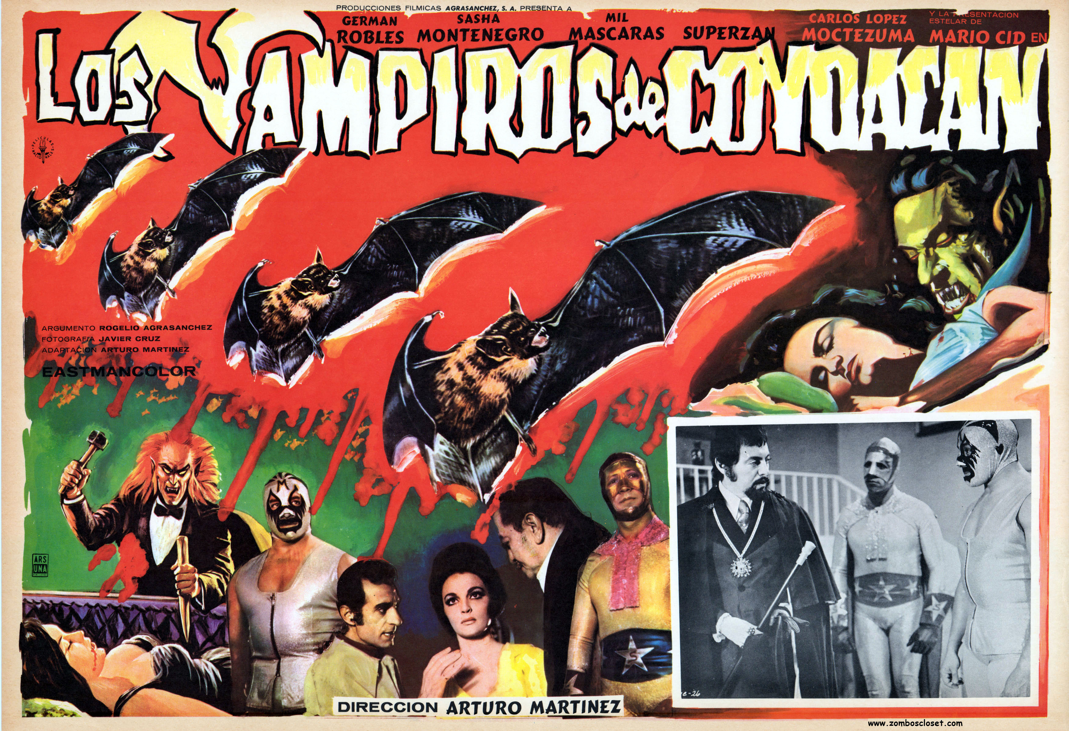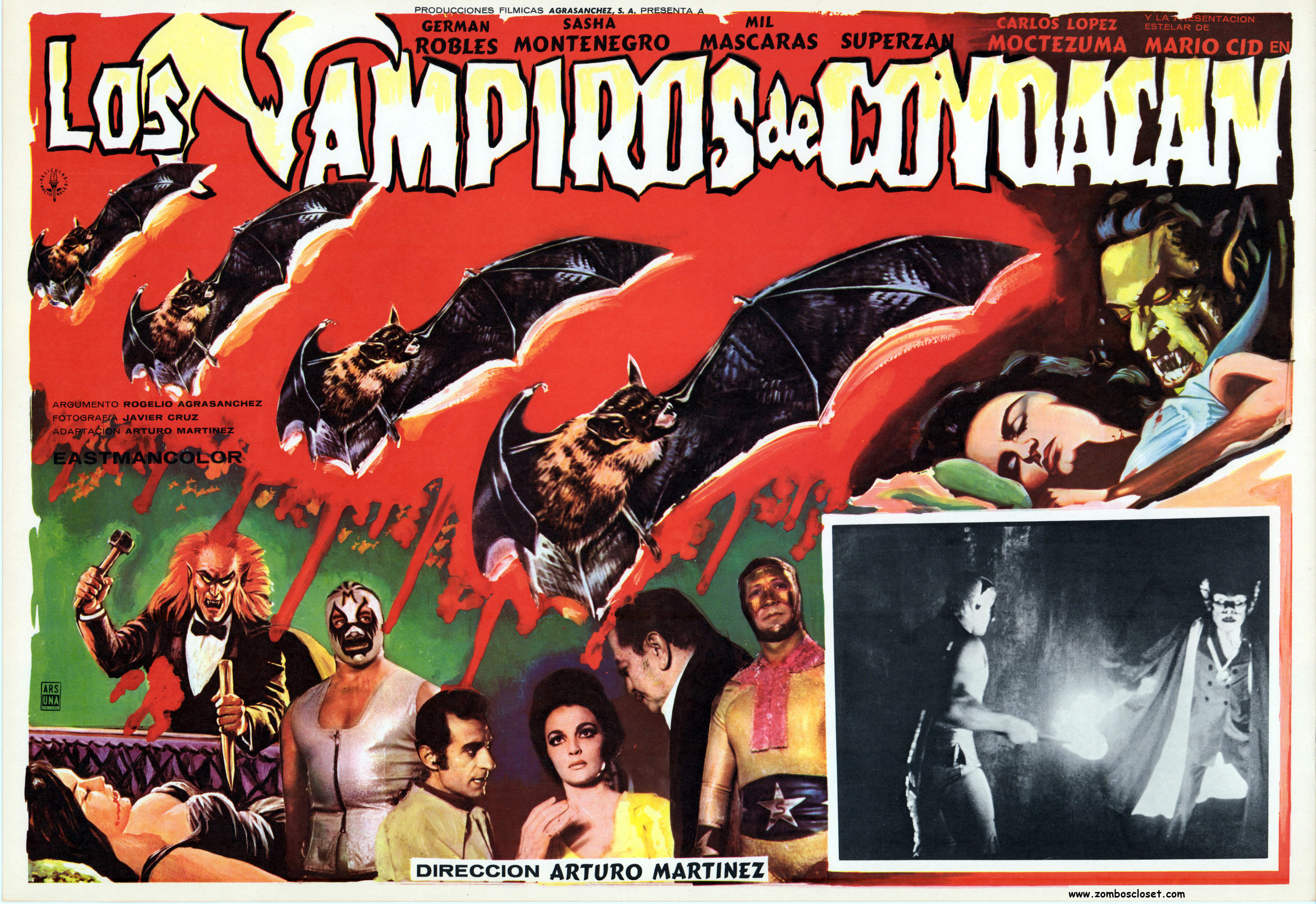 Los Vampiros de Coyoacan (1974) Mexican Lobby Card Leave a Comment / Azteca/Mexican Lobby Cards / By JM Cozzoli Here are three of the giant lobby cards (larger than the usual jumbo-sized 12.5 x 16.5 inches) for Los Vampiros de Coyoacan. Wonderful hodge-podge of horror elements comprises this layout.Like this:Like Loading... Share this post Facebook Twitter Pinterest Linkedin