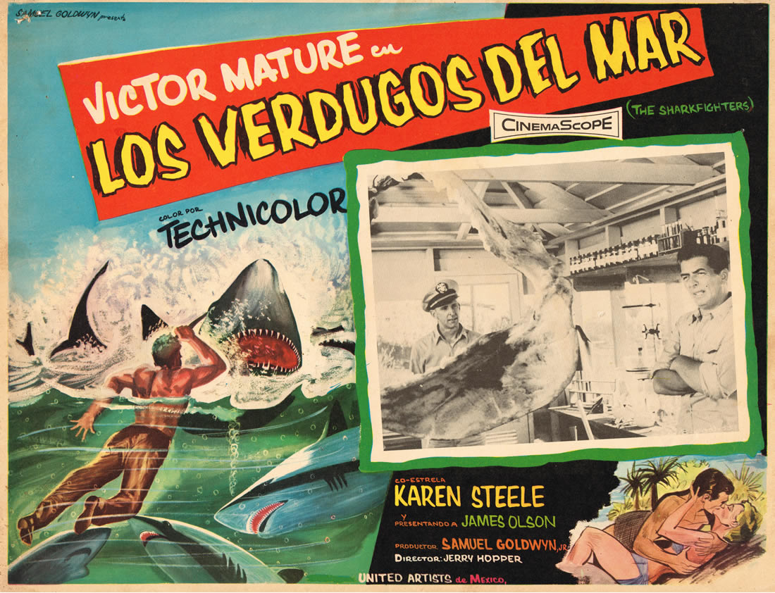 Mexican Lobby Card: The Sharkfighters Leave a Comment / Azteca/Mexican Lobby Cards / By JM Cozzoli Not a horror movie, but the man against sharks illustration is still terror-packed in this Mexican lobby card for The Sharkfighters (1956).Like this:Like Loading... Share this post Facebook Twitter Pinterest Linkedin