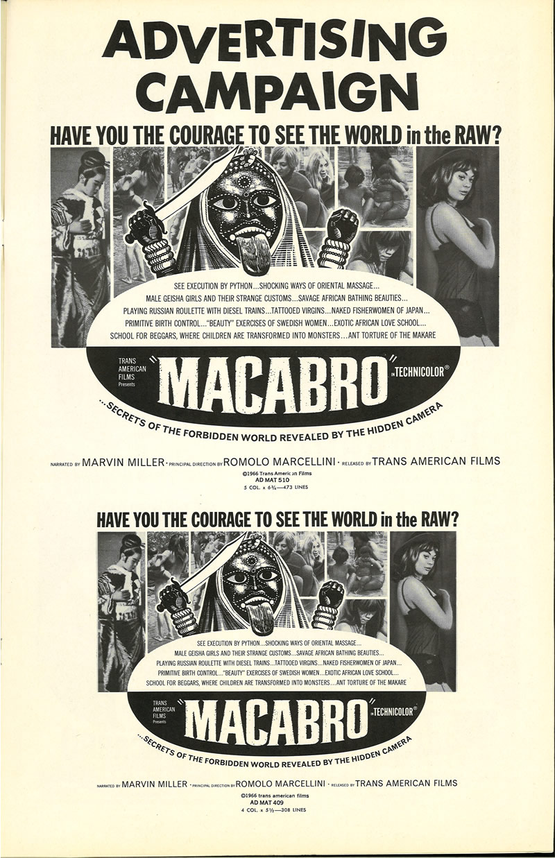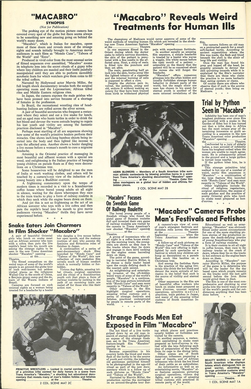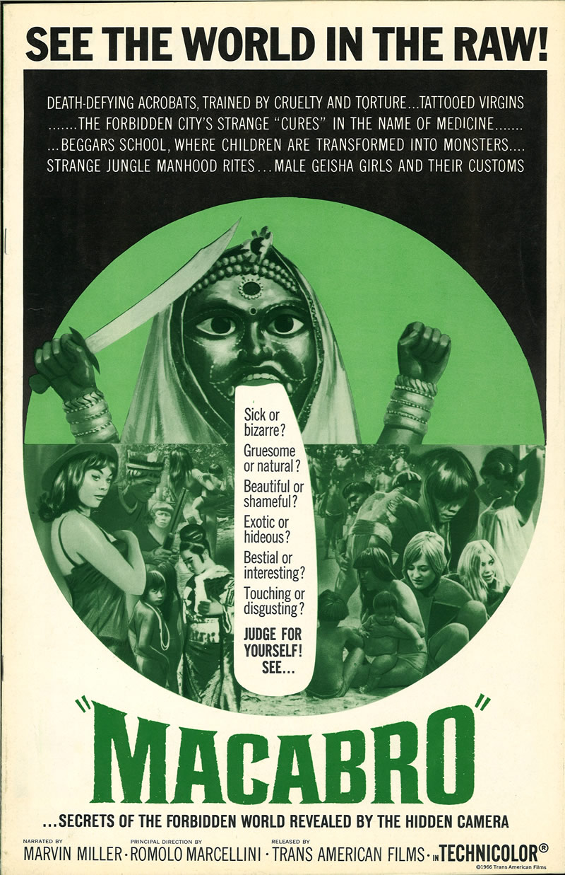 Macabro (1966) Leave a Comment / Pressbooks (Horror, Sci Fi, Fantasy) / By JM Cozzoli Sick or bizarre? Male Geisha Girls! Dare YOU see Macabro? Is it more shocking than Twitter and MySpace? You be the judge!Like this:Like Loading... Share this post Facebook Twitter Pinterest Linkedin
