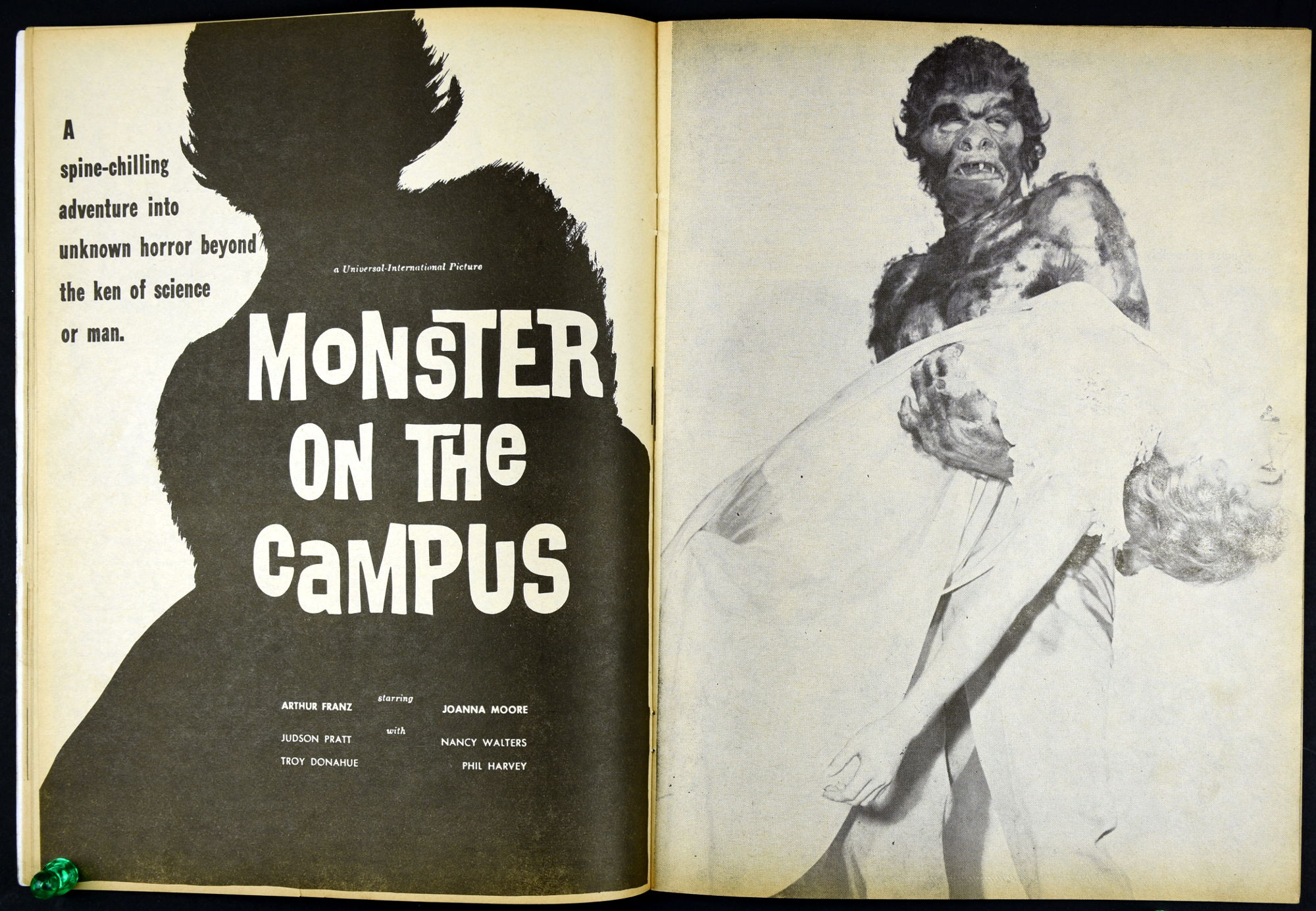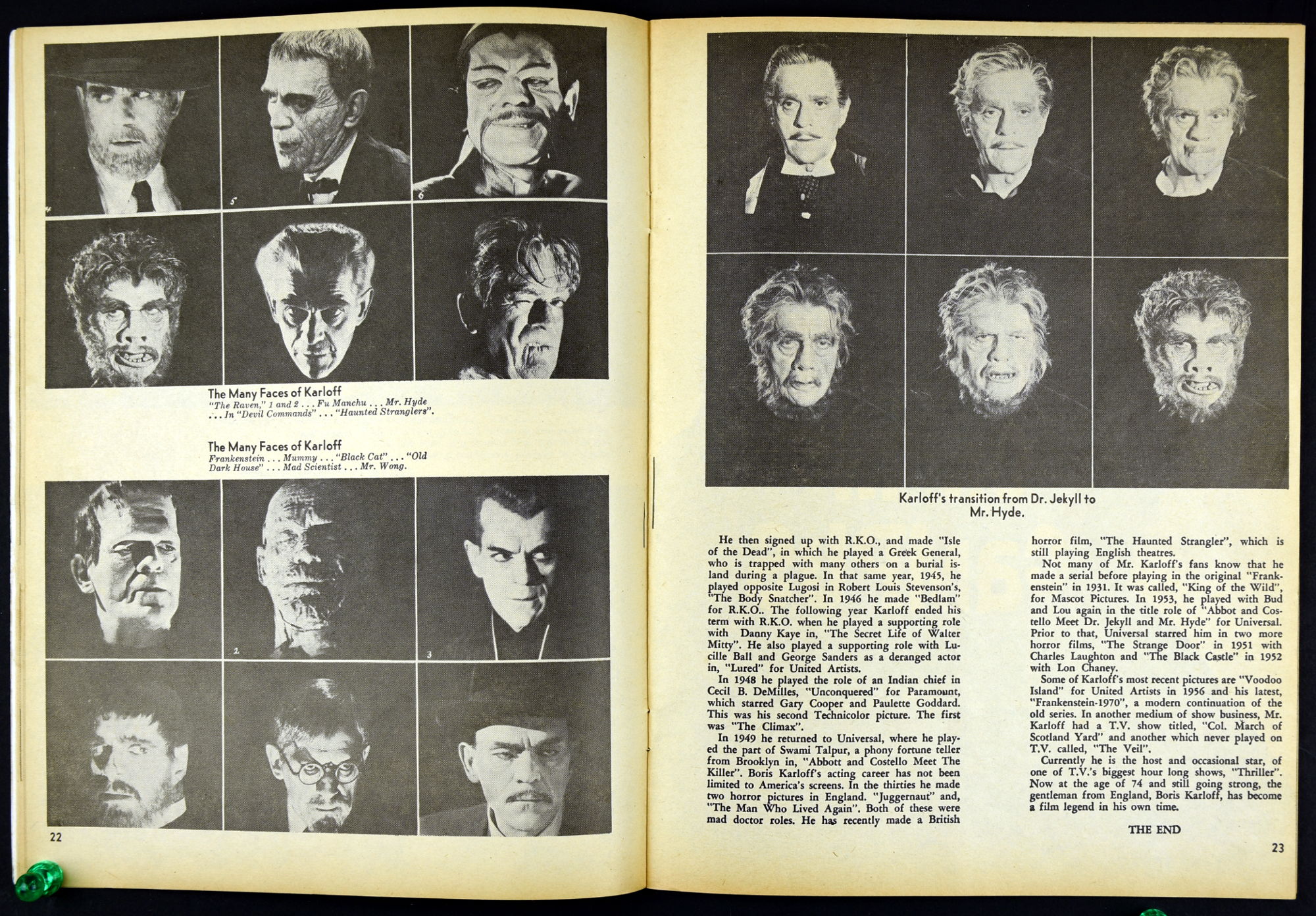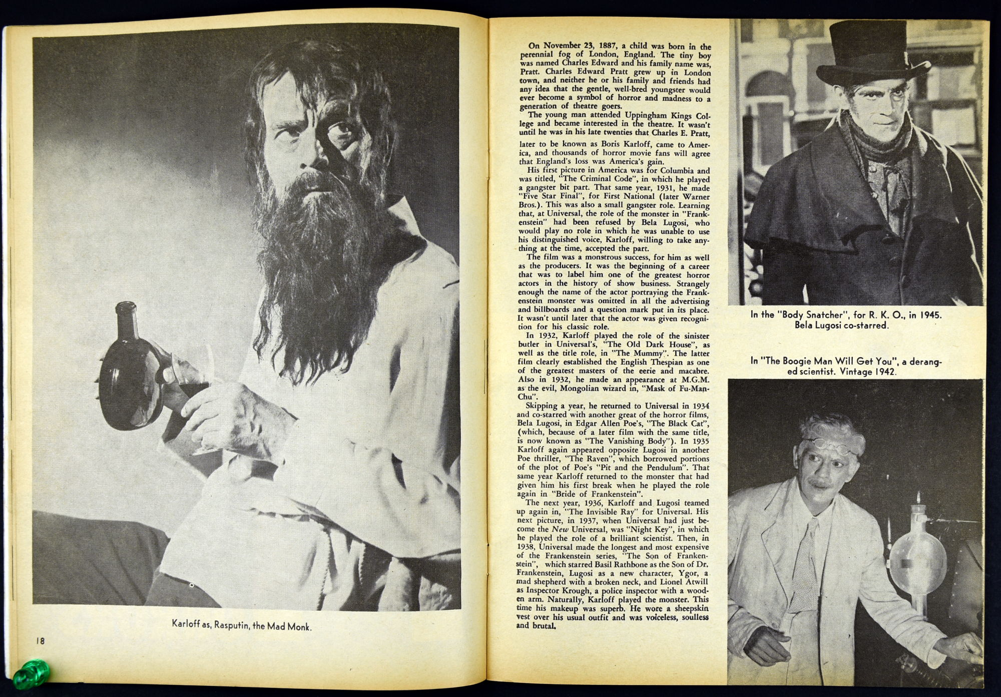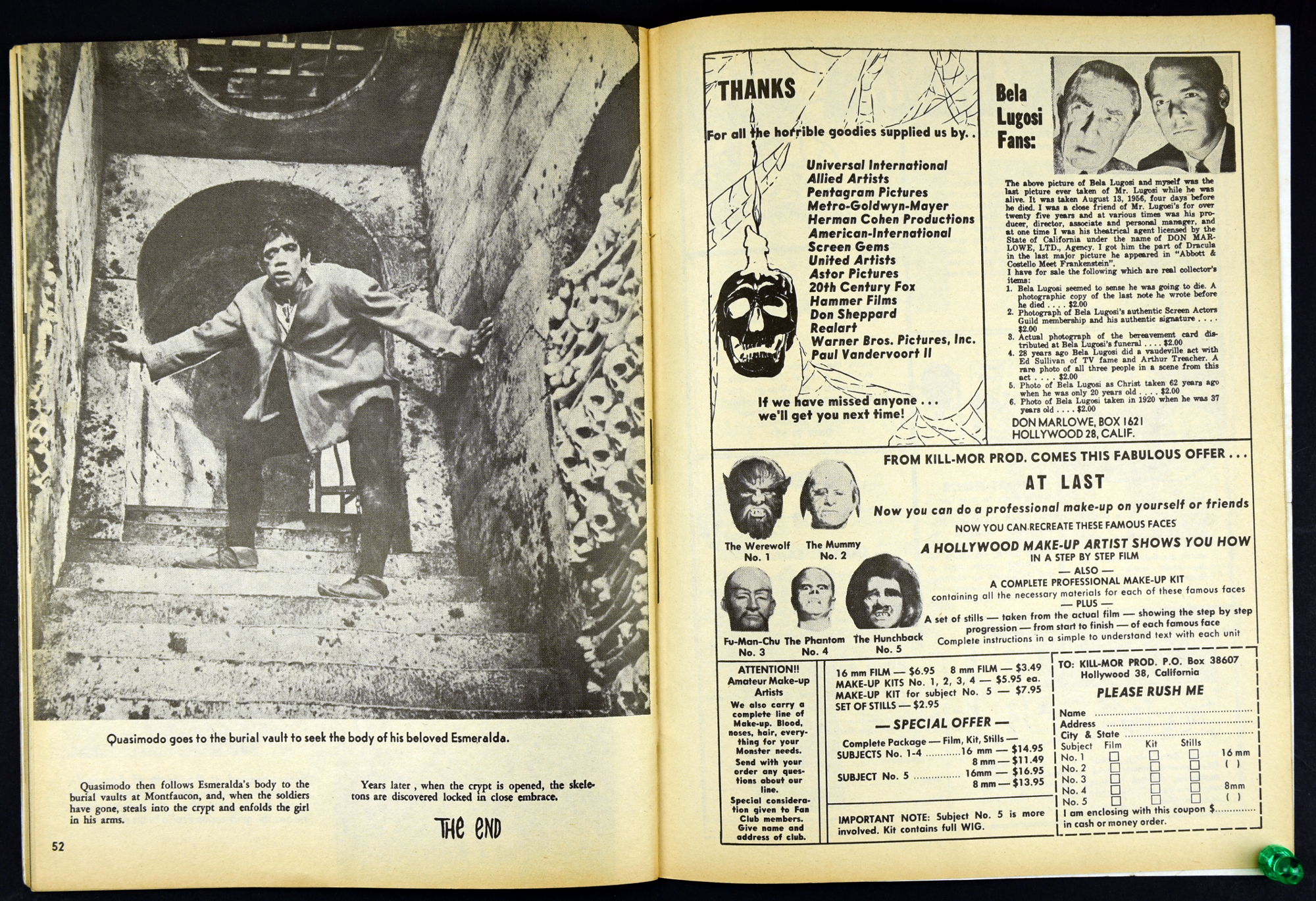 Charlton Publications joined in the monster magazine mash with Mad Monsters, providing lots of pictures, a little text, and fun monsterkid merchandise to covet. So much to be ordered! So little allowance money to stretch and stretch and stretch. In this issue Queen of Outer Space still looks awful, Boris Karloff is the Man of a Million Horrors, Coffin Capers provides a tidbit of humor, and a Black Zoo Party provides an historical glimpse at movie promotion back in the day.