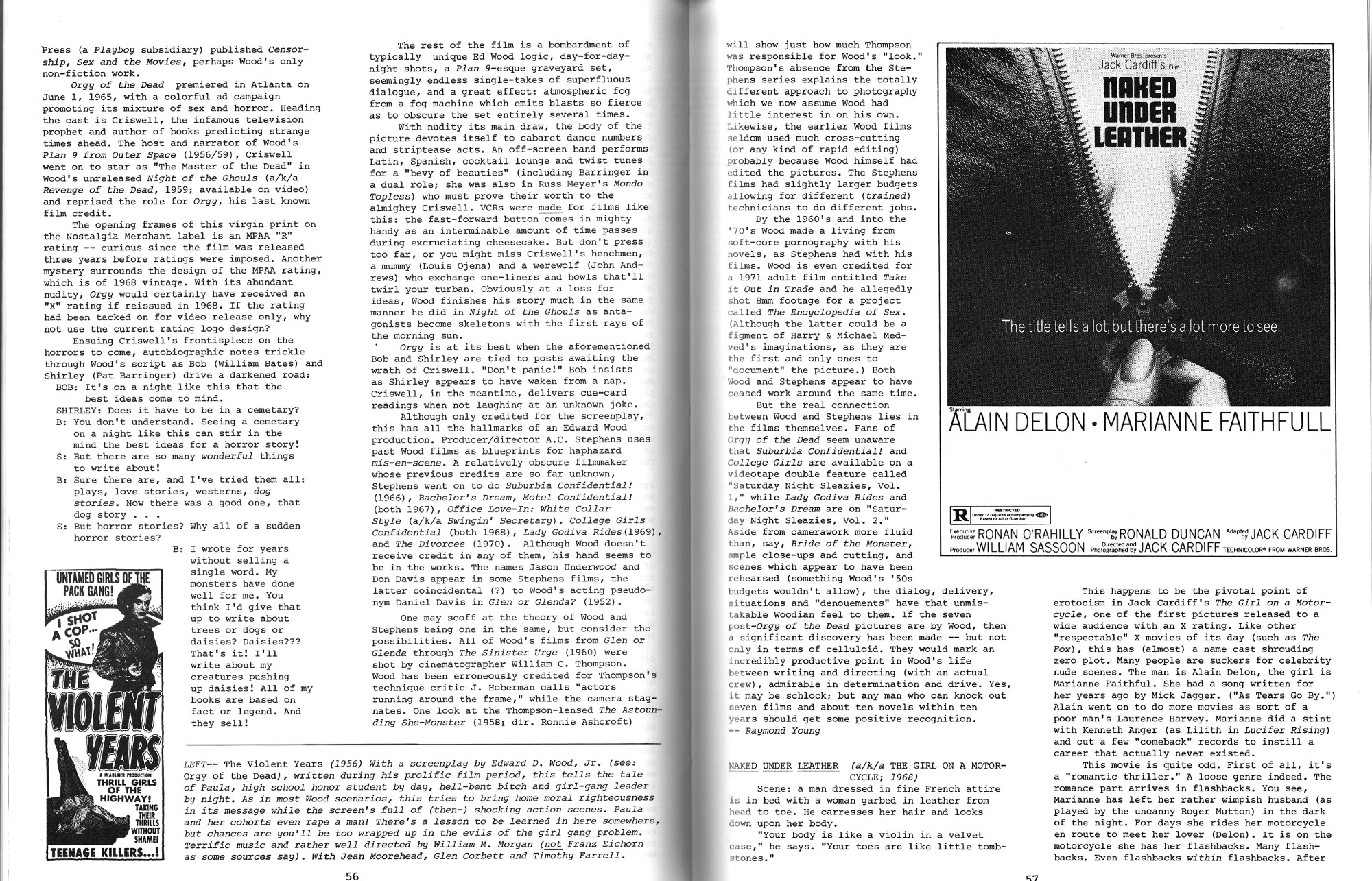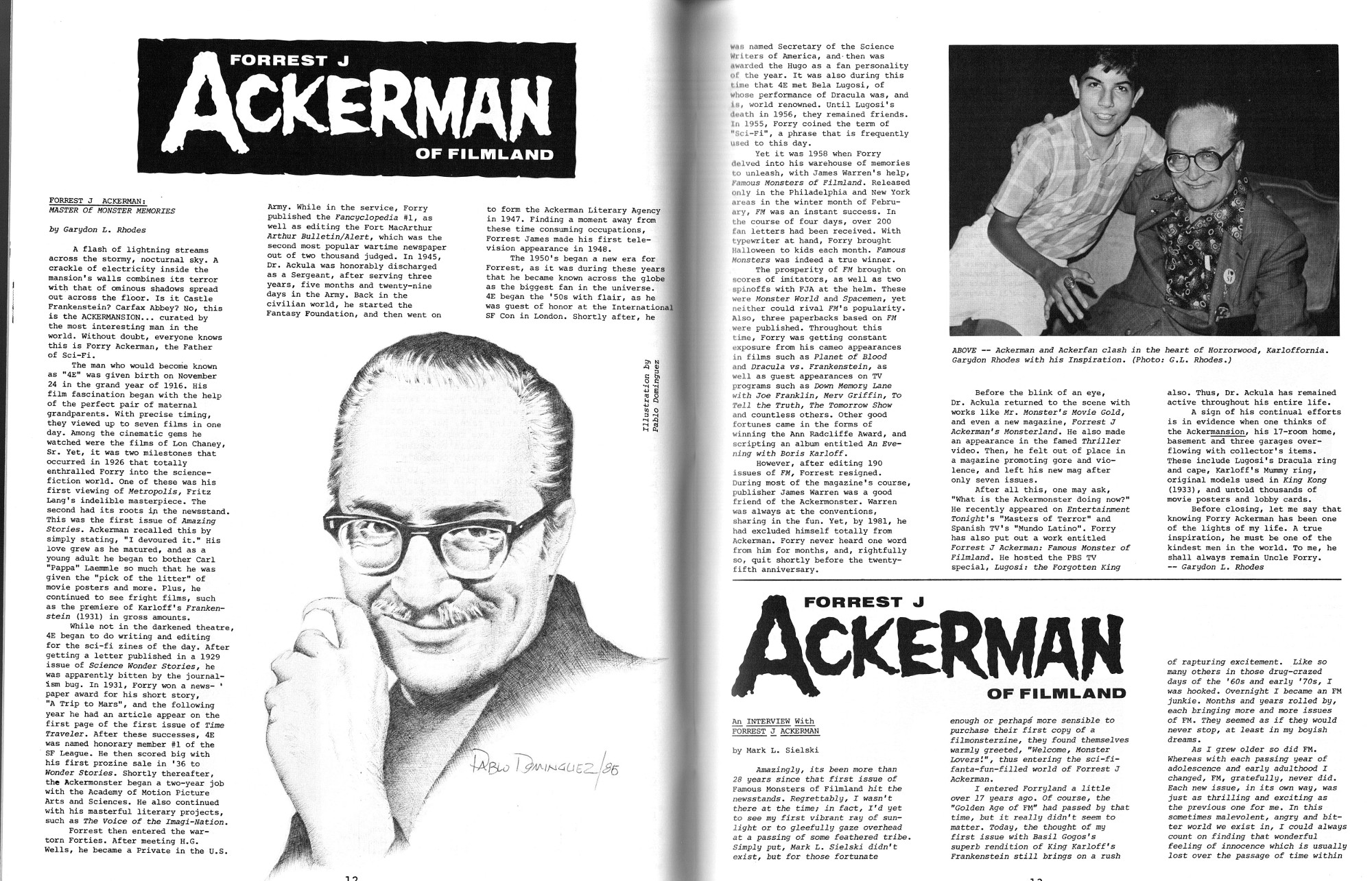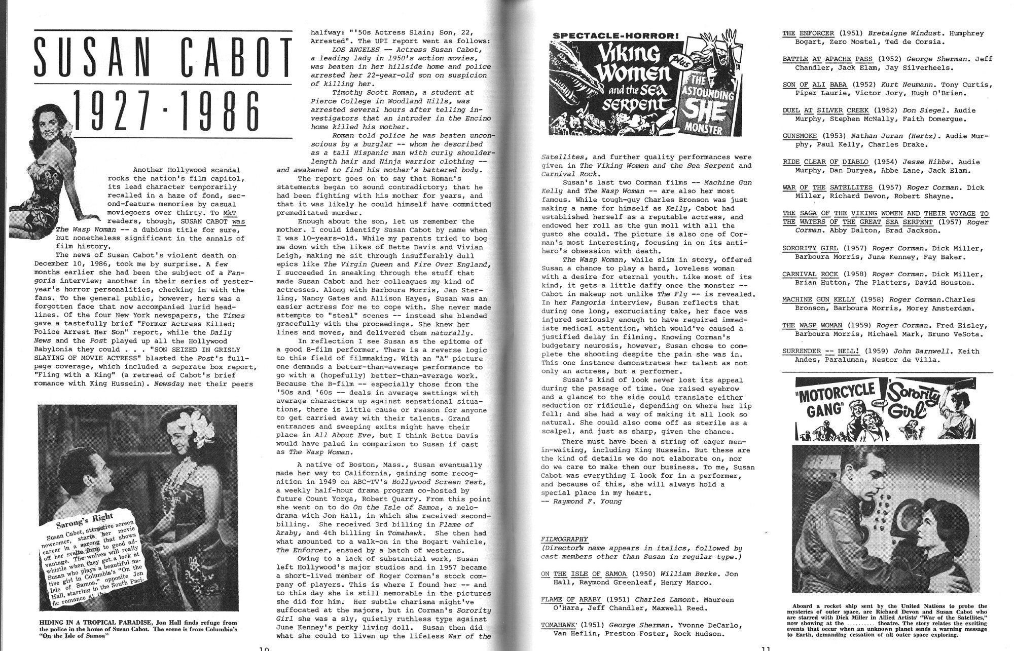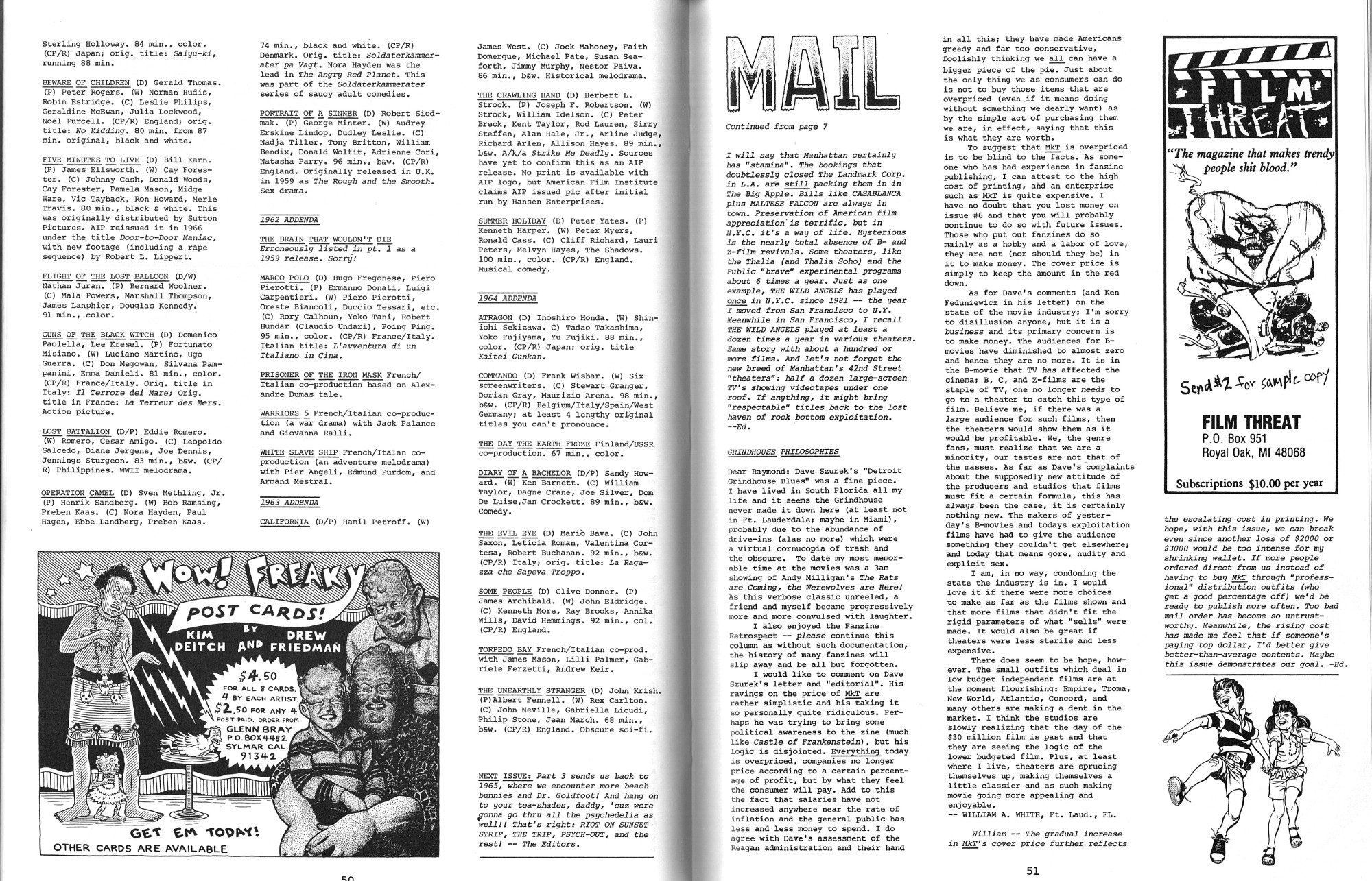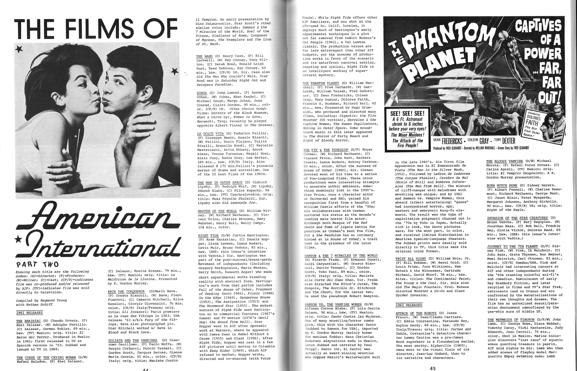 The pro-zine Magick Theatre, put out by Raymond Young, was always a long reading experience as it was packed with content. In this issue there is an interview with Forrest J. Ackerman (Famous Monsters of Filmland magazine), Susan Cabot (The Wasp Woman) is remembered and Review O Rama provides critiques for your viewing pleasure, with the Movie Noose Reel providing the low-down on remakes, half-bakes, and well-dones. And still more to enjoy and bring back memories.