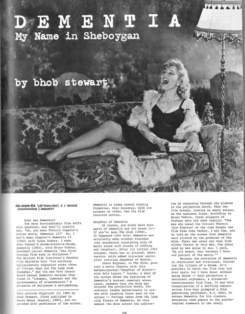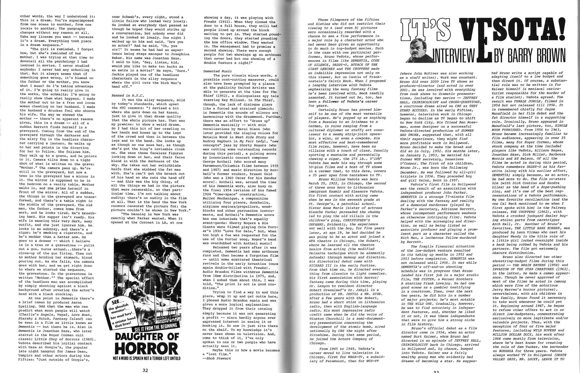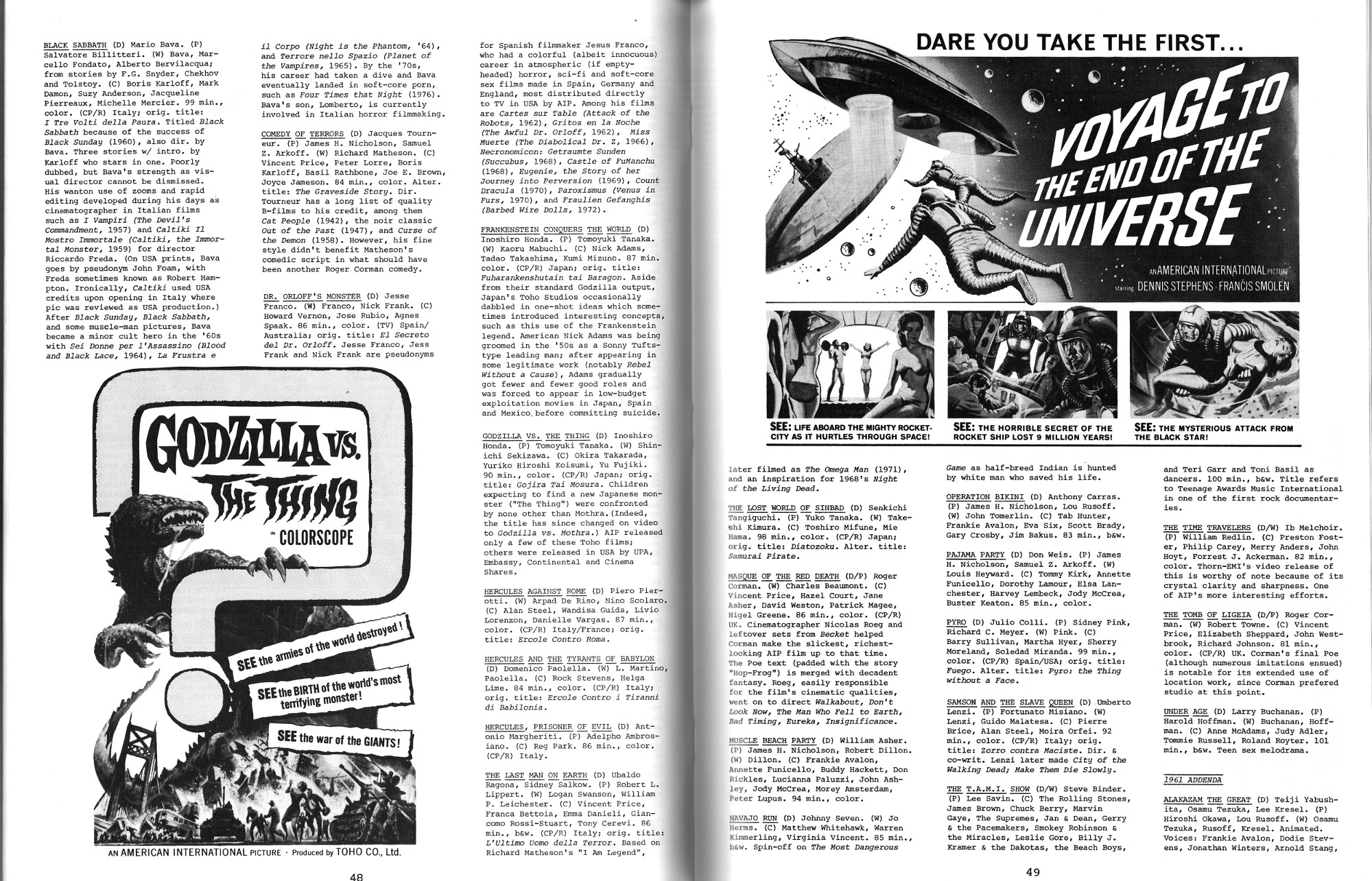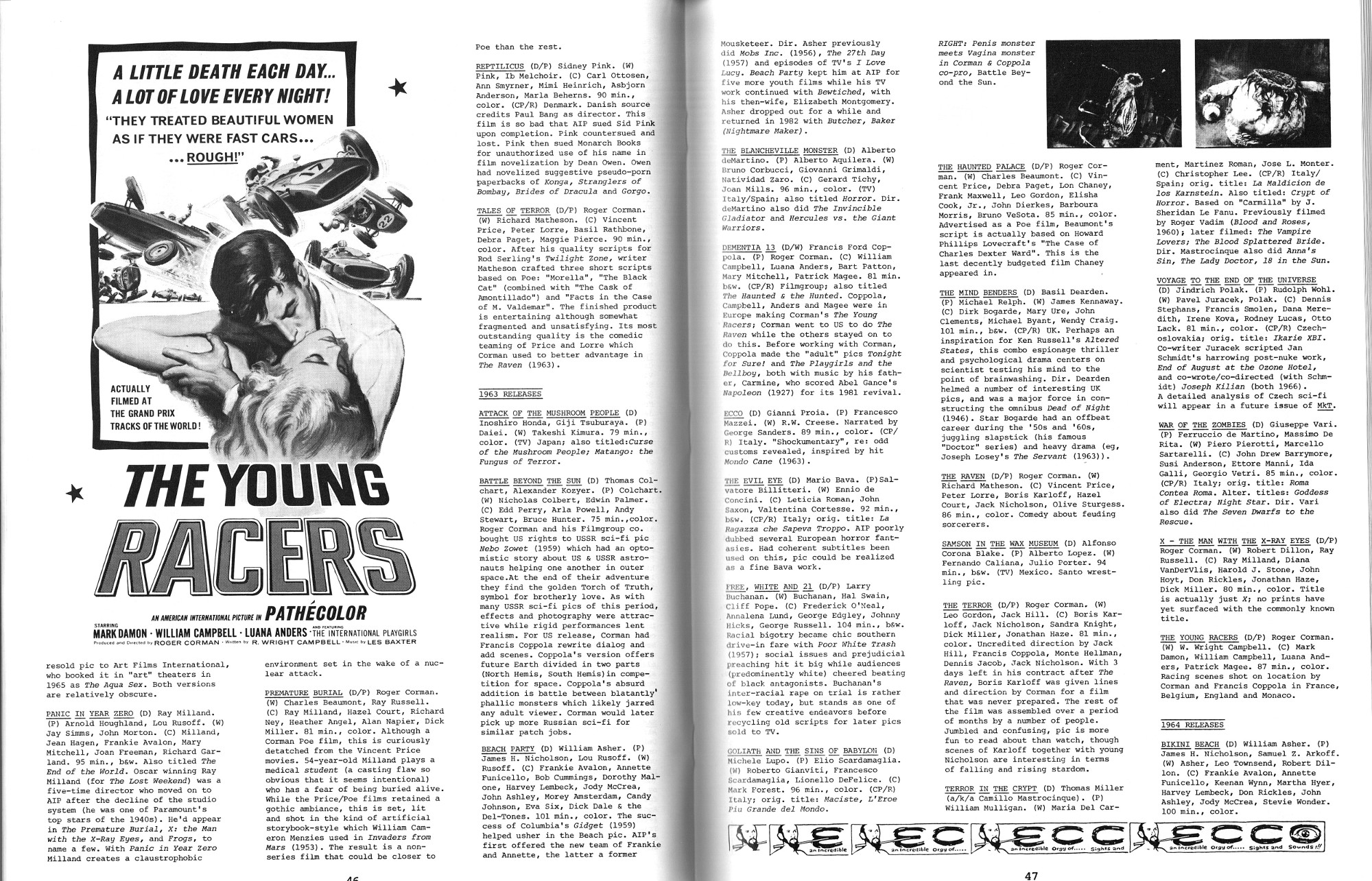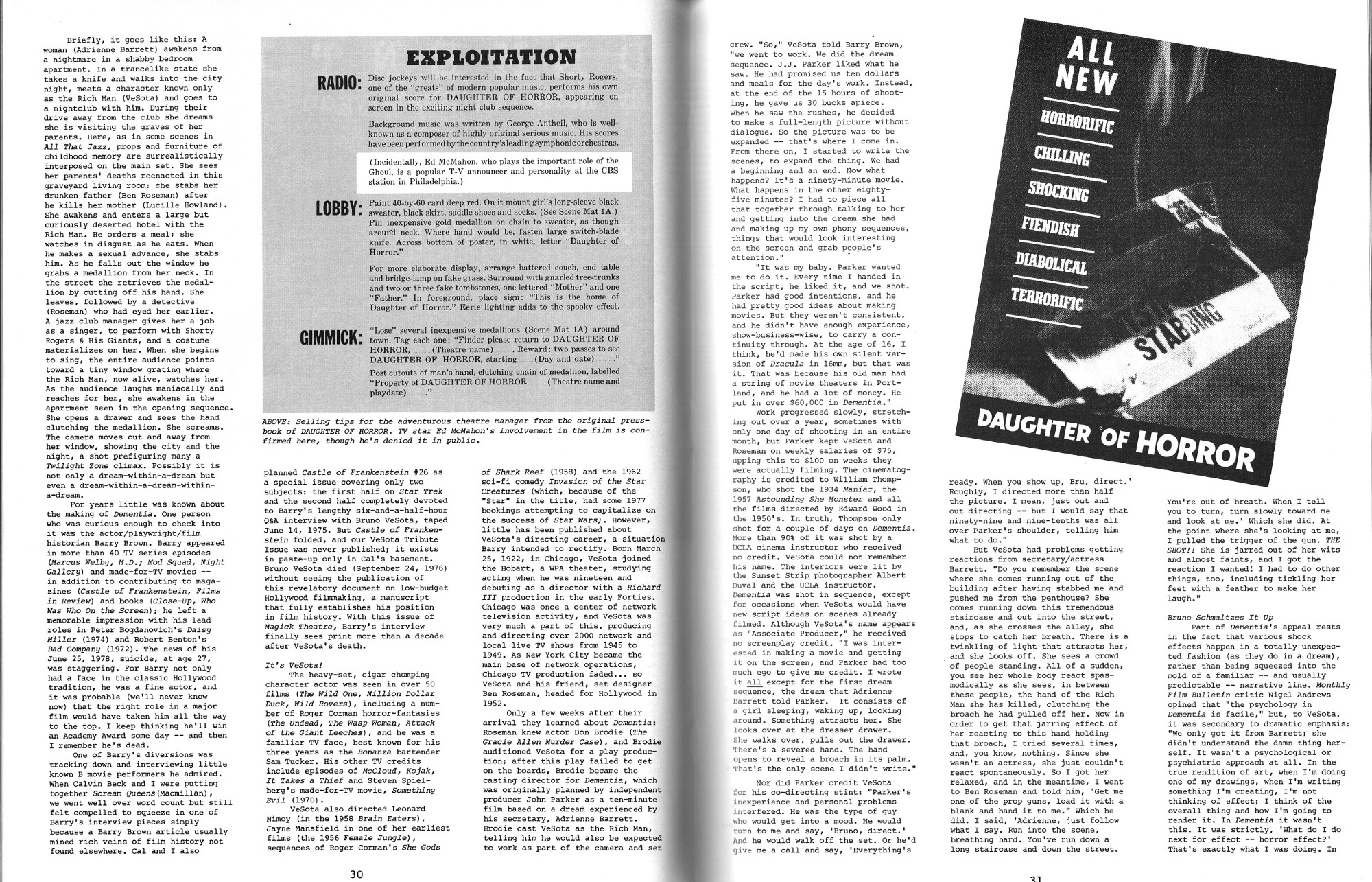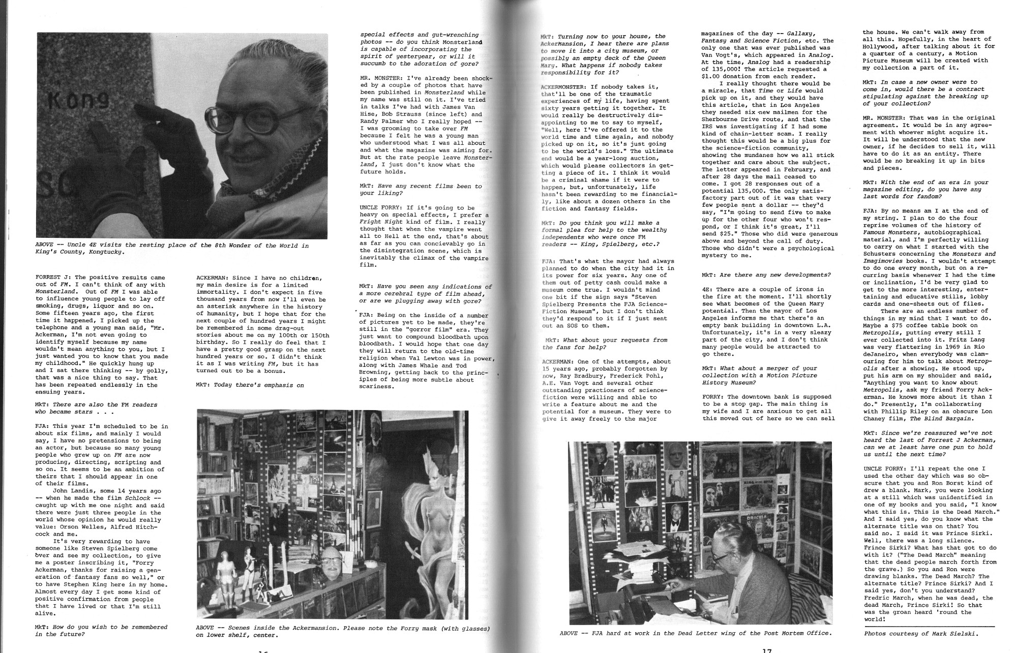 The pro-zine Magick Theatre, put out by Raymond Young, was always a long reading experience as it was packed with content. In this issue there is an interview with Forrest J. Ackerman (Famous Monsters of Filmland magazine), Susan Cabot (The Wasp Woman) is remembered and Review O Rama provides critiques for your viewing pleasure, with the Movie Noose Reel providing the low-down on remakes, half-bakes, and well-dones. And still more to enjoy and bring back memories.