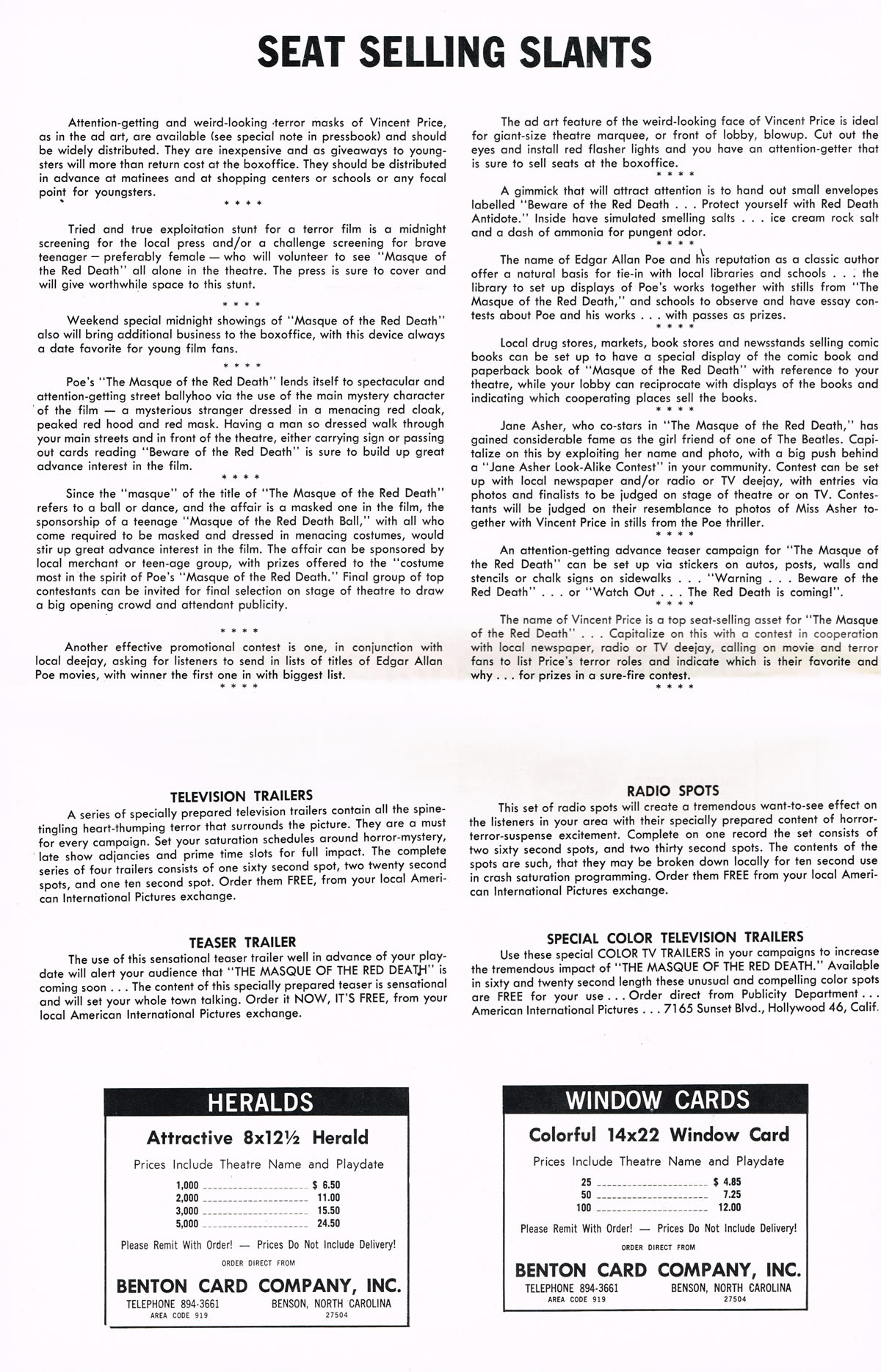 Movie Pressbook: The Masque of the Red Death Leave a Comment / Pressbooks (Horror, Sci Fi, Fantasy) / By JM Cozzoli What more can I say? Stare into this 11 x 17 inches pressbook for The Masque of the Red Death. Like this:Like Loading... Share this post Facebook Twitter Pinterest Linkedin