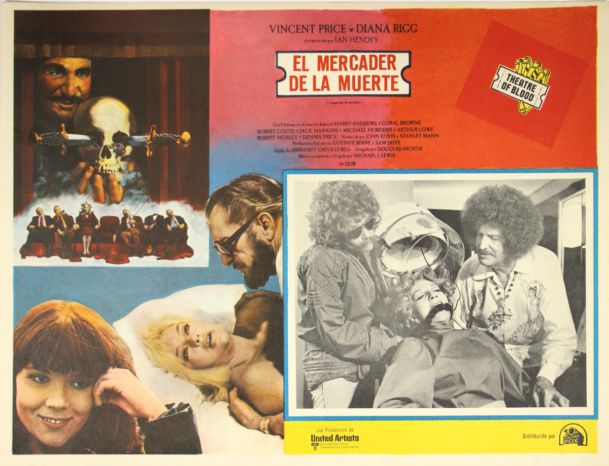 Mexican Lobby Card: Theater of Blood Leave a Comment / Azteca/Mexican Lobby Cards / By JM Cozzoli The Mexican lobby card for Theater of Blood with Vincent Price and Diana Rigg(1973). I shamefully admit I wanted to see it, at the time, more for Diana Rigg than Vincent Price. Horror fans, please don't hate me.Like this:Like Loading... Share this post Facebook Twitter Pinterest Linkedin