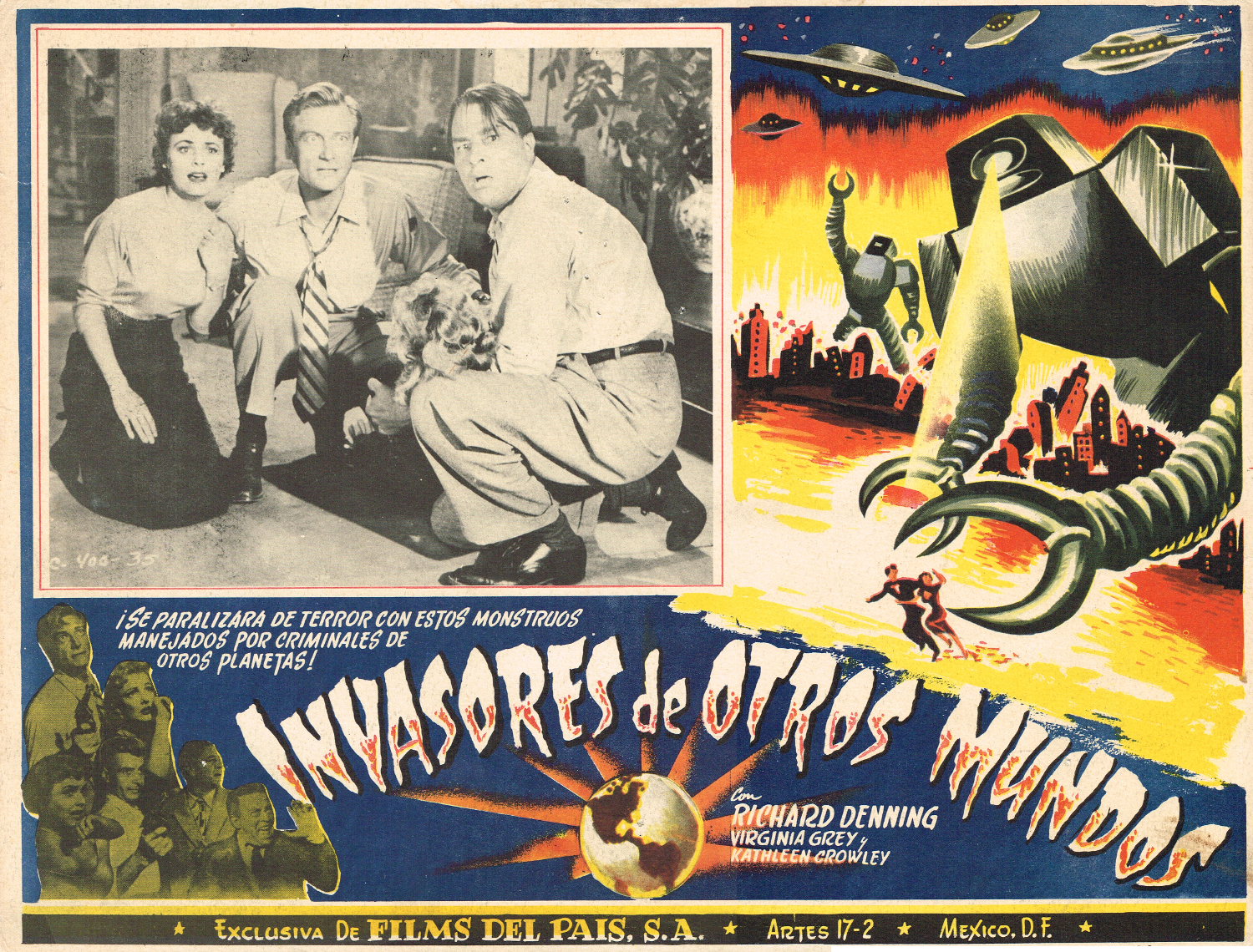 This is one of those movies that scared me back in the 1960s. Watching it on my old black and white cathode ray tube television helped lessen my fright, but those robots really creeped me out. Here's the Mexican lobby card with colorful artwork and a suitable scene of frightened people. And then there's Richard Denning. Gasping again. We've seen that look of fear before. He's a master at it. This one is a budget entry but worth watching on a Saturday, even if just for the robots. The actors aren't too shabby either.