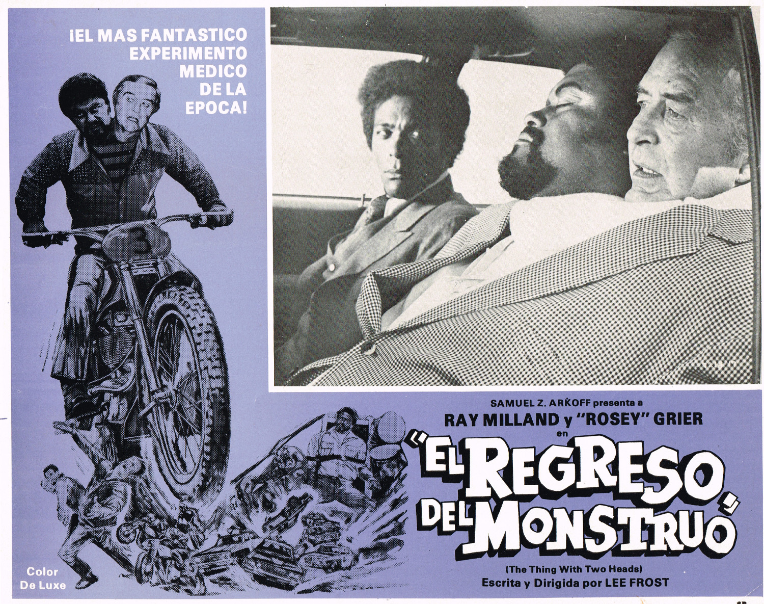 Mexican Lobby Card: The Thing With Two Heads Leave a Comment / Azteca/Mexican Lobby Cards / By JM Cozzoli One of the wilder horror movies out there. Way out there. Ray Milland and Rosey Grier butt heads in El Regreso Del Monstruo (The Thing With Two Heads, 1972)Like this:Like Loading... Share this post Facebook Twitter Pinterest Linkedin