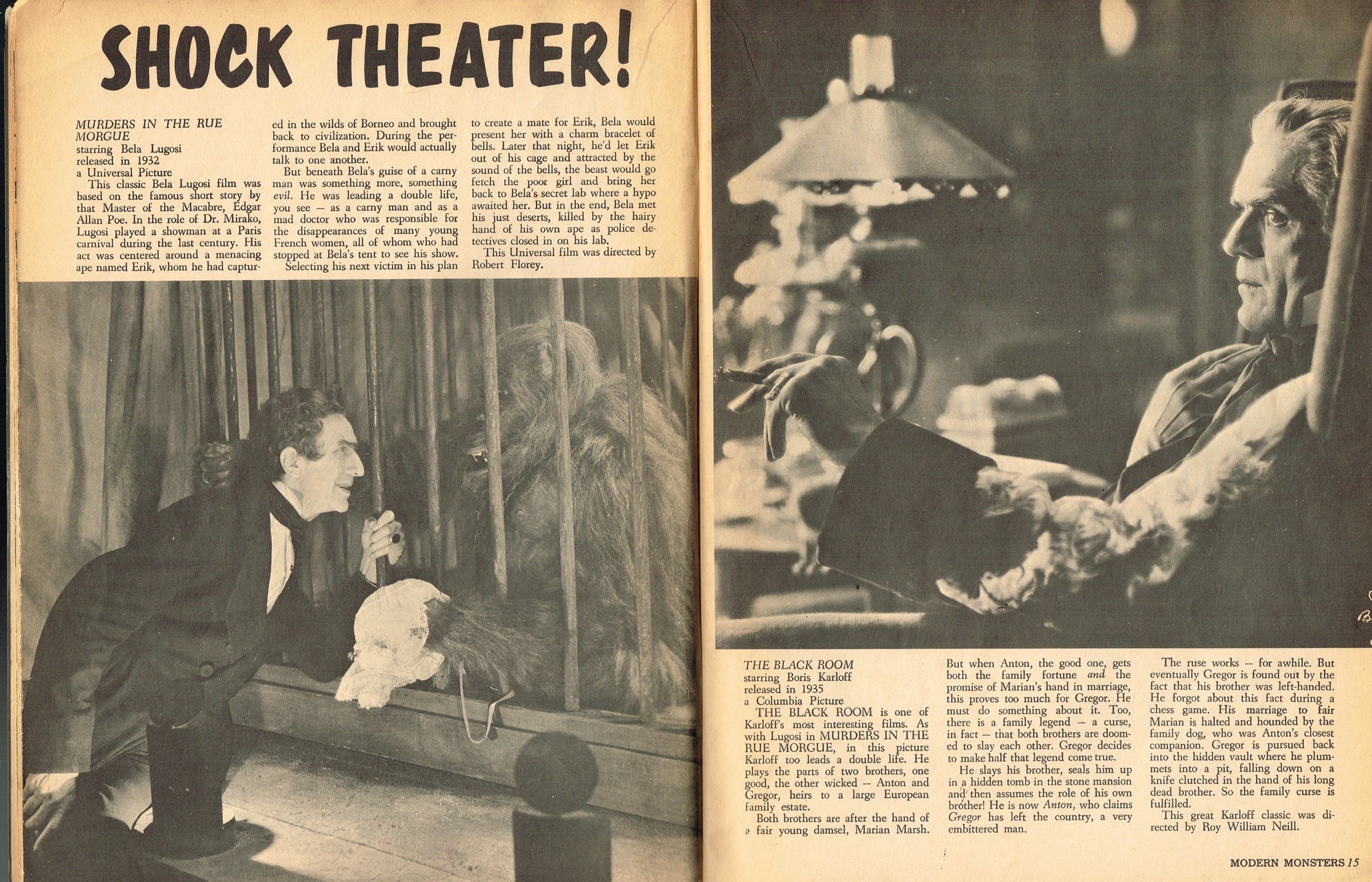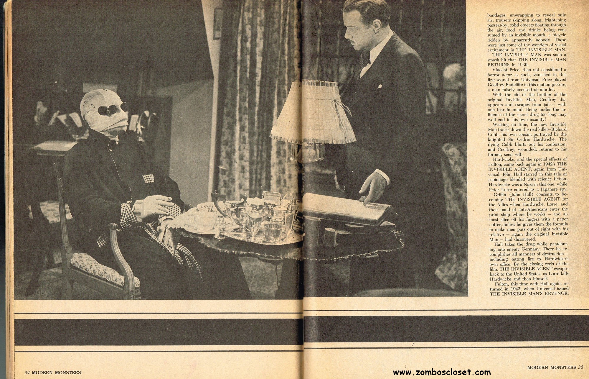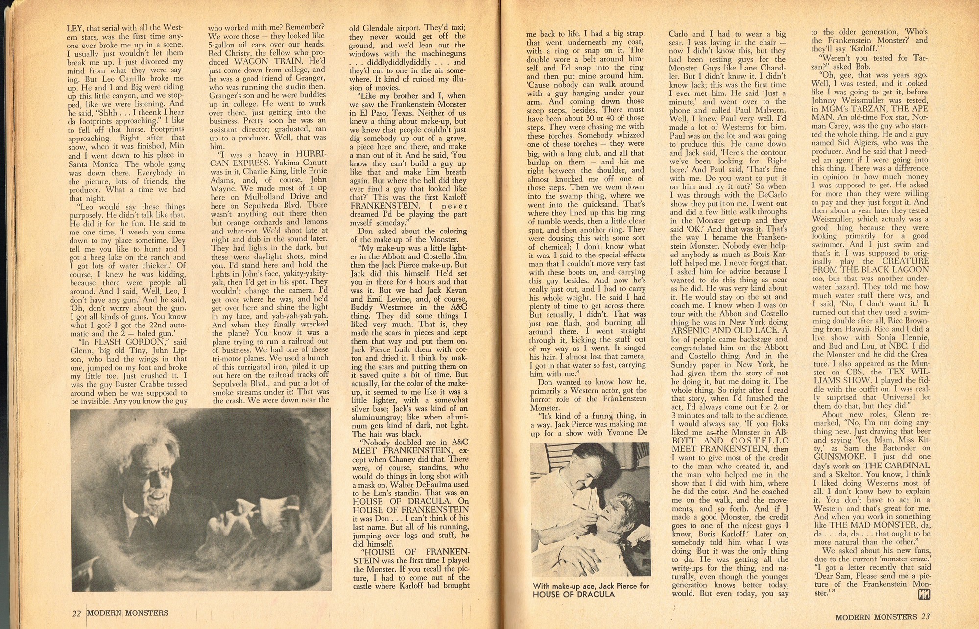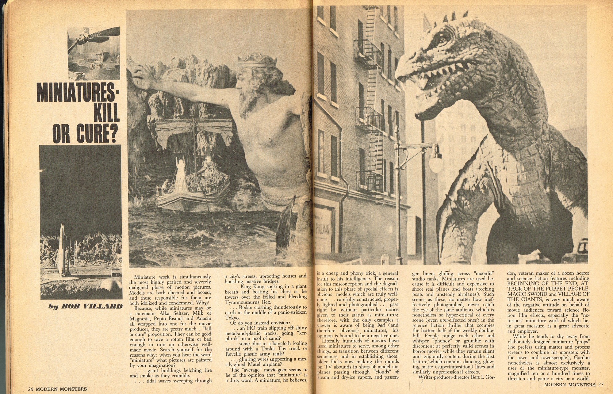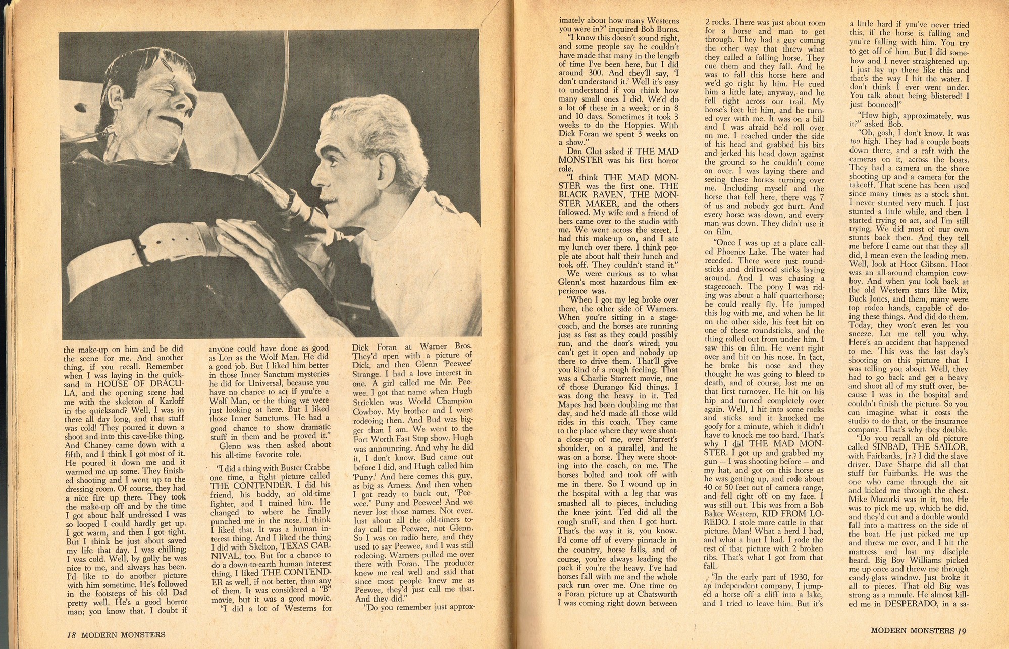 A very good monster magazine for the 1960s, Modern Monsters was more adult with its coverage of horror. In this issue 4, Glenn Strange provides interesting behind-the-scenes tidbits from his horror jaunts, Miniatures-Kill or Cure? is pondered by Bob Villard, and Victor Morrison shows us The Invisible Man and His Friends, or something like that. There’s a full color centerfold to pin up, and King Kong and Spy Smasher are examined. At over 80 pages, with pictures galore, and layout that’s plain but easy-reading, it’s a shame Modern Monsters didn’t continue past four issues. (Go to part 2)