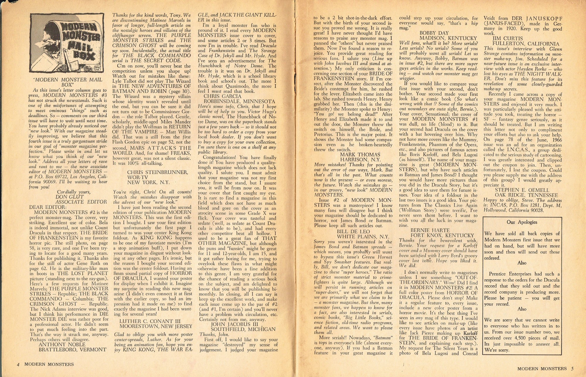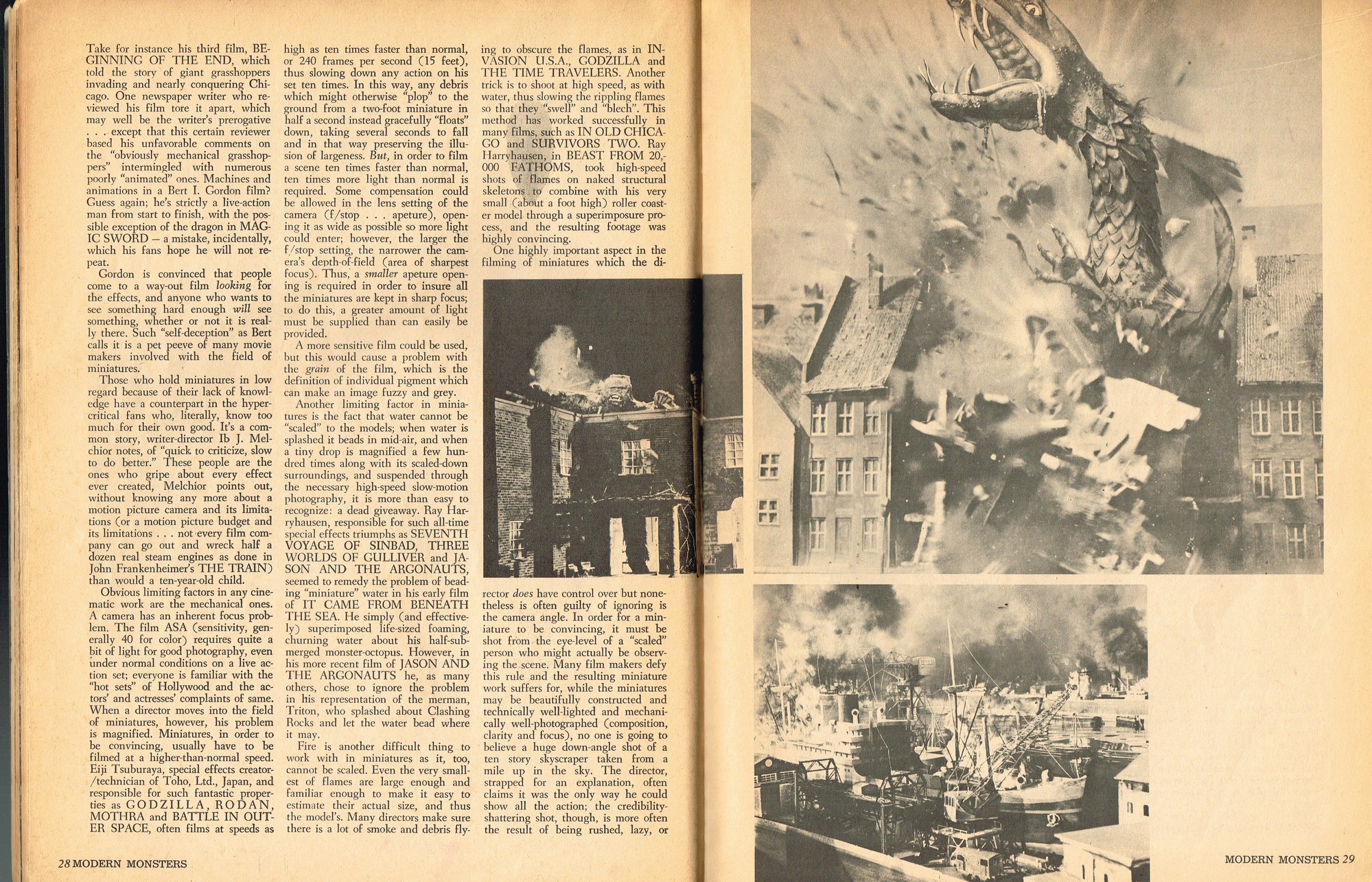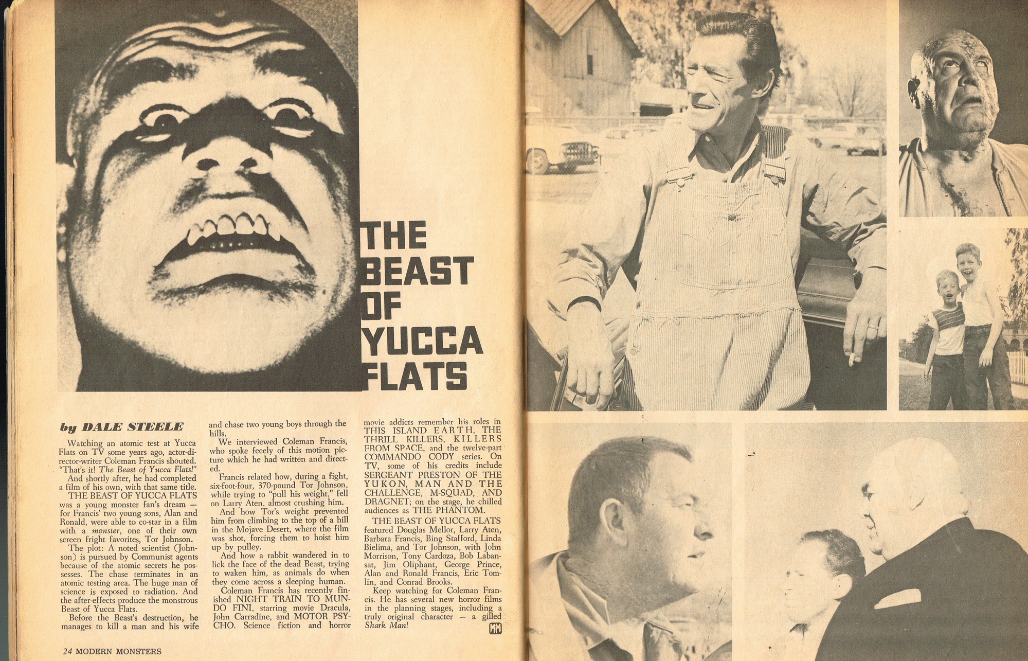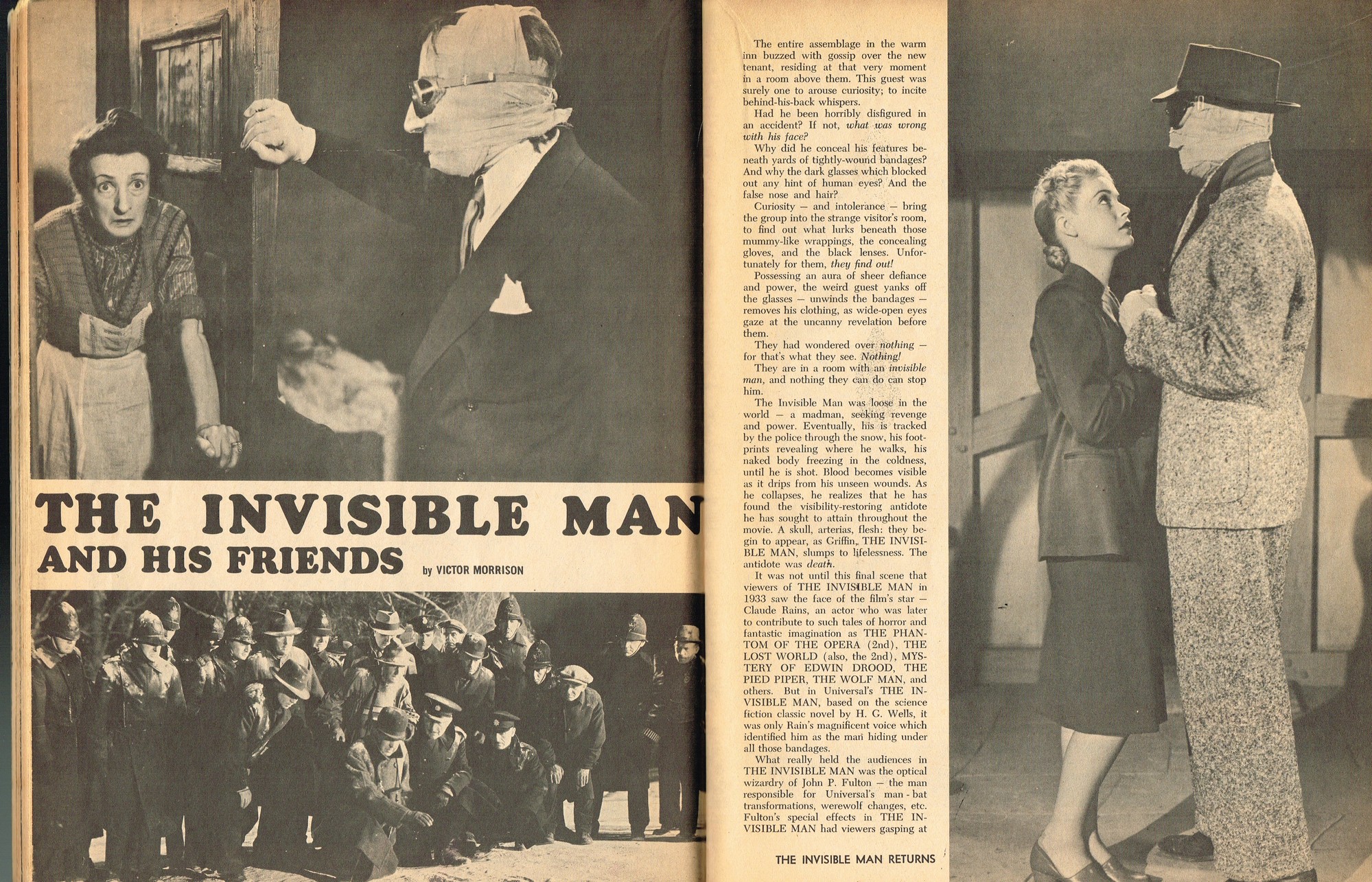 A very good monster magazine for the 1960s, Modern Monsters was more adult with its coverage of horror. In this issue 4, Glenn Strange provides interesting behind-the-scenes tidbits from his horror jaunts, Miniatures-Kill or Cure? is pondered by Bob Villard, and Victor Morrison shows us The Invisible Man and His Friends, or something like that. There’s a full color centerfold to pin up, and King Kong and Spy Smasher are examined. At over 80 pages, with pictures galore, and layout that’s plain but easy-reading, it’s a shame Modern Monsters didn’t continue past four issues. (Go to part 2)