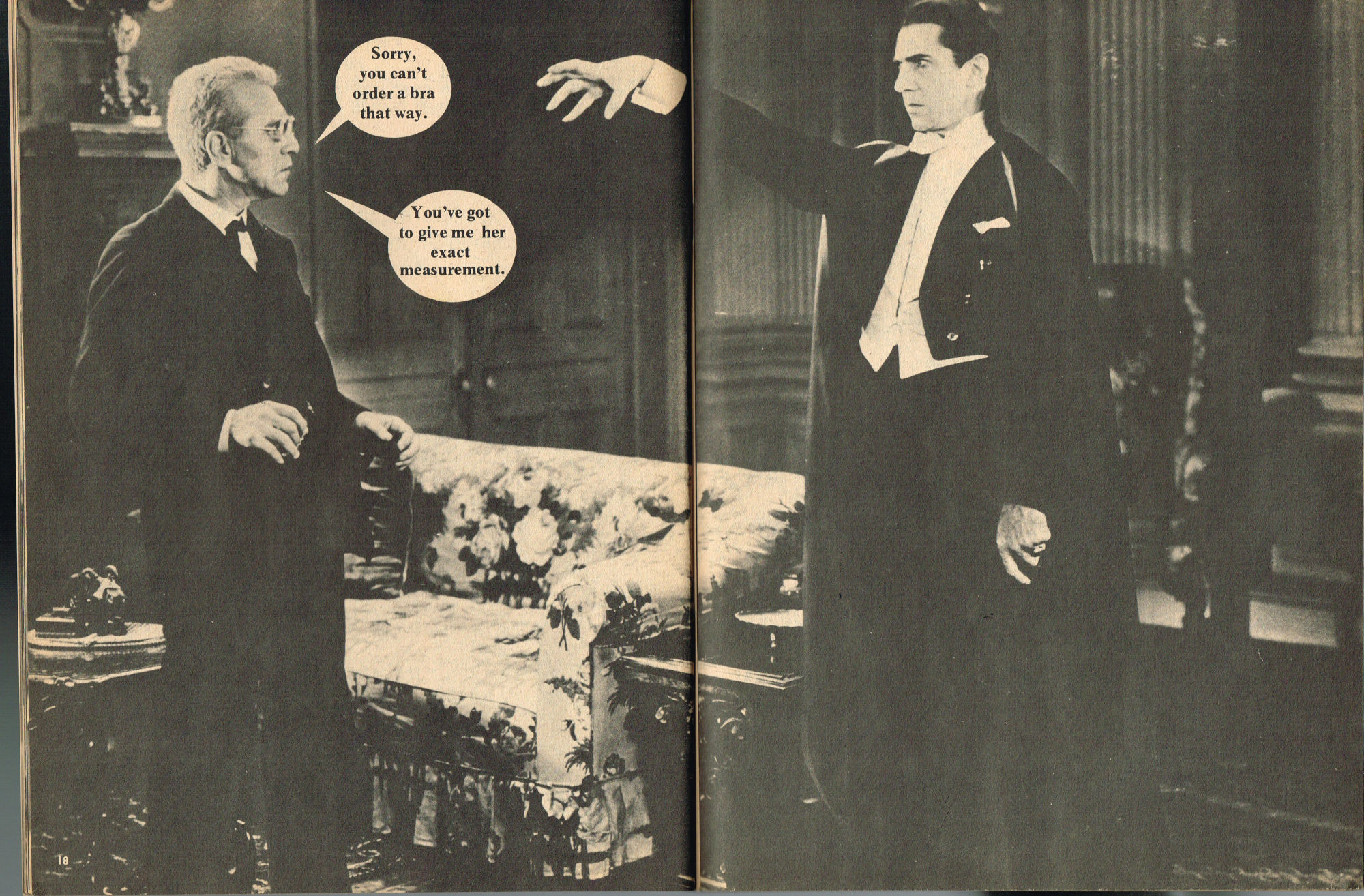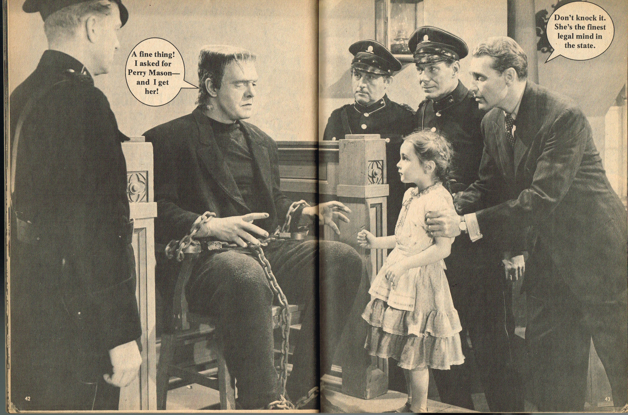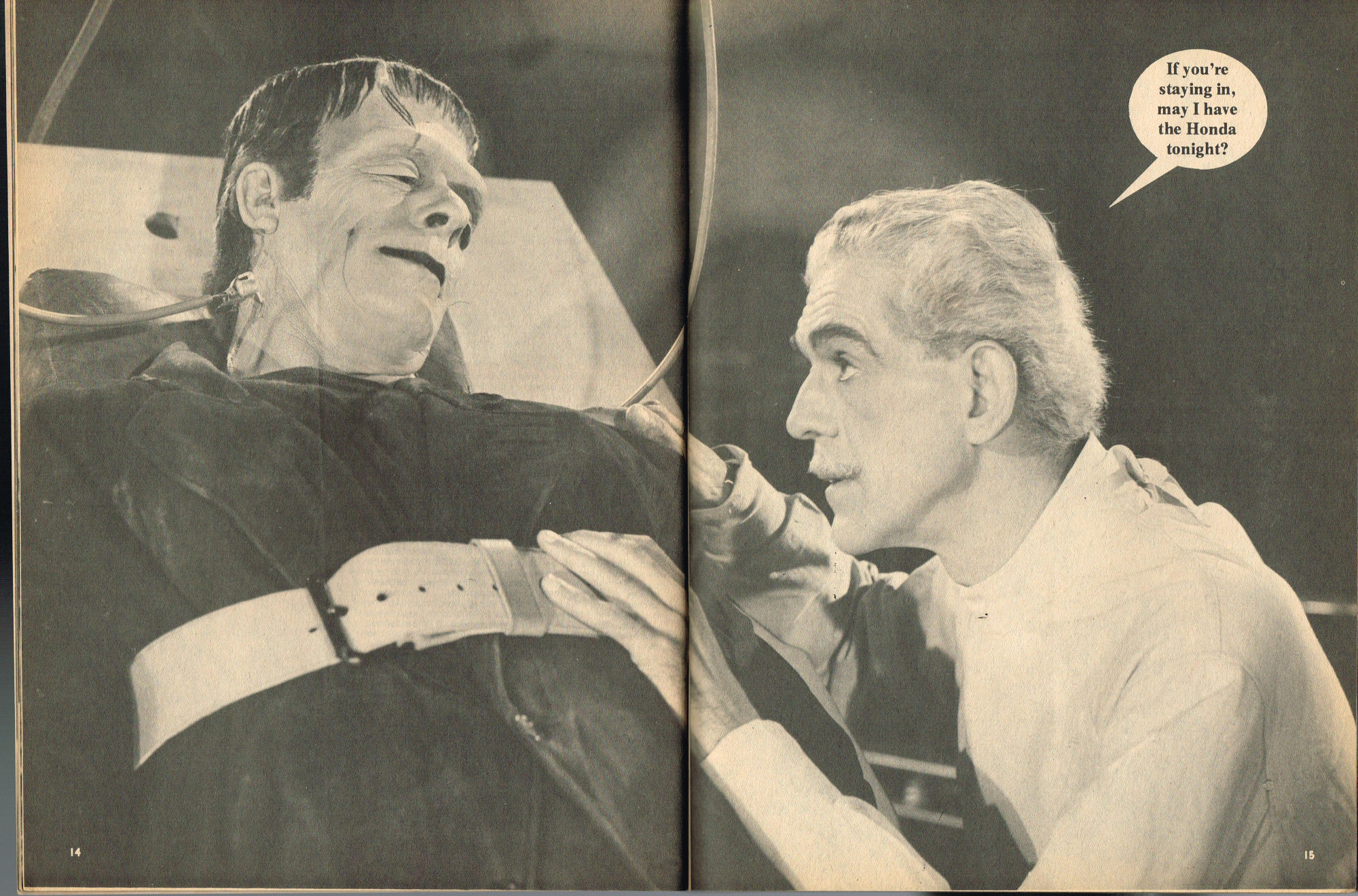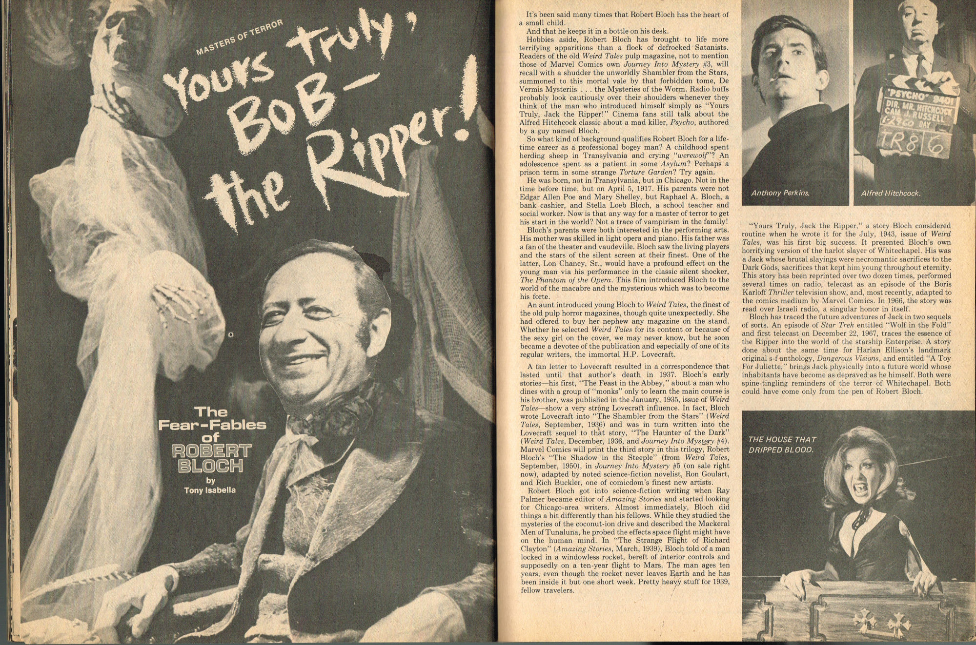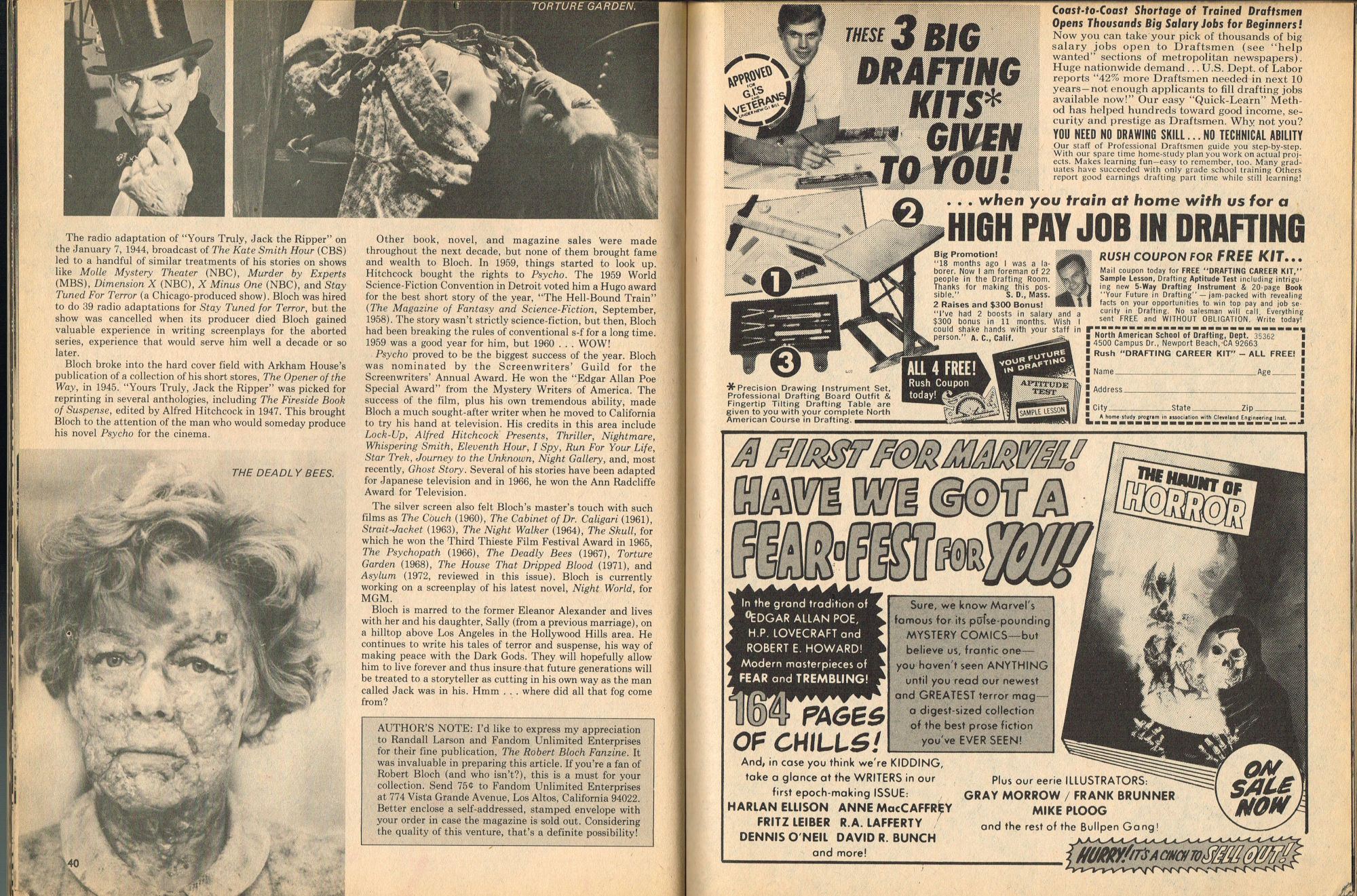 By issue 3 of Marvel's Monster Madness, it looks like the editors realized a magazine solely comprised of funny photos was no longer enough. Monsterkids, nurtured on Famous Monsters of Filmland, were growing up: they needed more meat on those monster bones to gnaw on. In this issue, aside from the many two-page photo spreads, you'll find articles on movie reviews, the Creature from the Black Lagoon as the Monster of the Month, the Fear-Fables of Robert Block, and Marvel's Werewolf by Night. Unfortunately, this would be the last issue, but Marvel would soon bring forth Monsters of the Movies to the crowded newsstands and spinner racks.