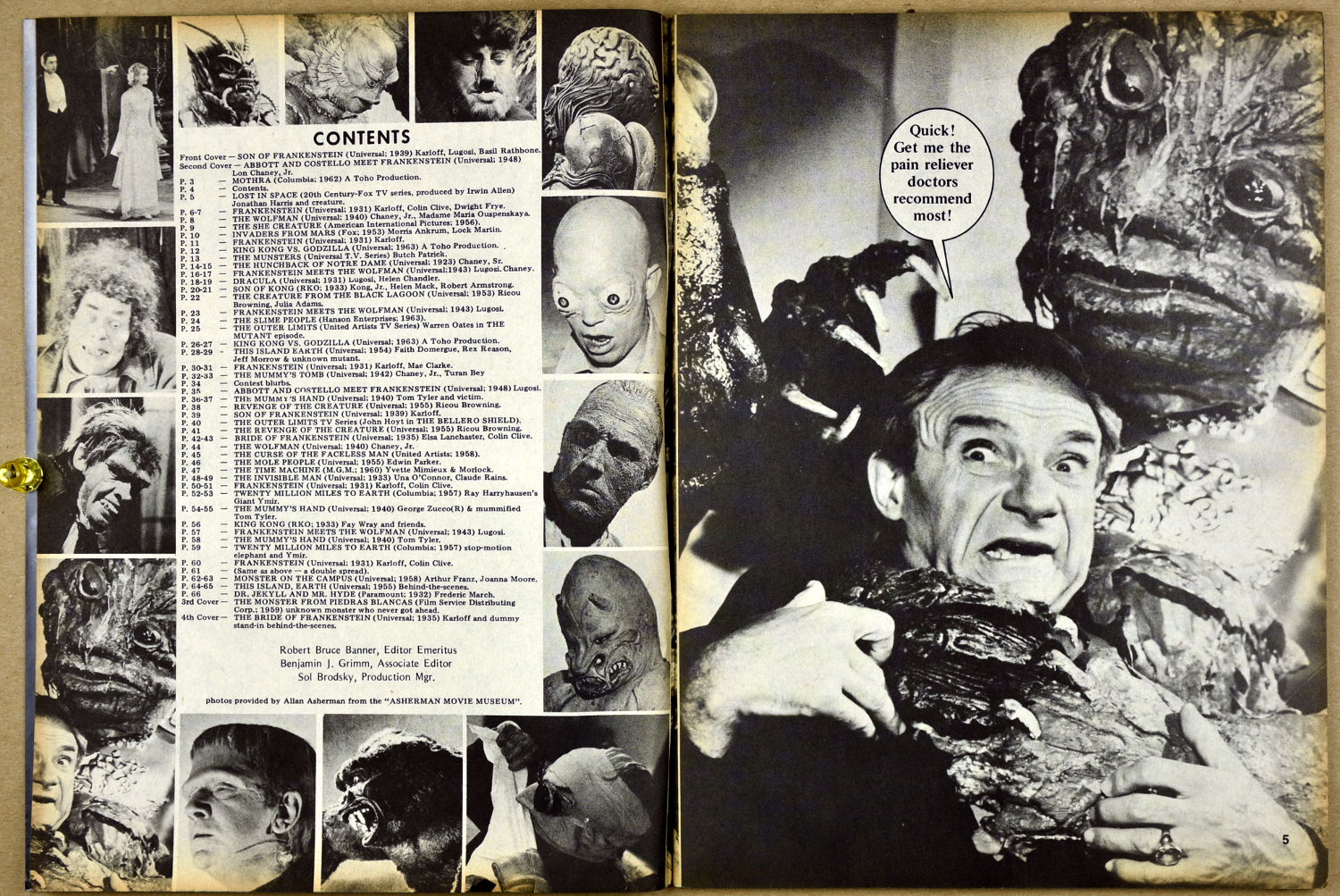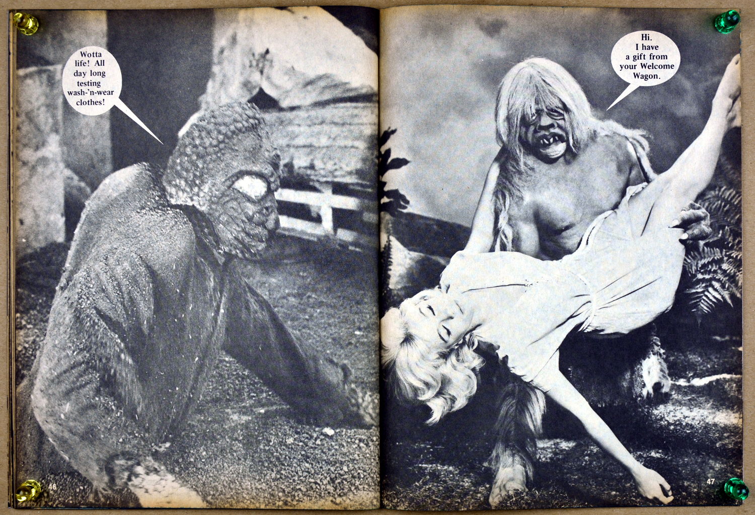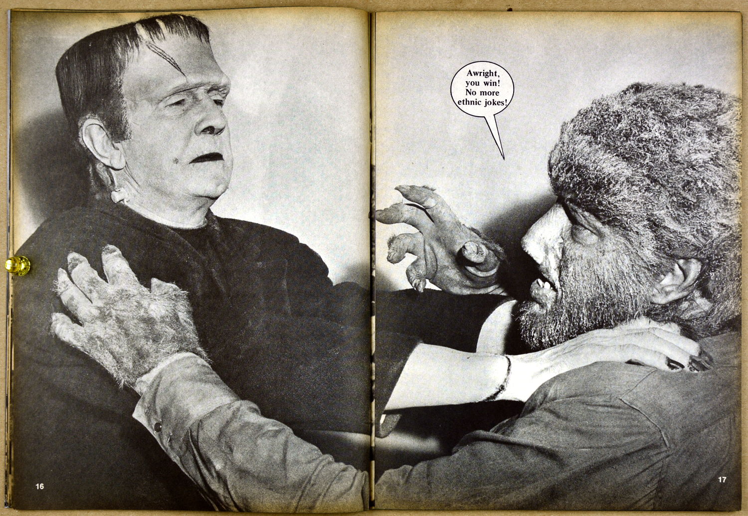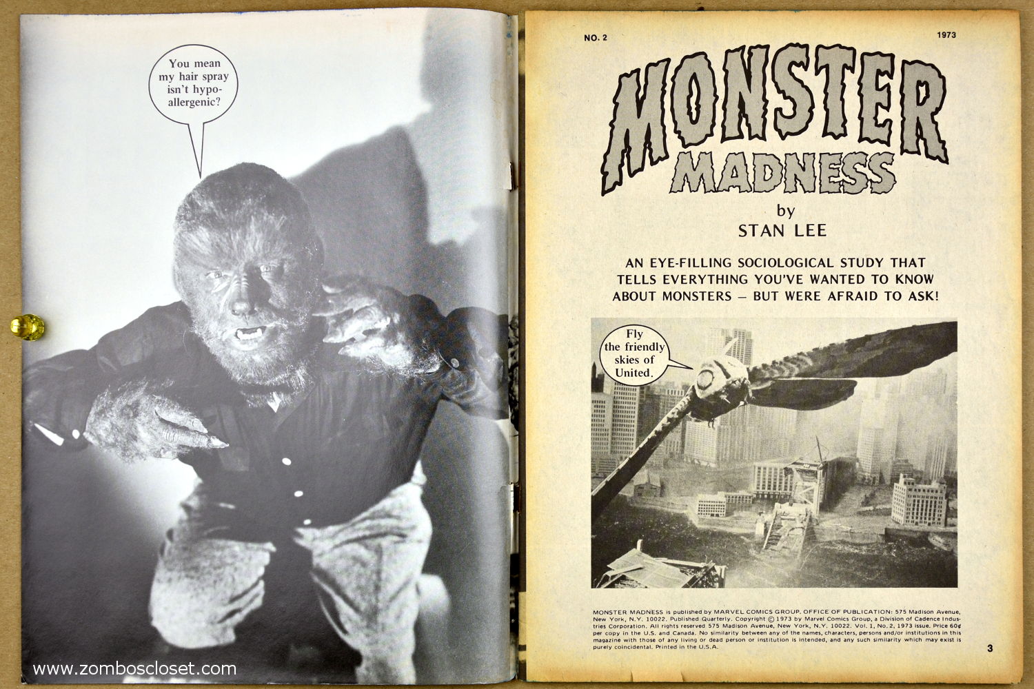 Surprisingly enough, Monster Madness issue 2 landed on the magazine racks in 1973. Perhaps monsterkids just loved seeing those monster pictures ( I know I did), or perhaps they figured the attempt at humor couldn't get any worse (MM #1). Well, so much for figuring. Here's issue 2 to provide your daily allowance of "groan" factor for today. Just keep telling yourself it was 1973.