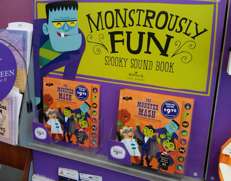 Bobby Pickett's 1962 Halloween song The Monster Mash makes a great read for the younger set, especially with spooky sounds and kooky illustrations for each monstrous scene. I saw this Hallmark display at Walgreens, but I'm sure you can find it just about anywhere books are sold.