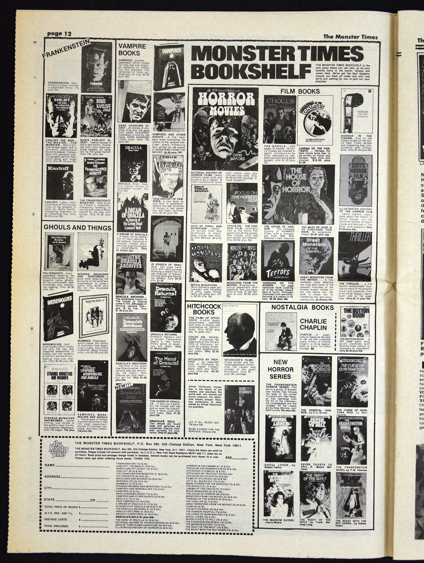 Lots of good reading in this 29th issue of The Monster Times. House of Frankenstein, From Hell It Came, TMT TV Cartoon Guide (anyone remember the glory days of Saturday morning animated shows?), and The Golden Voyage of Sinbad, are covered. In Meet Ms Monster, author Ruth Martin shares her visit to Japan, and in Death is a Way of Life (part 2, I'll have part 1 in issue 28 up soon), a much needed look at death in horror movies is explored. And…David Stidworthy (an alias if I ever saw one!) gives us The Celluloid Snowman, a rundown on Yeti in movies.