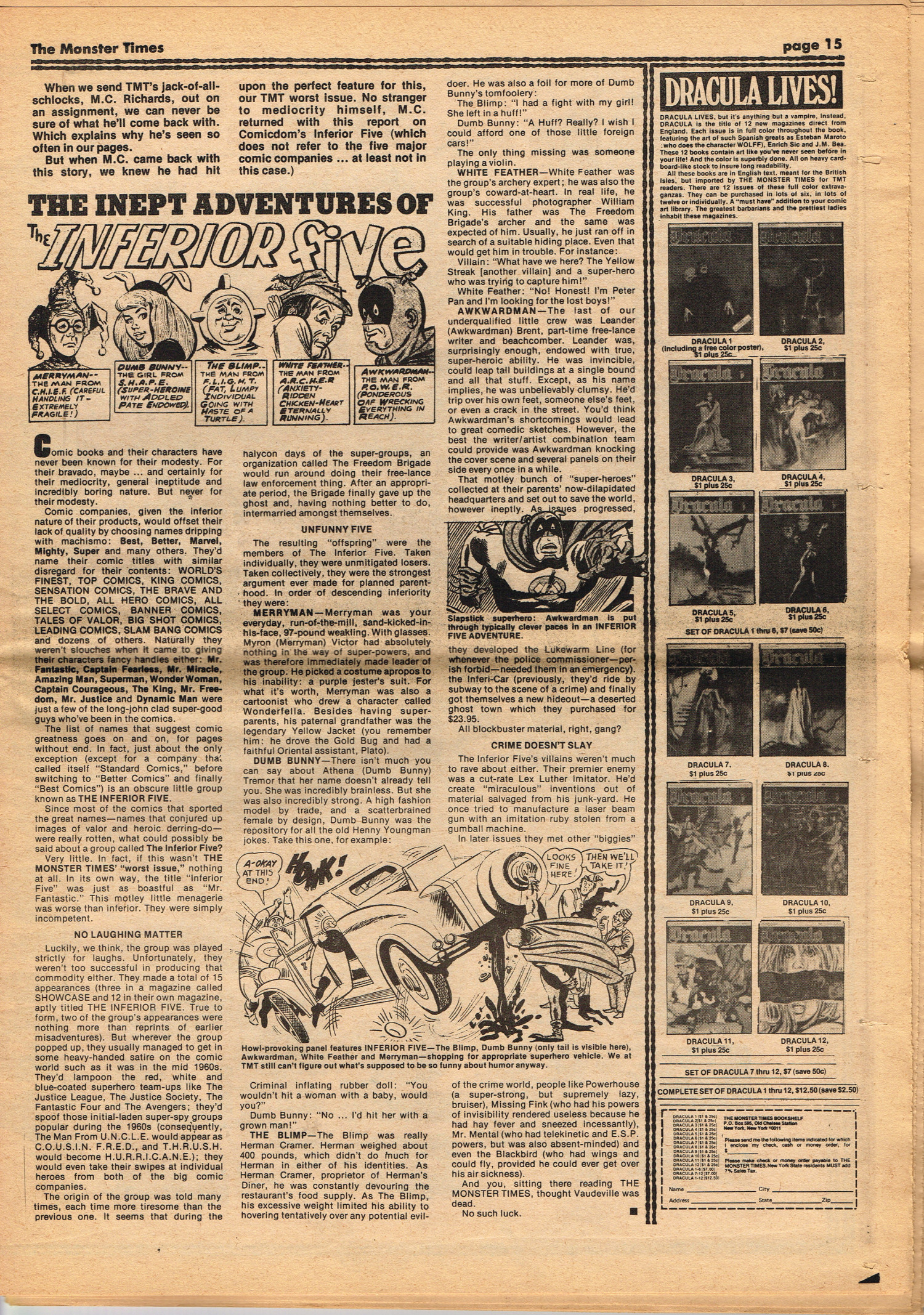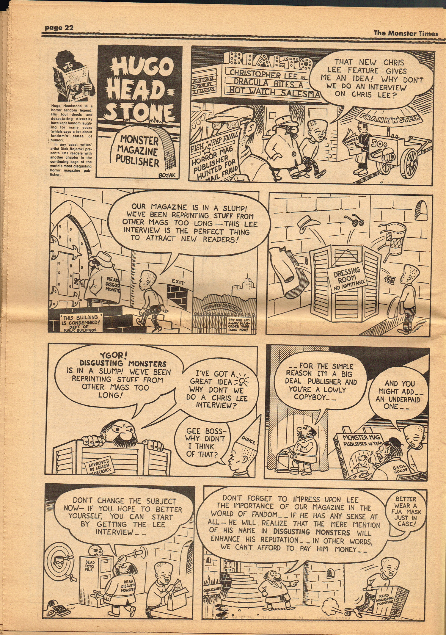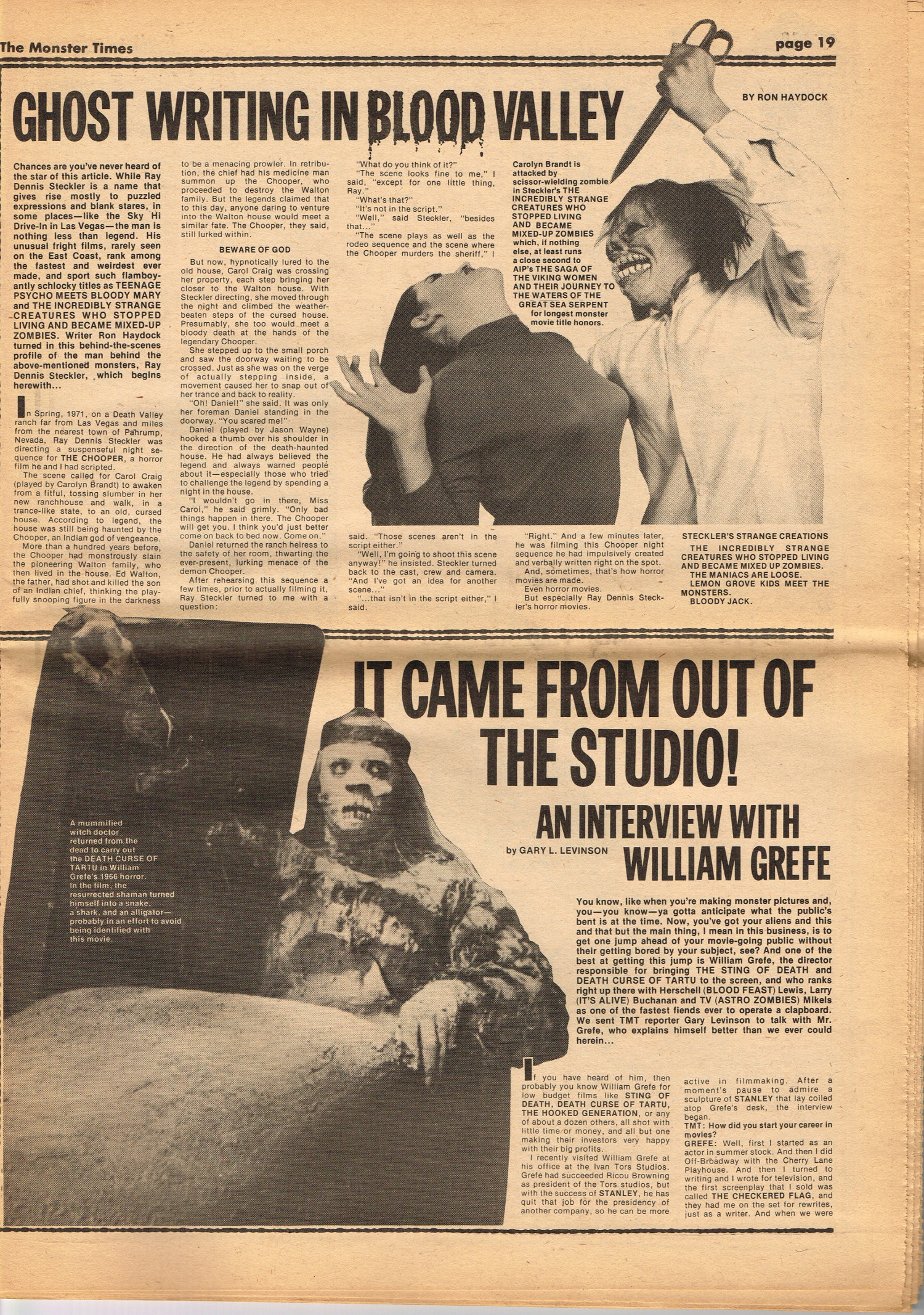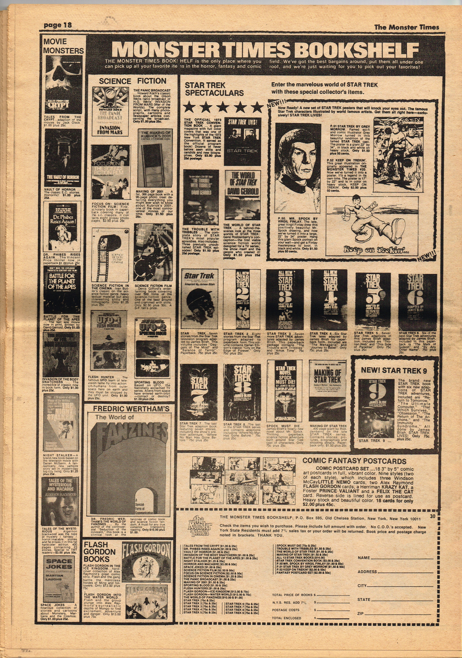 Issue 30 of The Monster Times gives Long Island a bad rap by providing way too much coverage on The Horror of Party Beach, annoys comic book fans with an assessment of The World's Worst Comics, and goes ape over John Landis's Schlock. Continuing the schlock motif, Joe Kane explores the 1950s teenage-slanted horror movies, with perhaps a bit more negativity than is warranted, and William Grefe (the director of Stanley) is interviewed. The best article is a rundown on all the really bad horror movies we can't seem to forget.