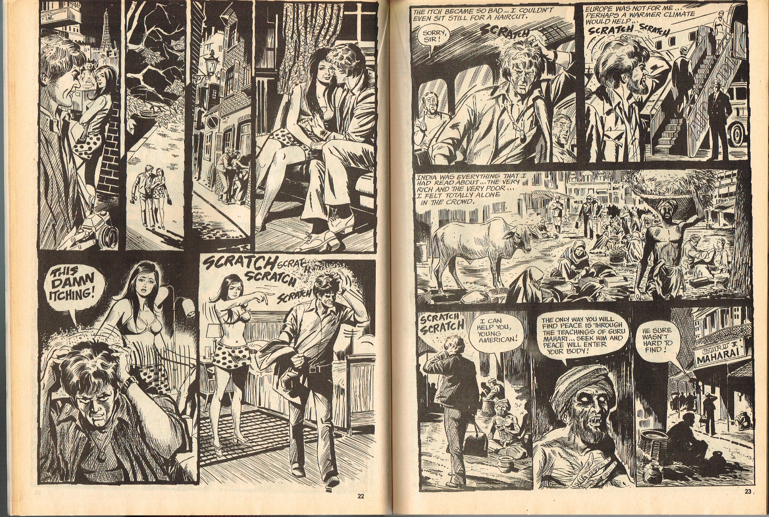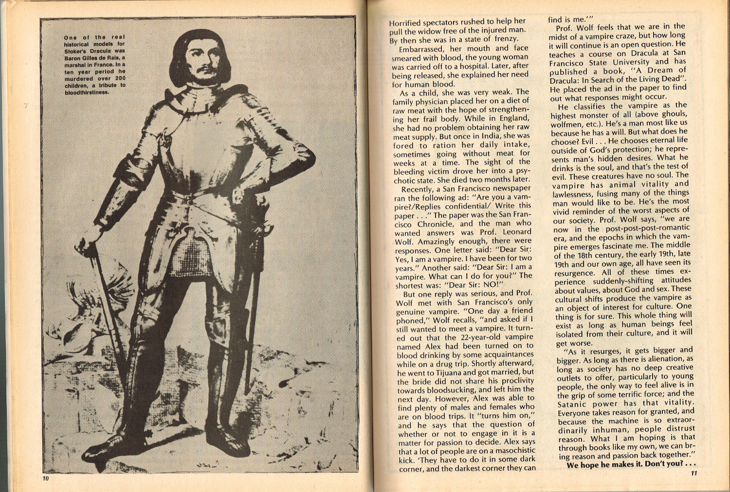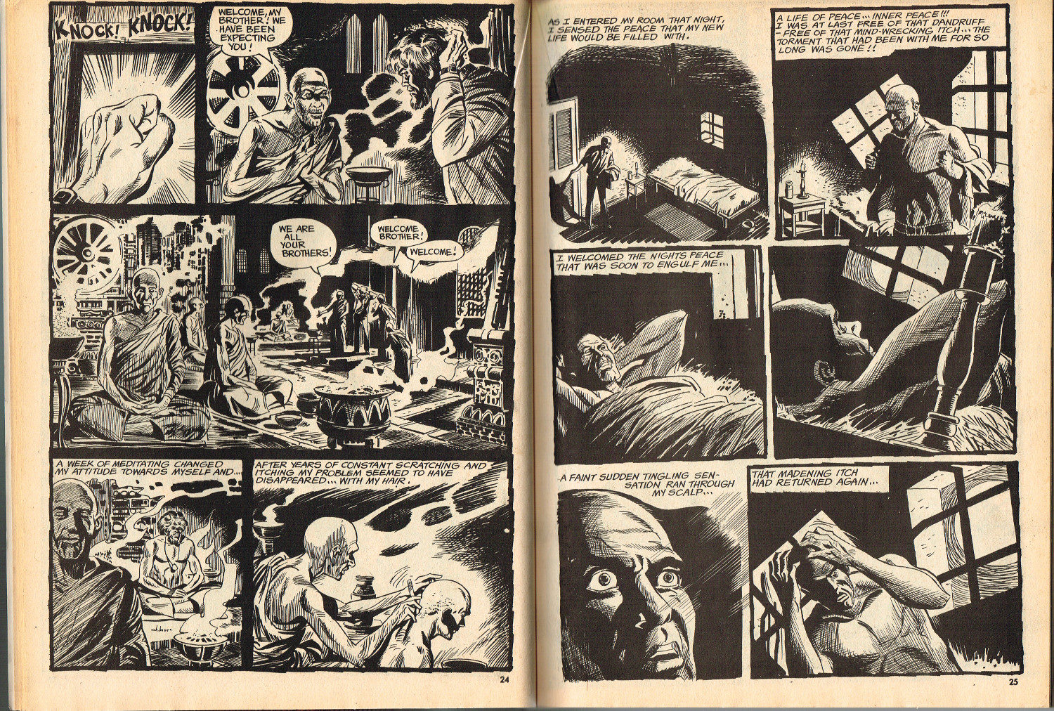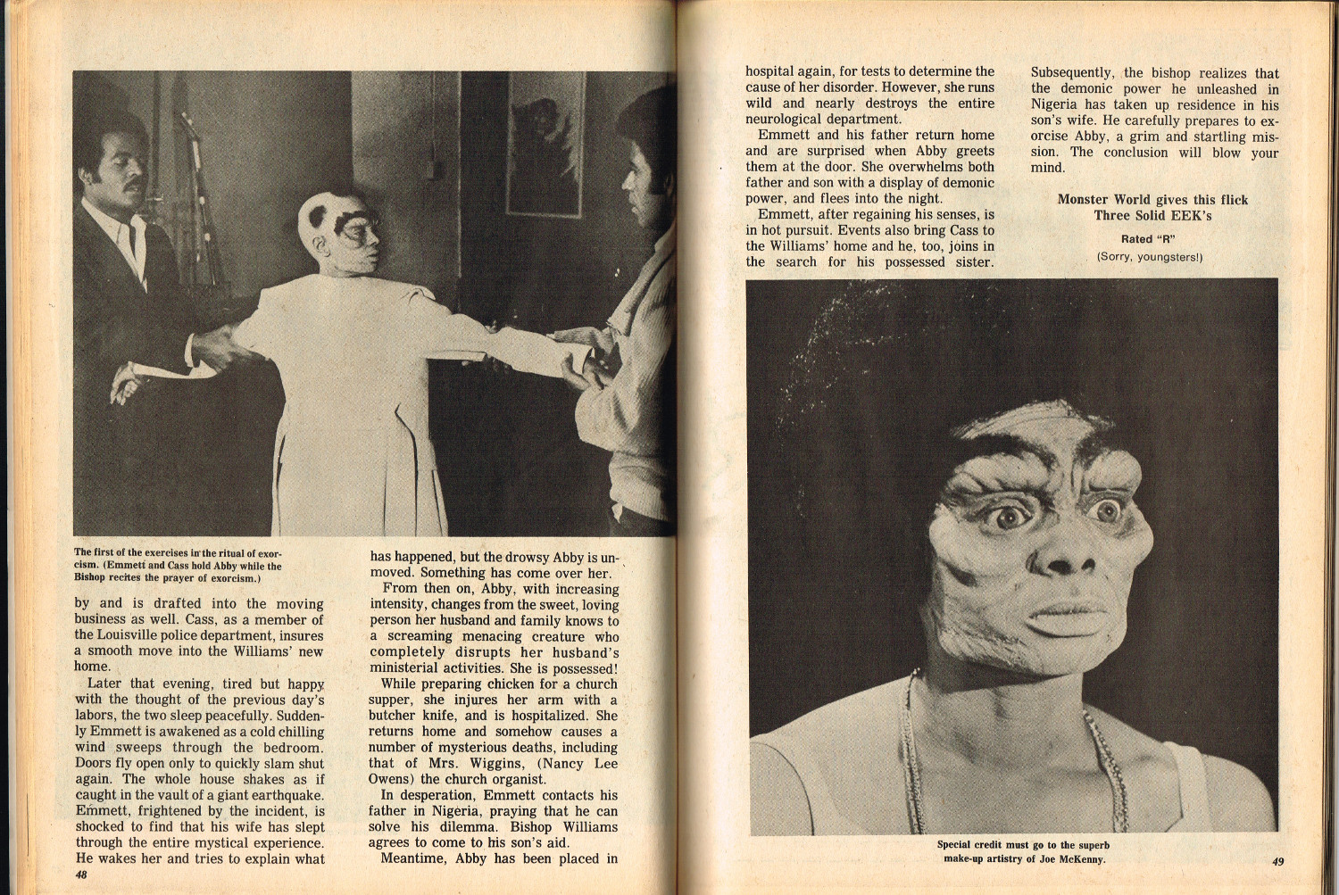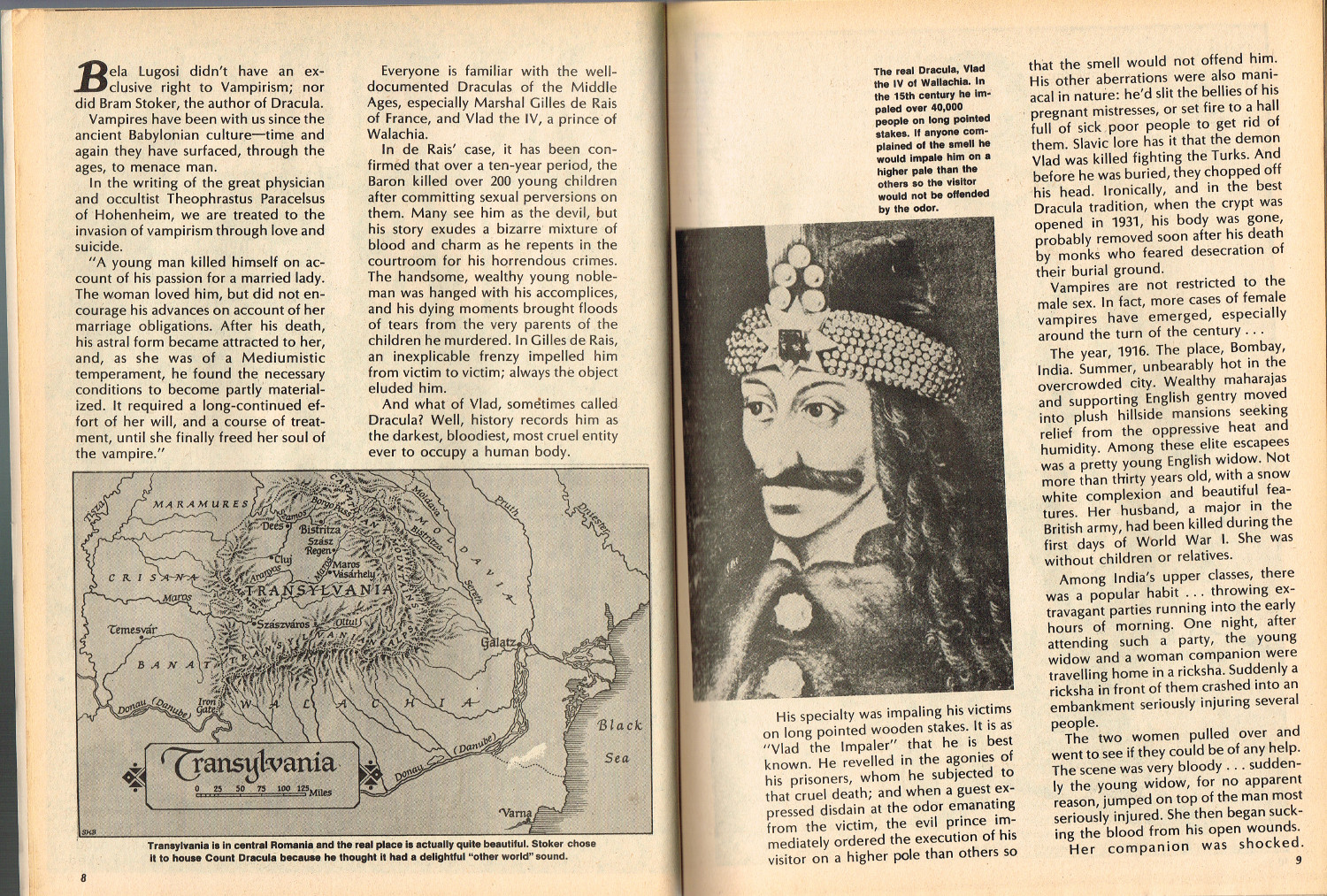 After reading Cranston Macmillan's Quasimodo's Monster Magazine chapter in the recently released 70s Monster Memories (yup, shameless plug here!), I dug out my first issue of Quasi's, which was called Monster World. At least for the first three issues, then it changed title to Quasimodo's Monster Magazine. It's a lot of pages if little else, but there's a charm to its simplicity (okay, poor layout and cheap printing). The covers were always to die for. In this first half of the magazine you'll read about Kolchak, The Night Stalker, The Monster Comics World of Jose Delbo, and Frankenstein, Through the Years. But nevermind that. What's really killer here are the advertising pages: you can drown your plants with love by giving them Water Stiks, stay healthy with Arco books on fitness, buy $20.00 sport action watches, plug in the miracle TV antenna (I can tell you from personal experience it sucked), and grab a fine collectible Chinese Doll (but that's in the second half of the magazine, which I'll post shortly). While other horror and monster mags had copious ads for fan-favorite merchandise, this first issue went for the wrong target audience. How terrifying!.