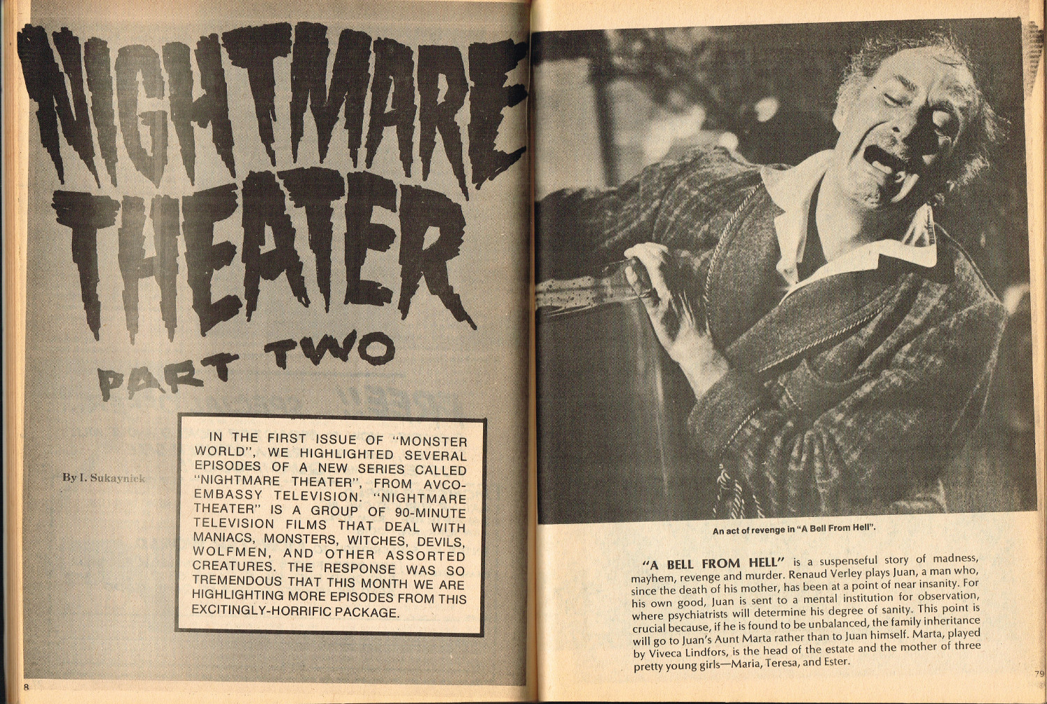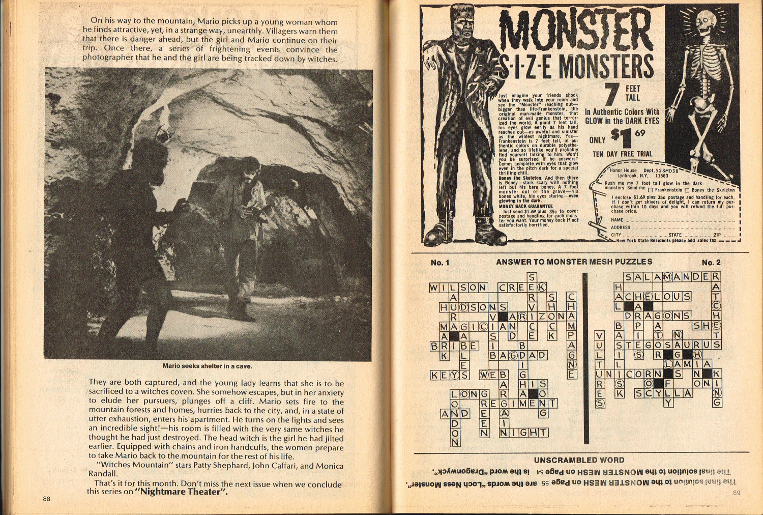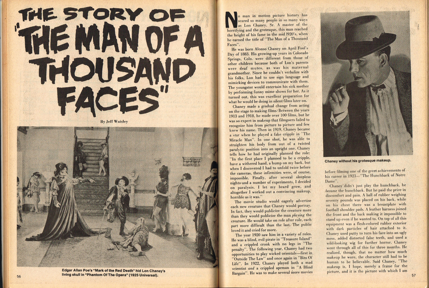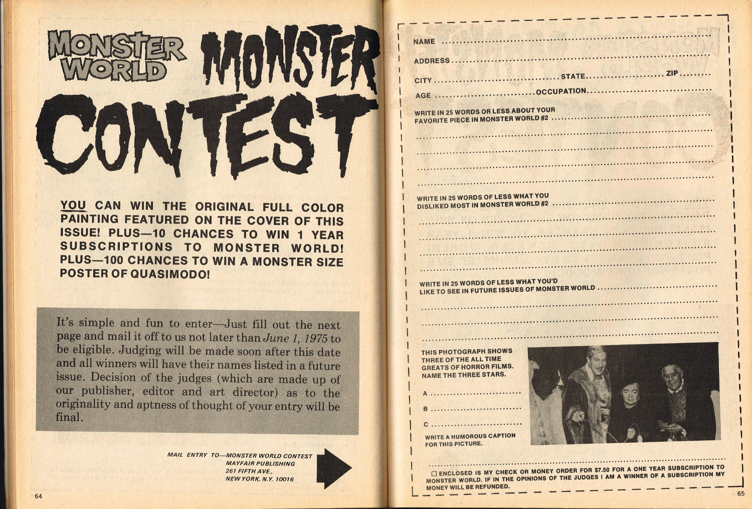 In this second part to Monster World, issue 2, the story of Lon Chaney Sr. is revealed by Jeff Waisley, The Hydra Horror comic by Norman Nodel menaces readers, and Nightmare Theater episodes are examined. Also, for all those monsterkids who remember the glories of mail order before Amazon made it chic, the ad pages will bring back memories. Especially those memories where you kick yourself, again and again, regretting that you didn’t hold onto all those cool model kits and monster toys that are now worth big bucks to collectors. Just sayin’.