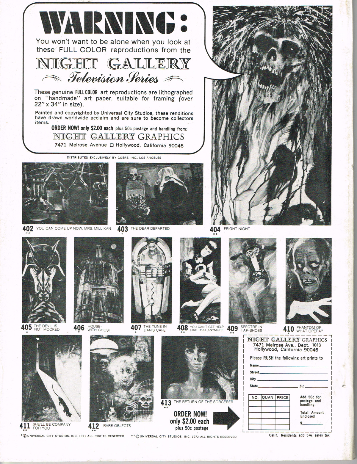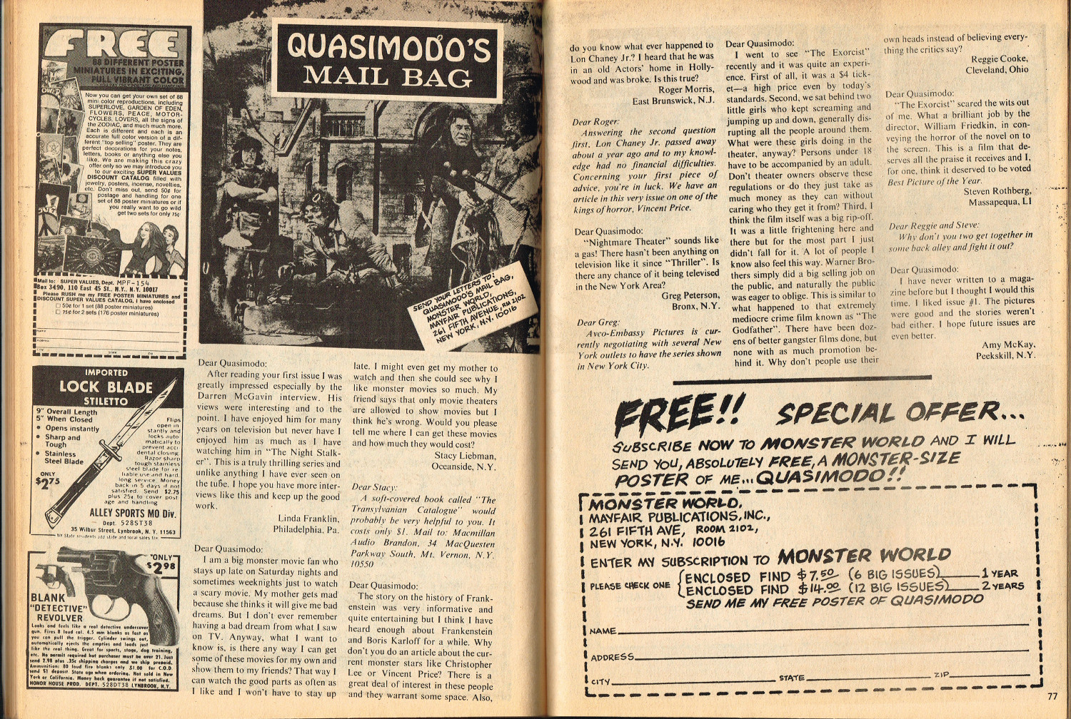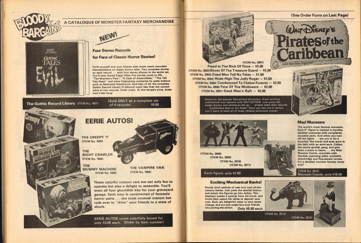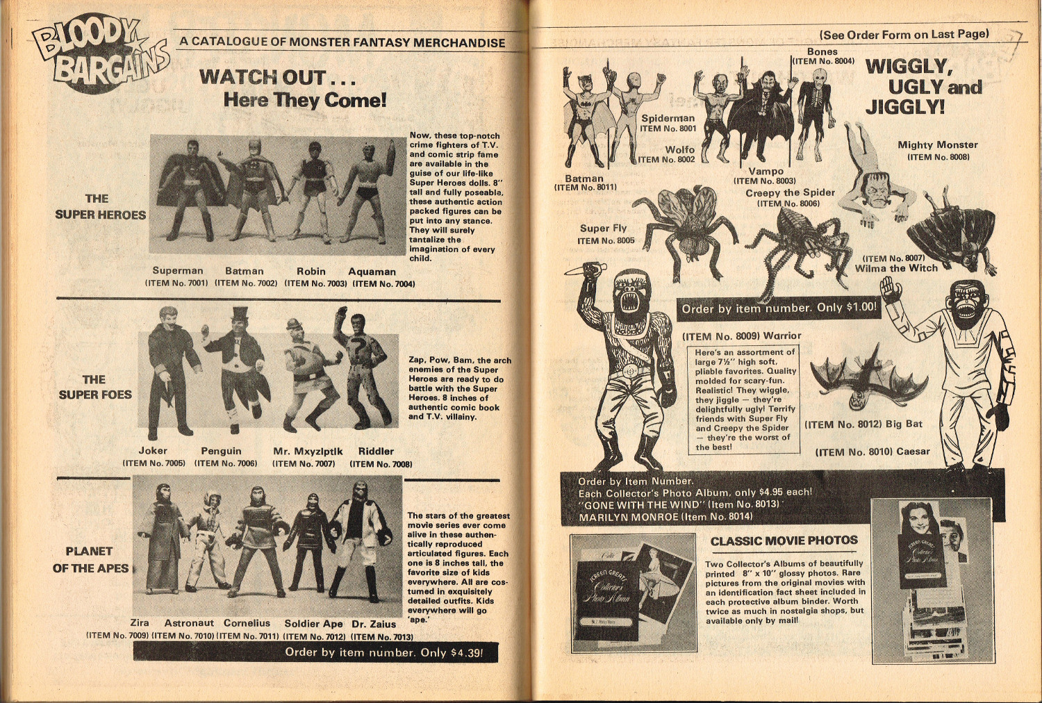In this second part to Monster World, issue 2, the story of Lon Chaney Sr. is revealed by Jeff Waisley, The Hydra Horror comic by Norman Nodel menaces readers, and Nightmare Theater episodes are examined. Also, for all those monsterkids who remember the glories of mail order before Amazon made it chic, the ad pages will bring back memories. Especially those memories where you kick yourself, again and again, regretting that you didn’t hold onto all those cool model kits and monster toys that are now worth big bucks to collectors. Just sayin’.