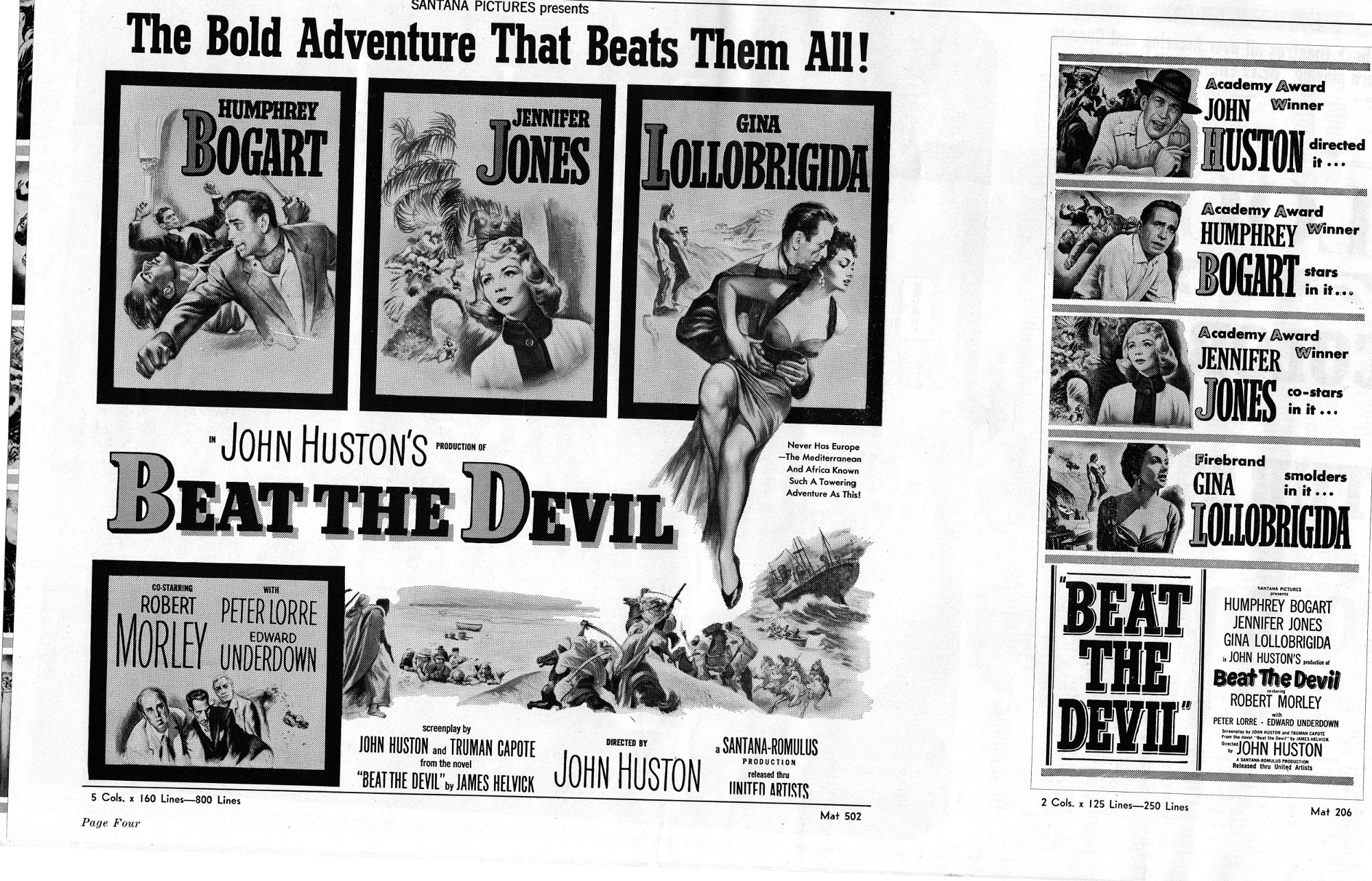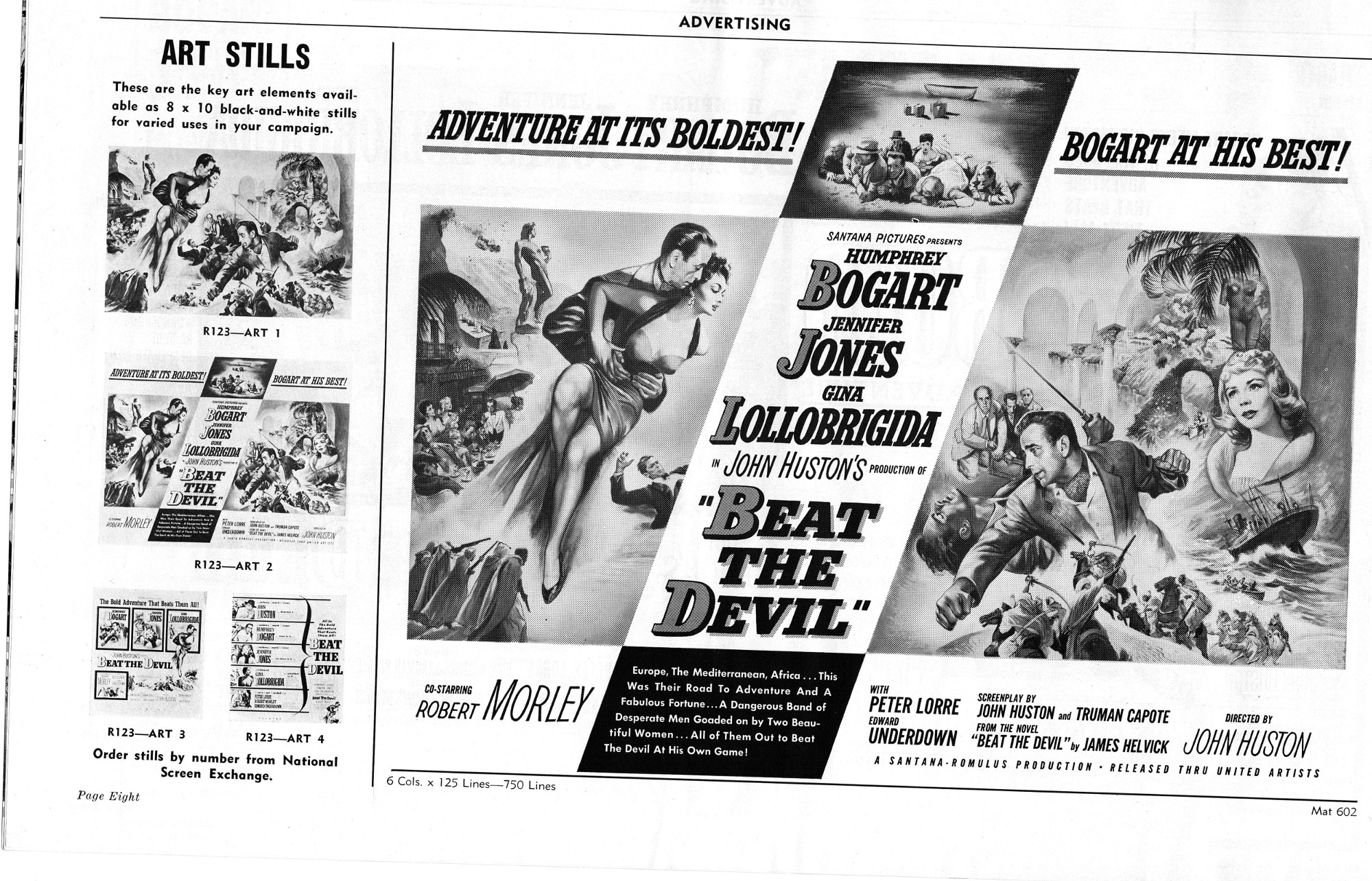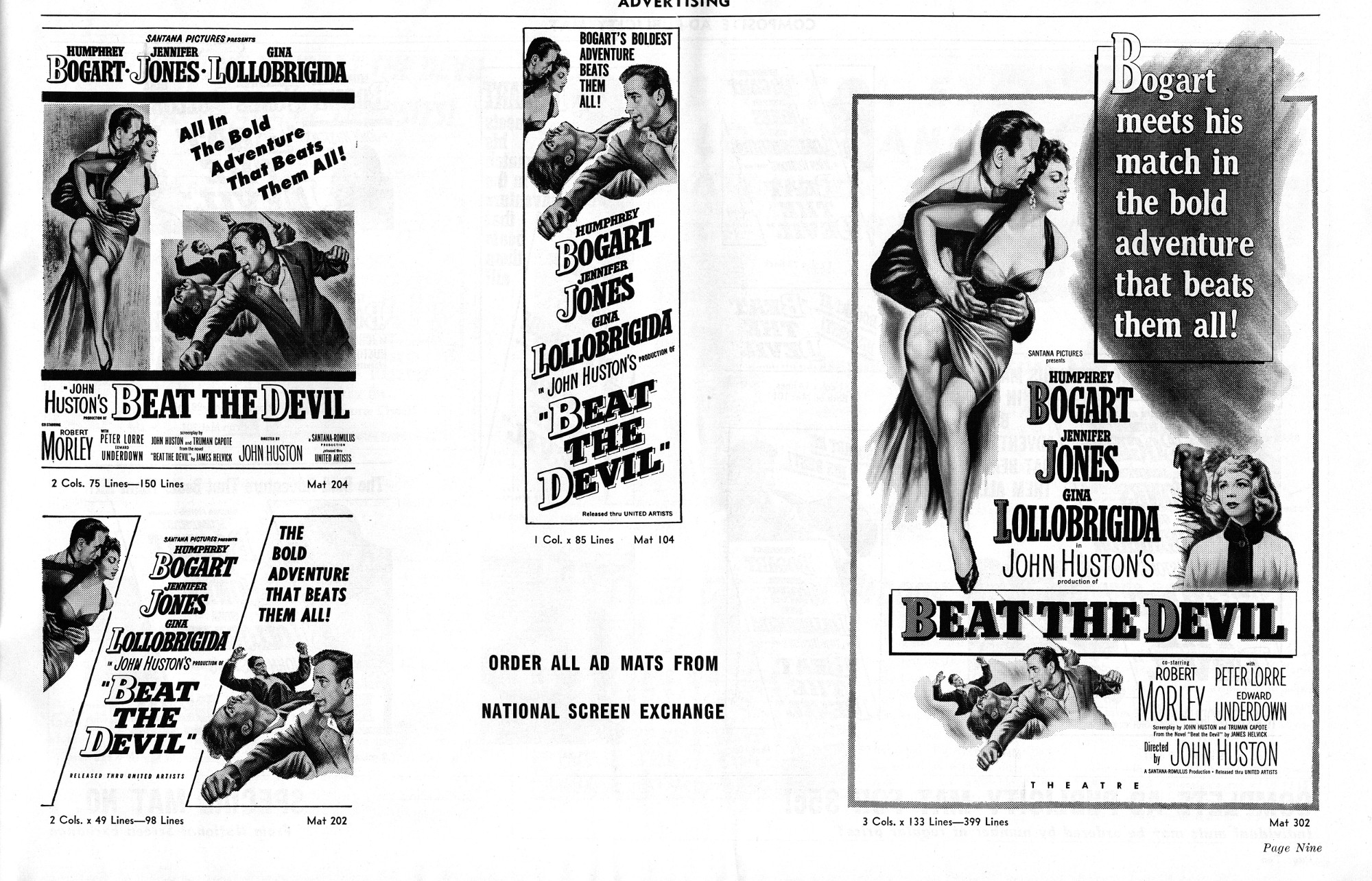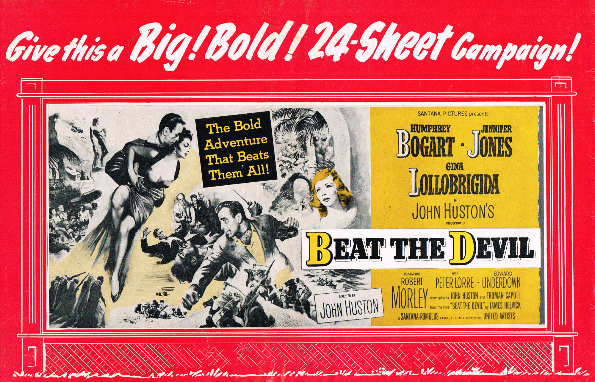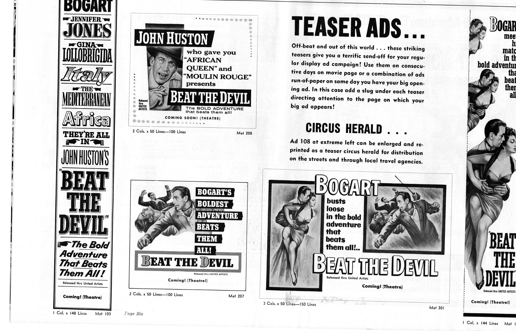 Movie Pressbook: Beat the Devil (1953) Leave a Comment / Pressbooks (Non-Horror) / By JM Cozzoli Twenty pages, 11 x 17 inches; impressive movie pressbook with a lot of publicity and exploitation, as well as poster art, to sell the movie to theaters and their audiences. Like this:Like Loading... Share this post Facebook Twitter Pinterest Linkedin