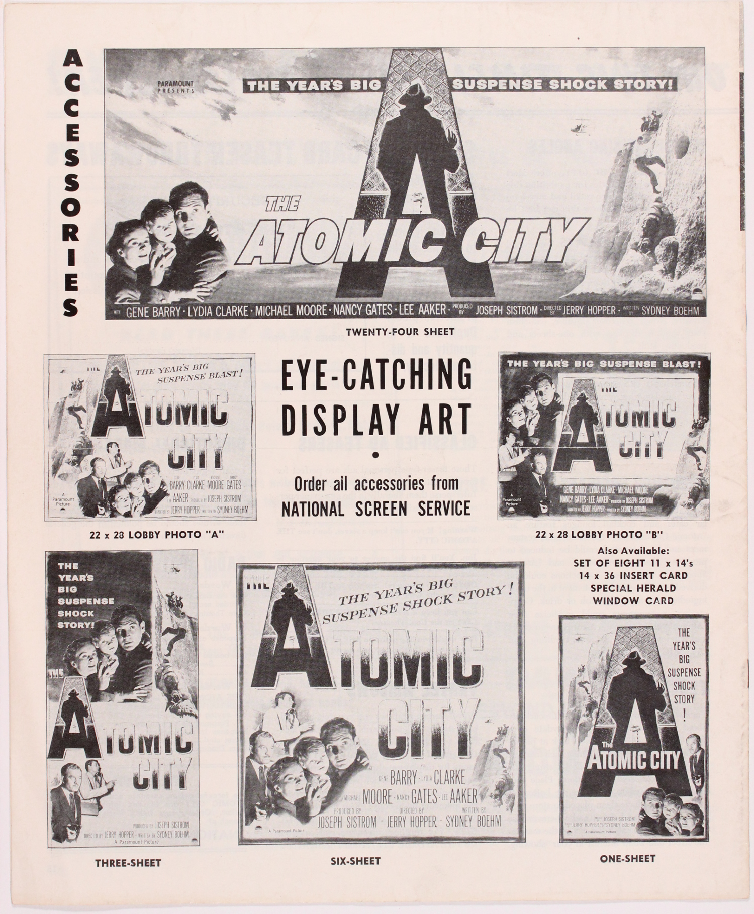 Movie Pressbook: The Atomic City (1952) Leave a Comment / Pressbooks (Non-Horror) / By JM Cozzoli Now that it looks like the Cold War is back, here's some dramatized paranoia from the 1950s for you. What's old is new again. Like this:Like Loading... Share this post Facebook Twitter Pinterest Linkedin