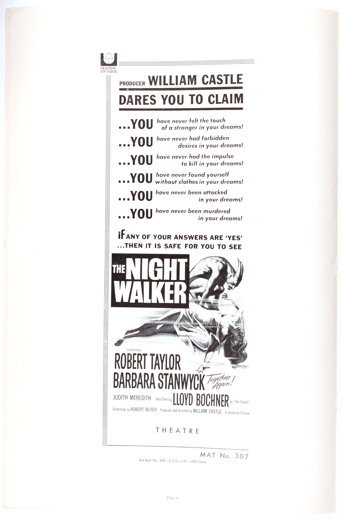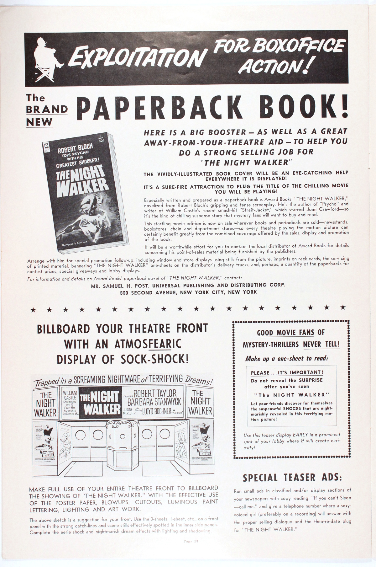 Movie Pressbook: The Night Walker (1964) Leave a Comment / Pressbooks (Horror, Sci Fi, Fantasy) / By JM Cozzoli More of William Castle's publicity engine in full throttle for The Night Walker. Like this:Like Loading... Share this post Facebook Twitter Pinterest Linkedin