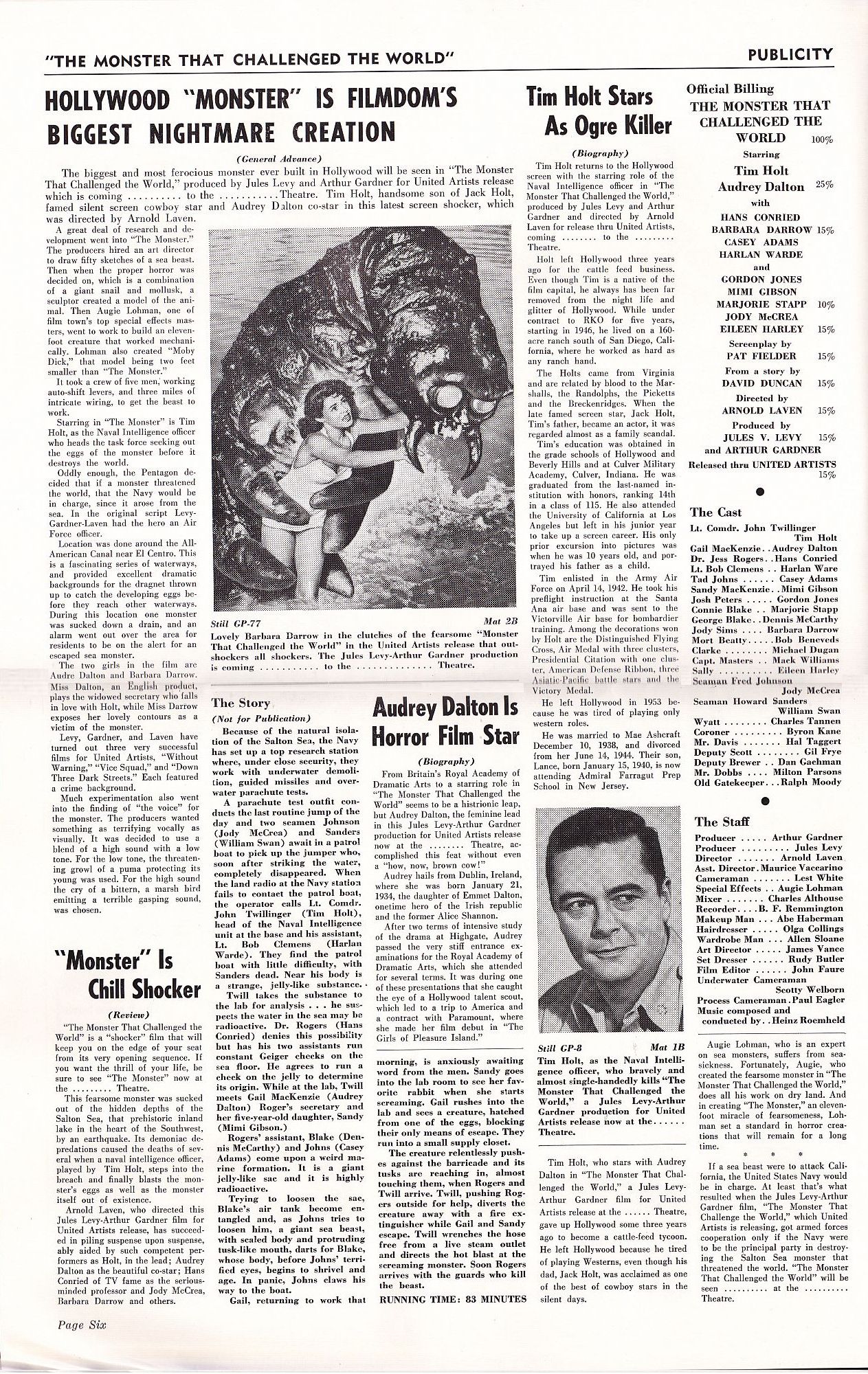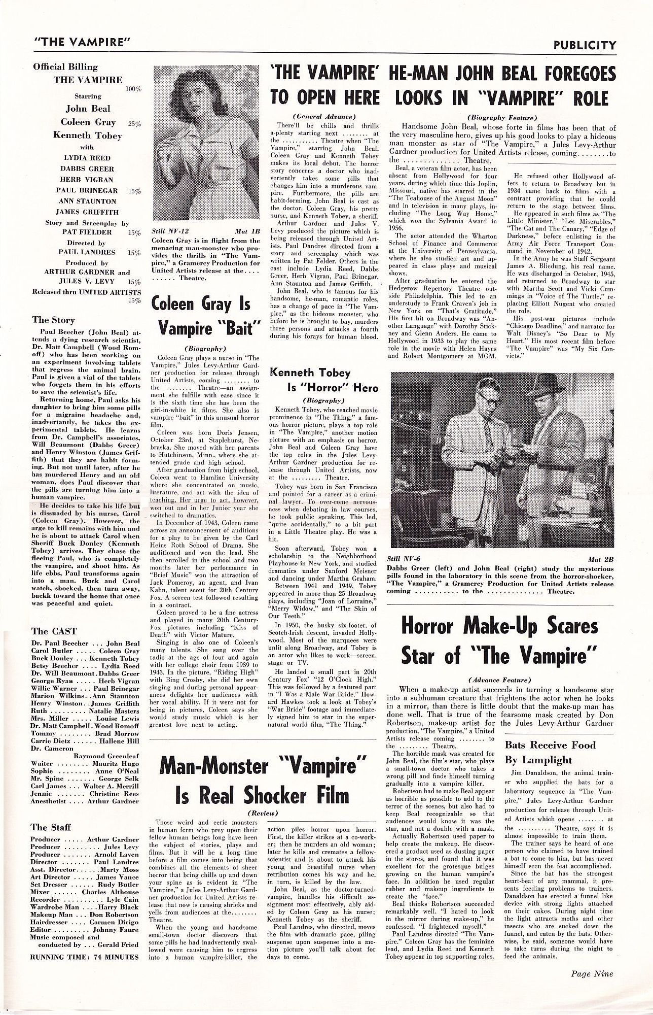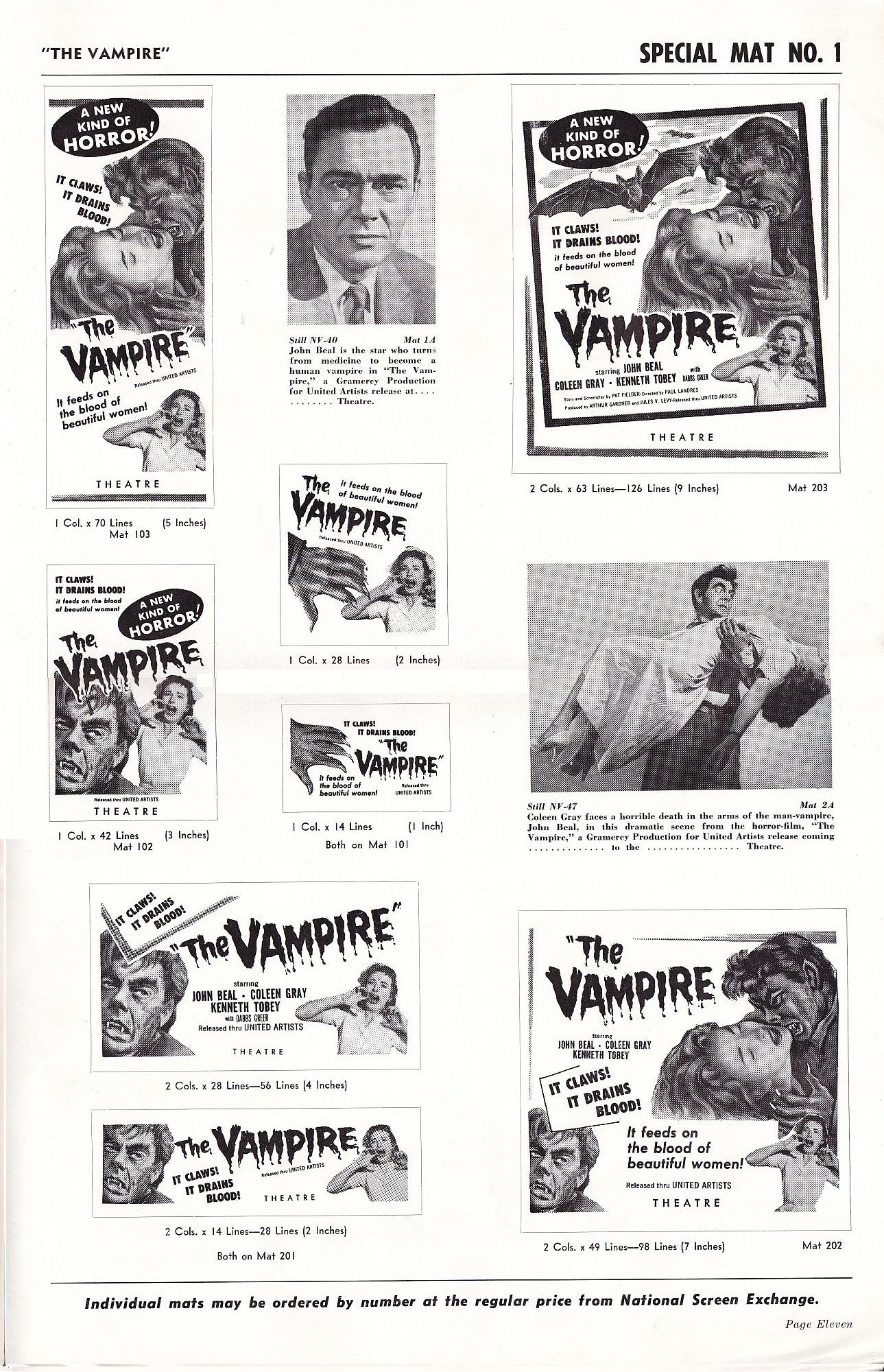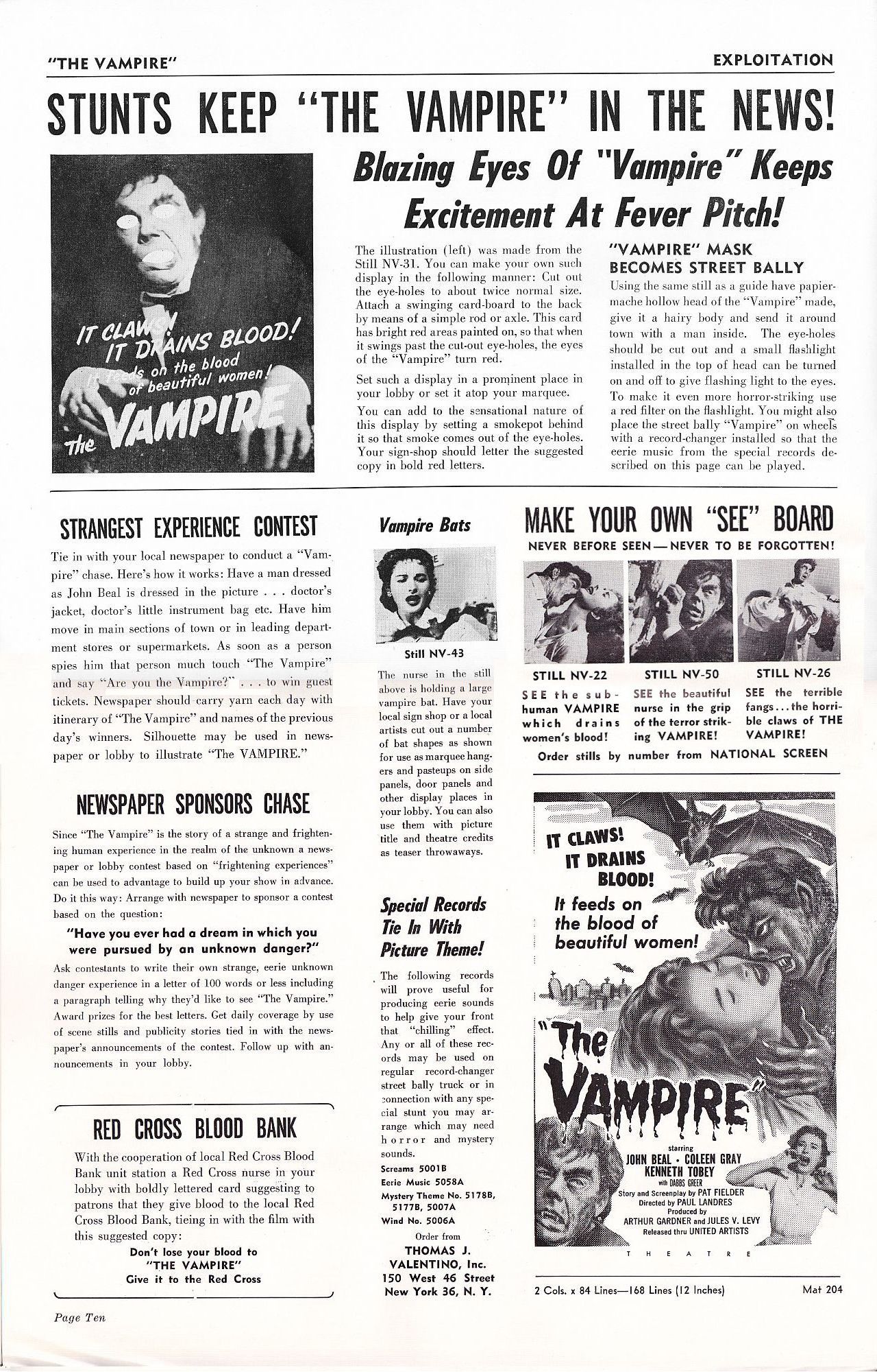 Tony Rivers strikes again, providing us with these movie pressbook scans for the thrill-bill double bill of The Monster that Challenged the World and The Vampire. (I particularly enjoy the exploitation ideas for both movies.)