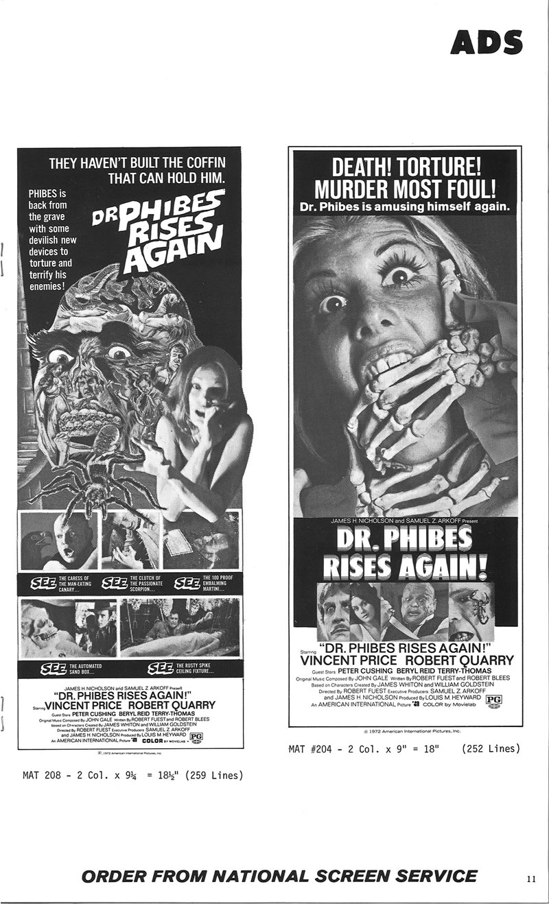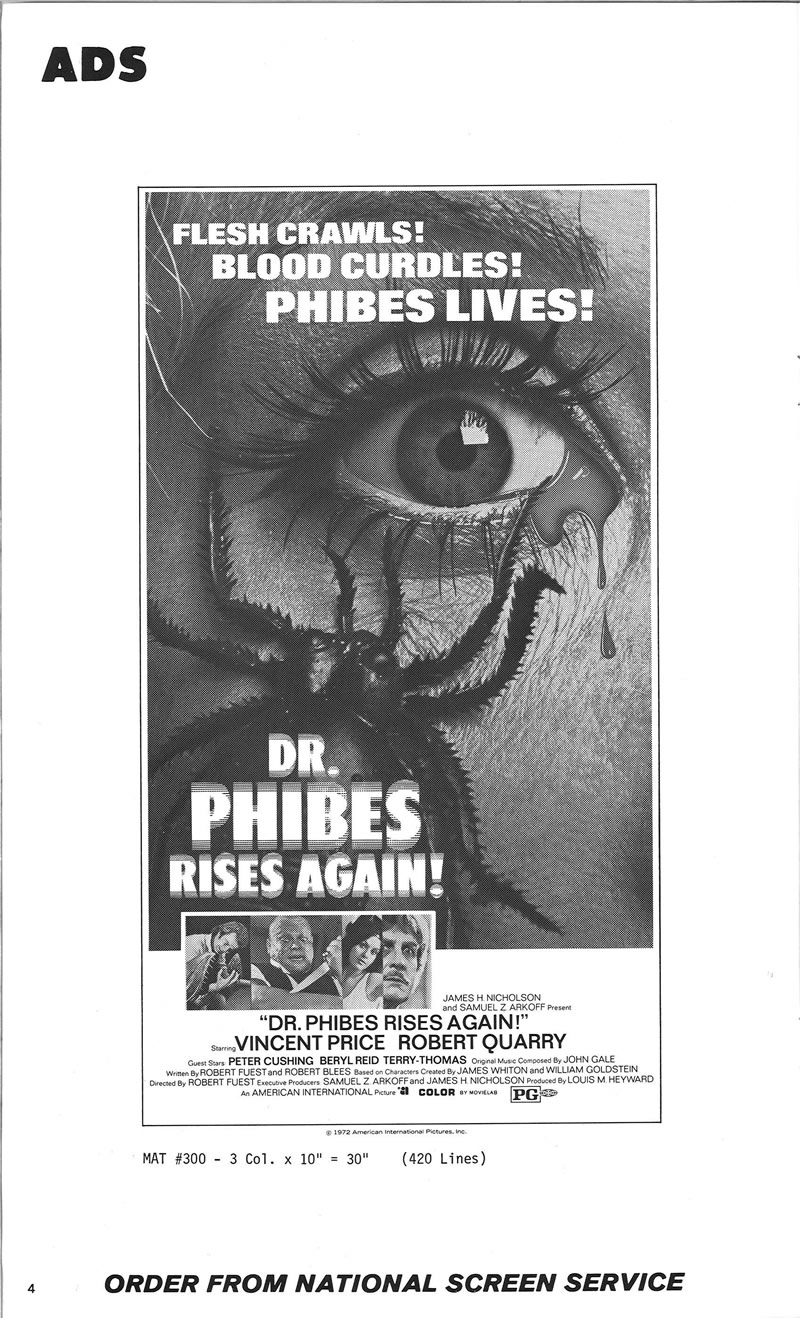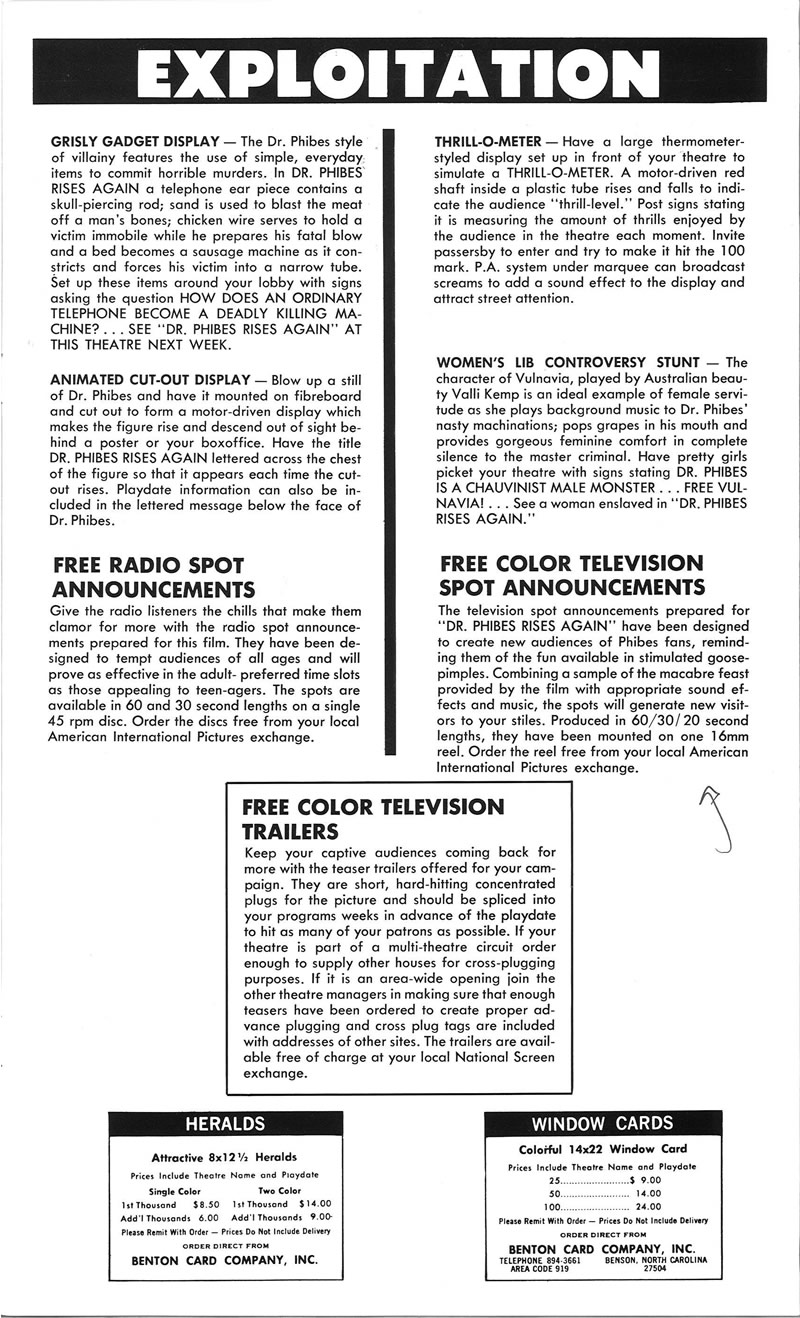 –from the Exploitation section of the Dr. Phibes Rises Again pressbook.
