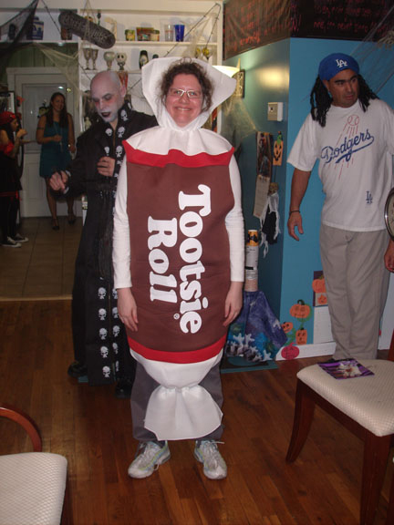 A few years ago, I splurged on a life-size Tootsie Roll Costume and won funniest costume! Plenty of food and drinks; a good time had by all!