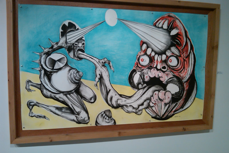 Night Gallery at One Way Leave a Comment / Art/Animation / By JM Cozzoli A pleasant bite at Crazy Burger, then a nighttime walk past One Way Gallery in Narragansett, Rhode Island reveals these two engrossing pieces of horror art. I couldn't make out the artist's name. Perhaps he's a child of Pickman… Like this:Like Loading... Share this post Facebook Twitter Pinterest Linkedin