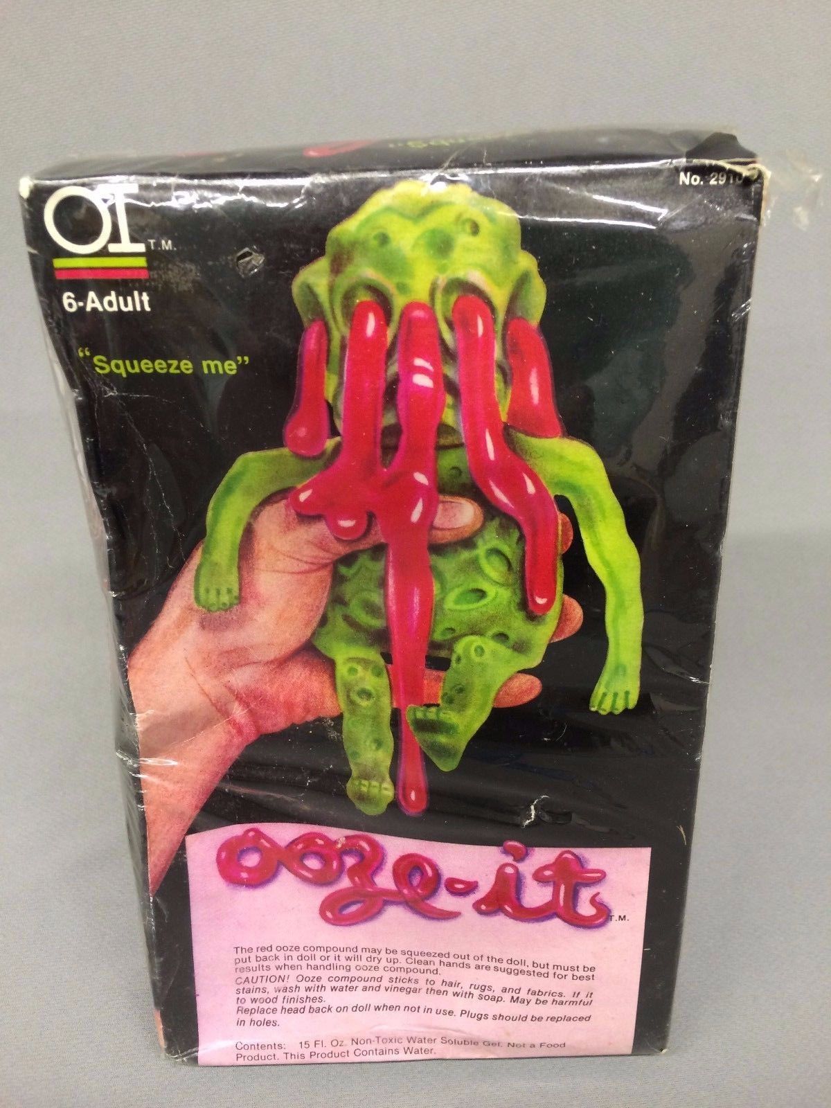 From seller yellowildflowers on eBay: Ooze-It; a weird (and messy) toy from 1981. Didn't know about this one until now. What happened to all those messy, drippy, oily, pliable, and crushable toys we grew up with? Buy it now price is $999.99. A lot of oozing right there.