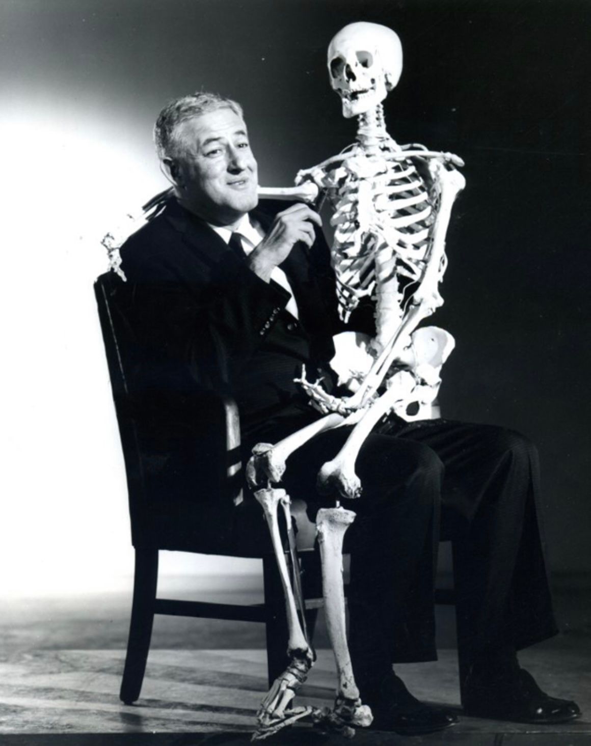 For House on Haunted Hill he used Emergo, which was an inflatable, glow in the dark skeleton moving across a wire hung overhead. It emerged during a key scene to allow the audience much frightful merriment derived from throwing a concession stand’s worth of candy and popcorn at it. My guess is it also increased sales for those items, so the theater owner was quite merry, too.