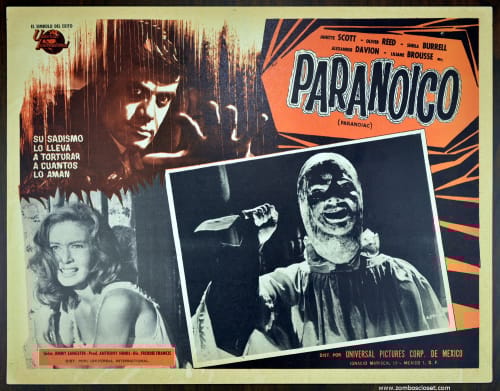 Paranoiac (1963) Mexican Lobby Card Leave a Comment / Azteca/Mexican Lobby Cards / By JM Cozzoli Hammer's Psycho-inspired entry, Paranoiac, is a good one for Oliver Reed. His smoldering good looks just make him all the more sinister. Note the Universal International stamp on this Mexican lobby card for the movie.Like this:Like Loading... Share this post Facebook Twitter Pinterest Linkedin