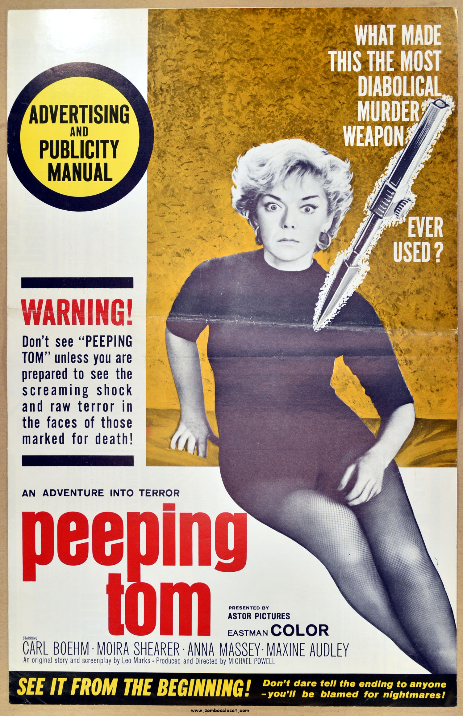 Like Freaks, Peeping Tom didn't get a good reception when first released and it pretty much killed its director's career; but time and reconsideration now rate it very highly. If you're a slasher film fan and haven't seen this movie, well then, you're not really a slasher film fan.
