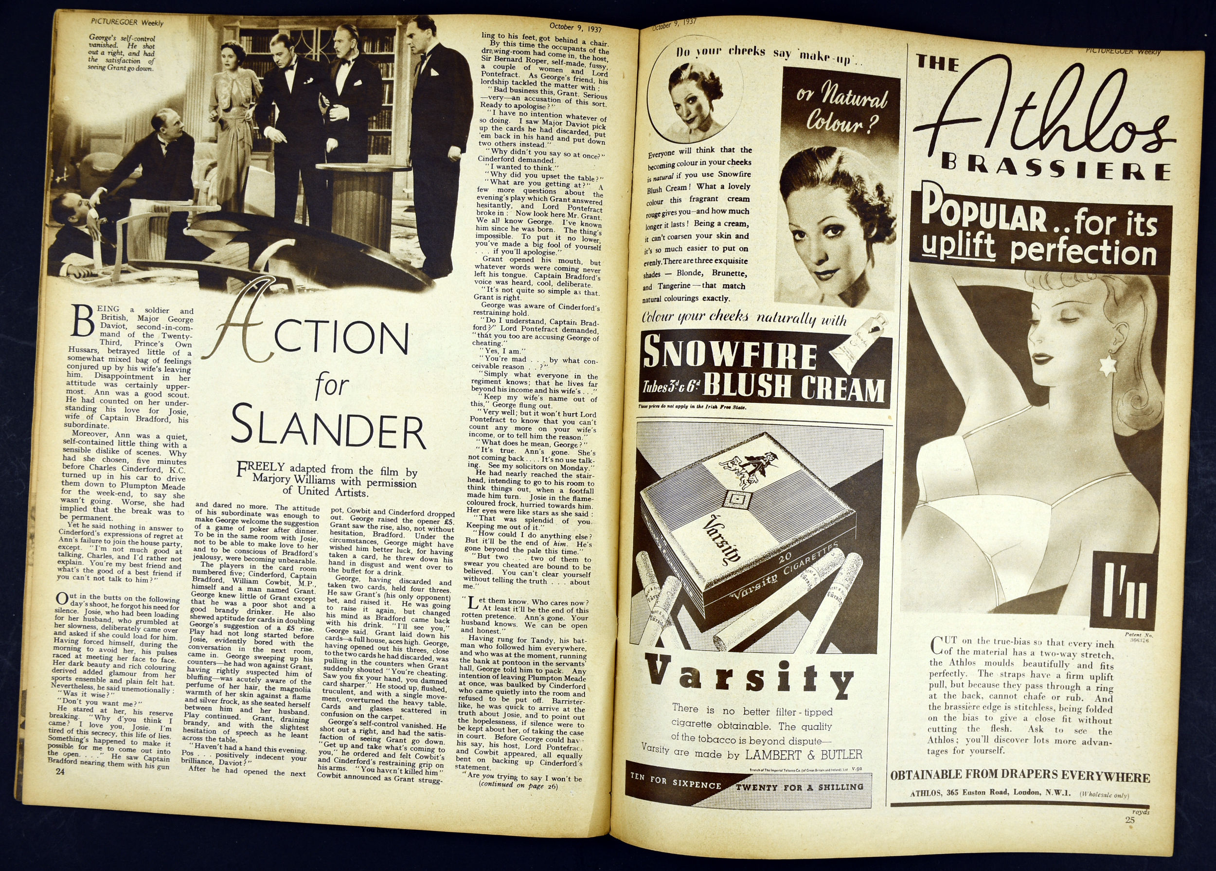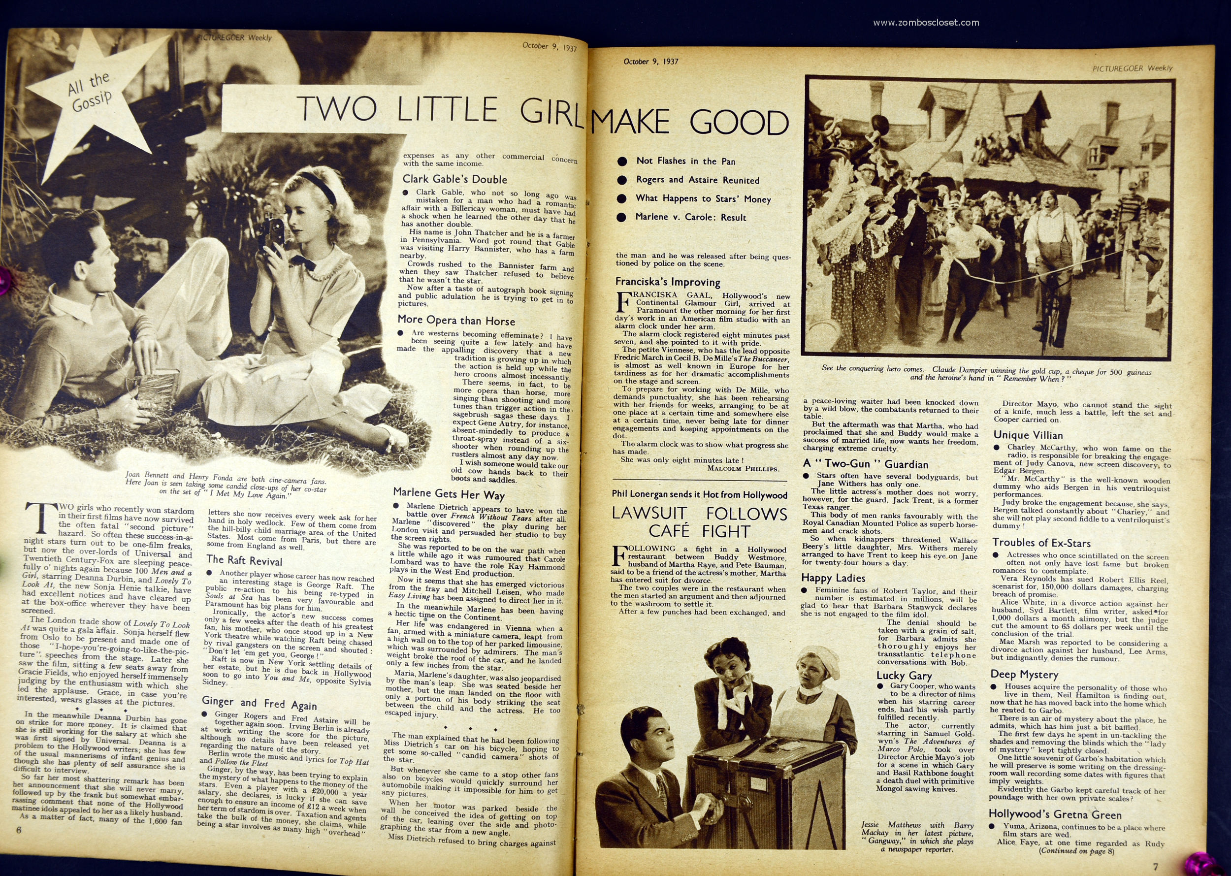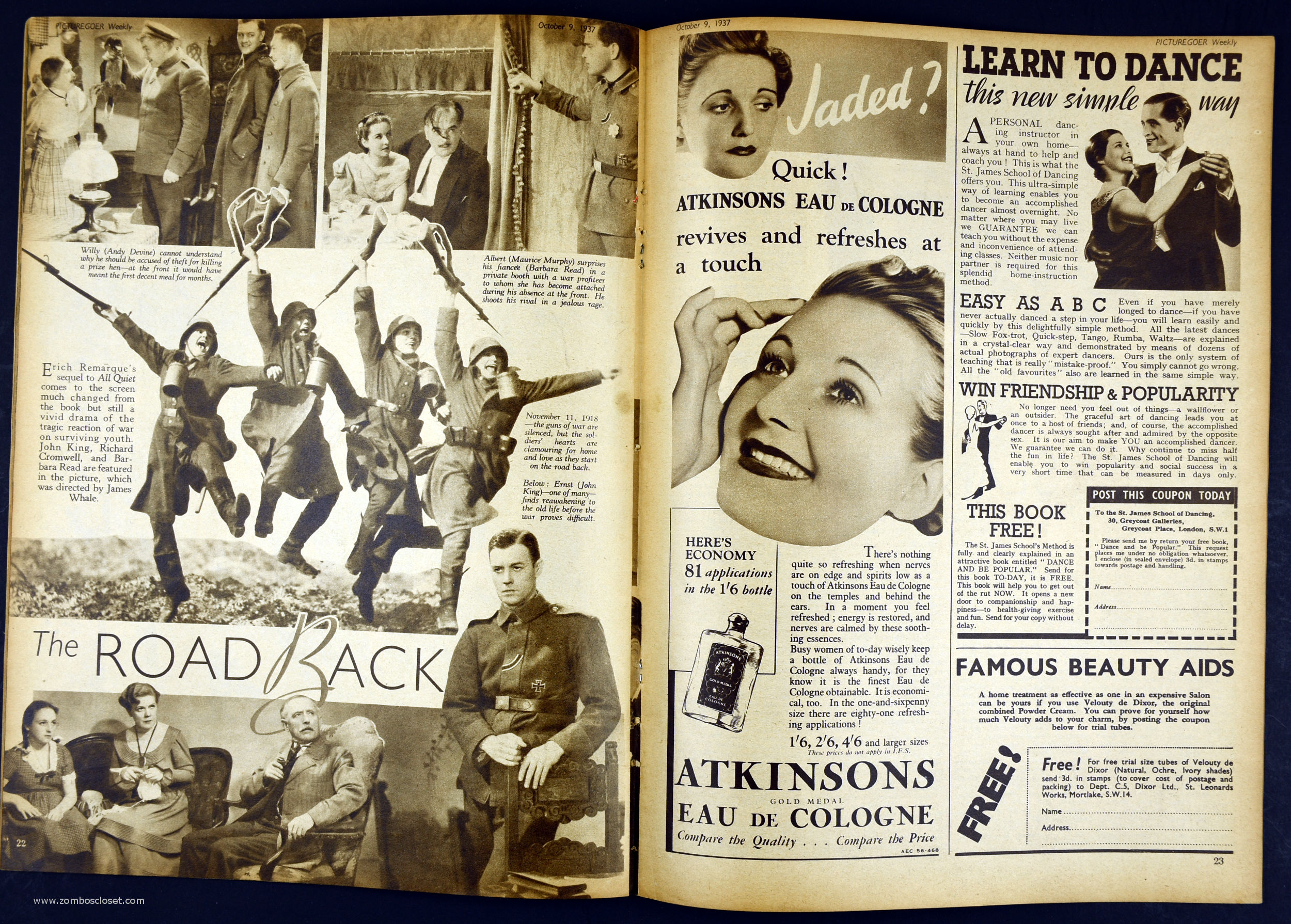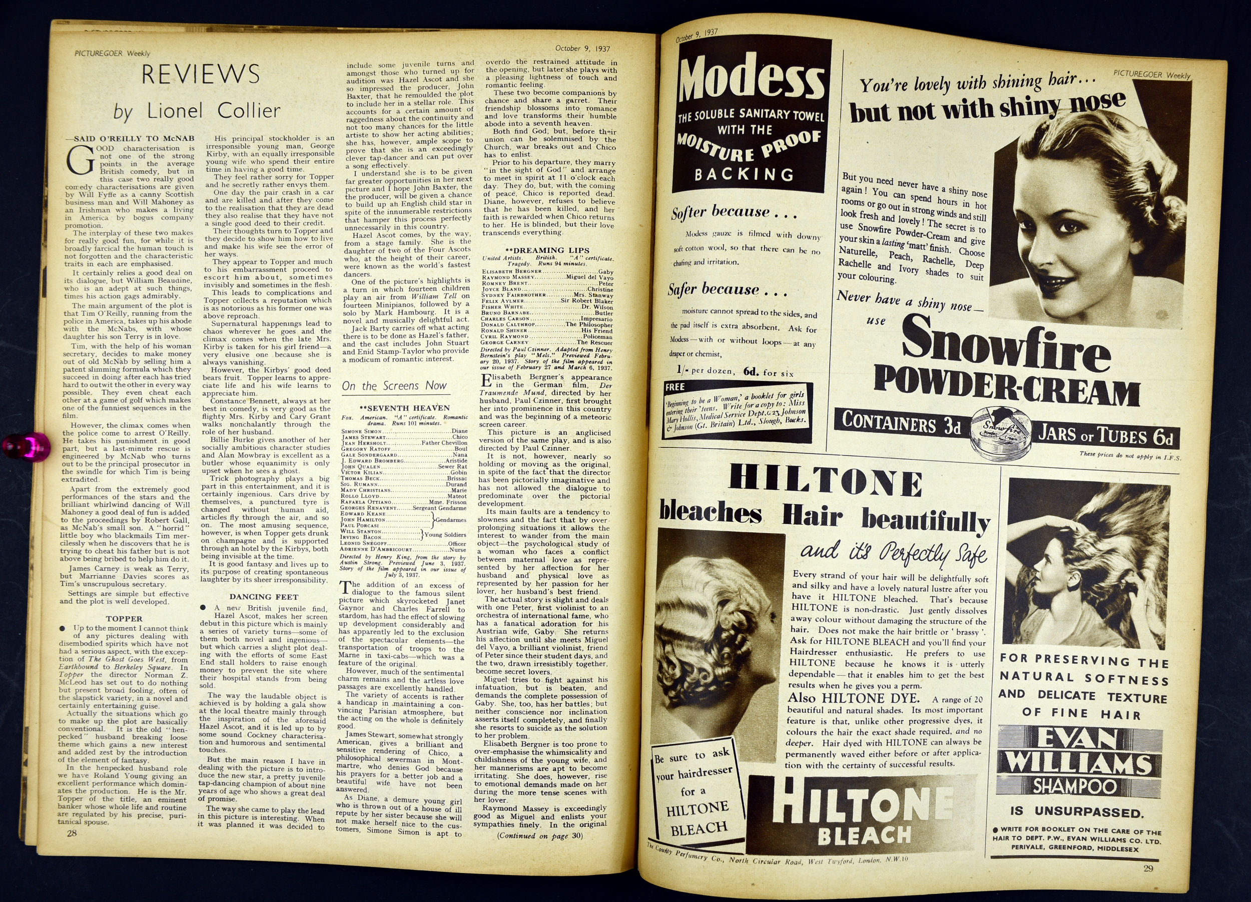 Here's another issue of Picturegoer magazine, courtesy of Professor Kinema. In this issue, No. 333 from 1937, the standouts are: nifty period advertisements; an open letter to actor William Powell, from the editor, congratulating him on his lucrative film contract while condemning the increase in movie theater ticket prices; Max Breen lauds over Maureen O'Sullivan; women dare challenge the pants-wearing in Men Wear the Pants in Pictureland; and Leave It to Anne explains how to keep that slim Hollywood figure the starlets have.