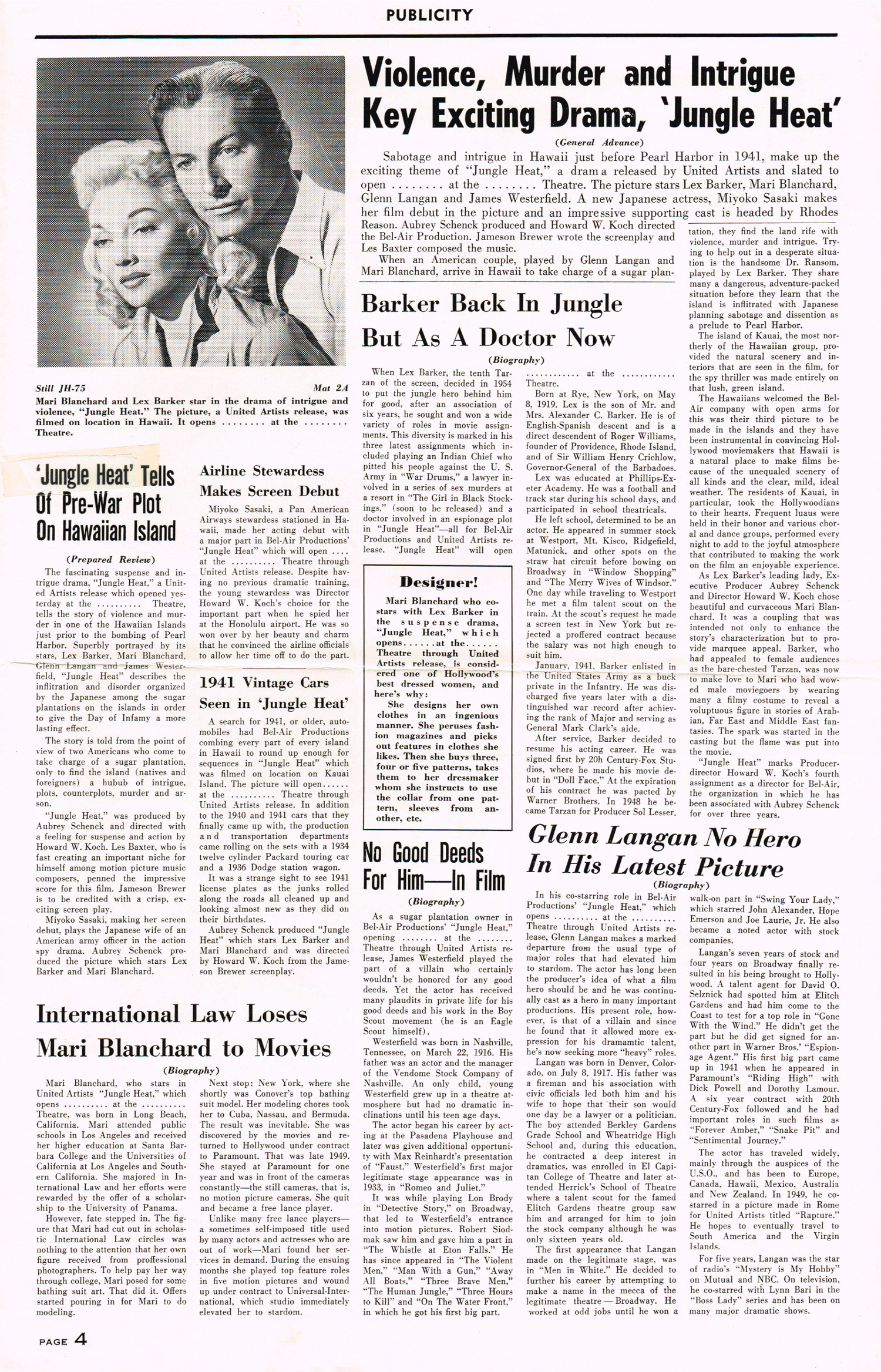 The late 1950s to early 1960s had a certain style of scripting and visual direction for female leads, which often promoted through tight, and skimpy, clothing with slip on shoes. Guys held the guns, of course, and seemed to always roll up their sleeves and slick back their hair. Lex Barker made a wonderful Tarzan, by the way.
