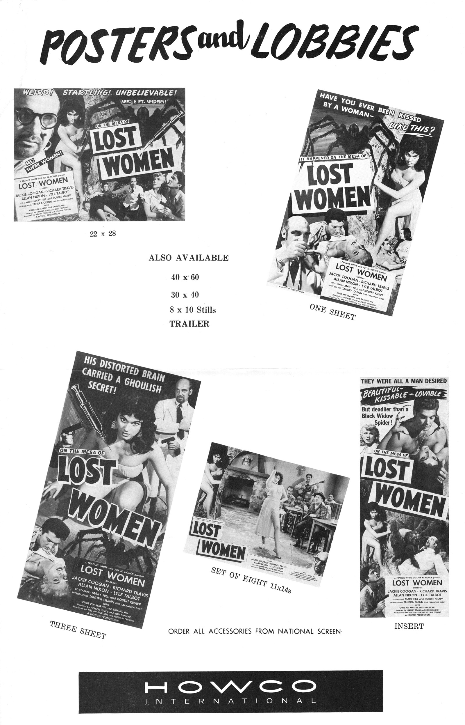 This Howco movie pressbook for Mesa of Lost Women doesn't do this opus of inanity justice, so read my movie review to get a better sense of the senselessness this movie brings to 1950s bottom-basement wonders.